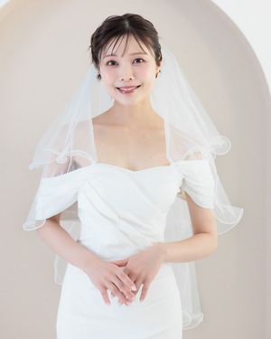 柔らかいチュールの裾にメロウ加工を施し、軽やかながら躍動感あるウェディングベール。