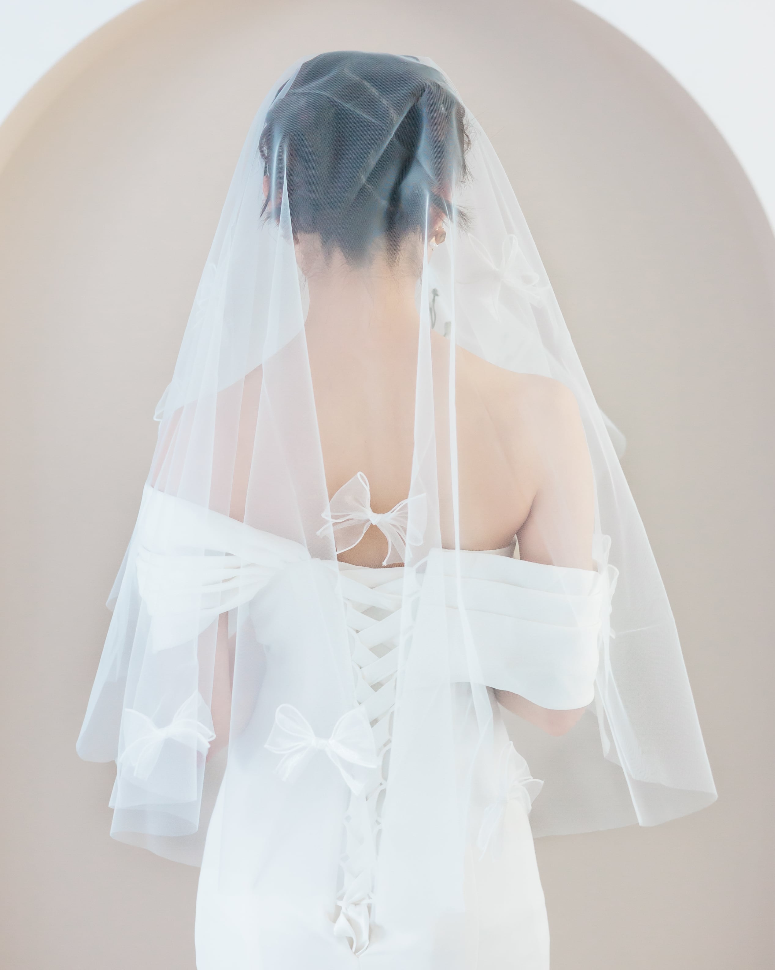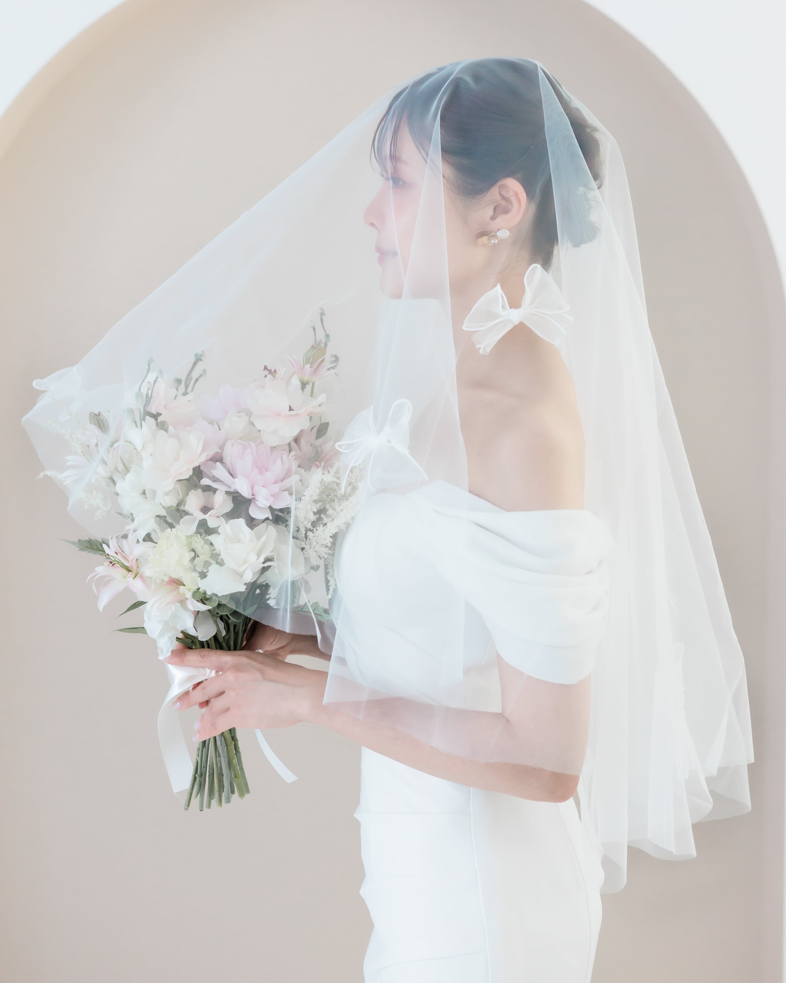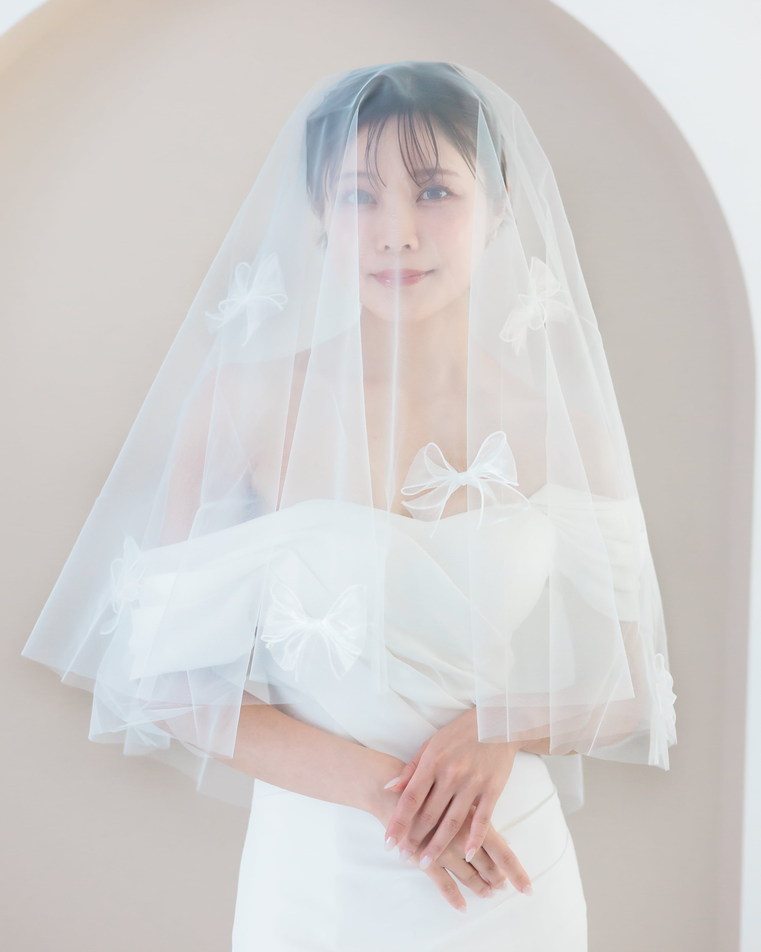 立体感あるリボンが主役の愛らしい印象のウェディングベール。