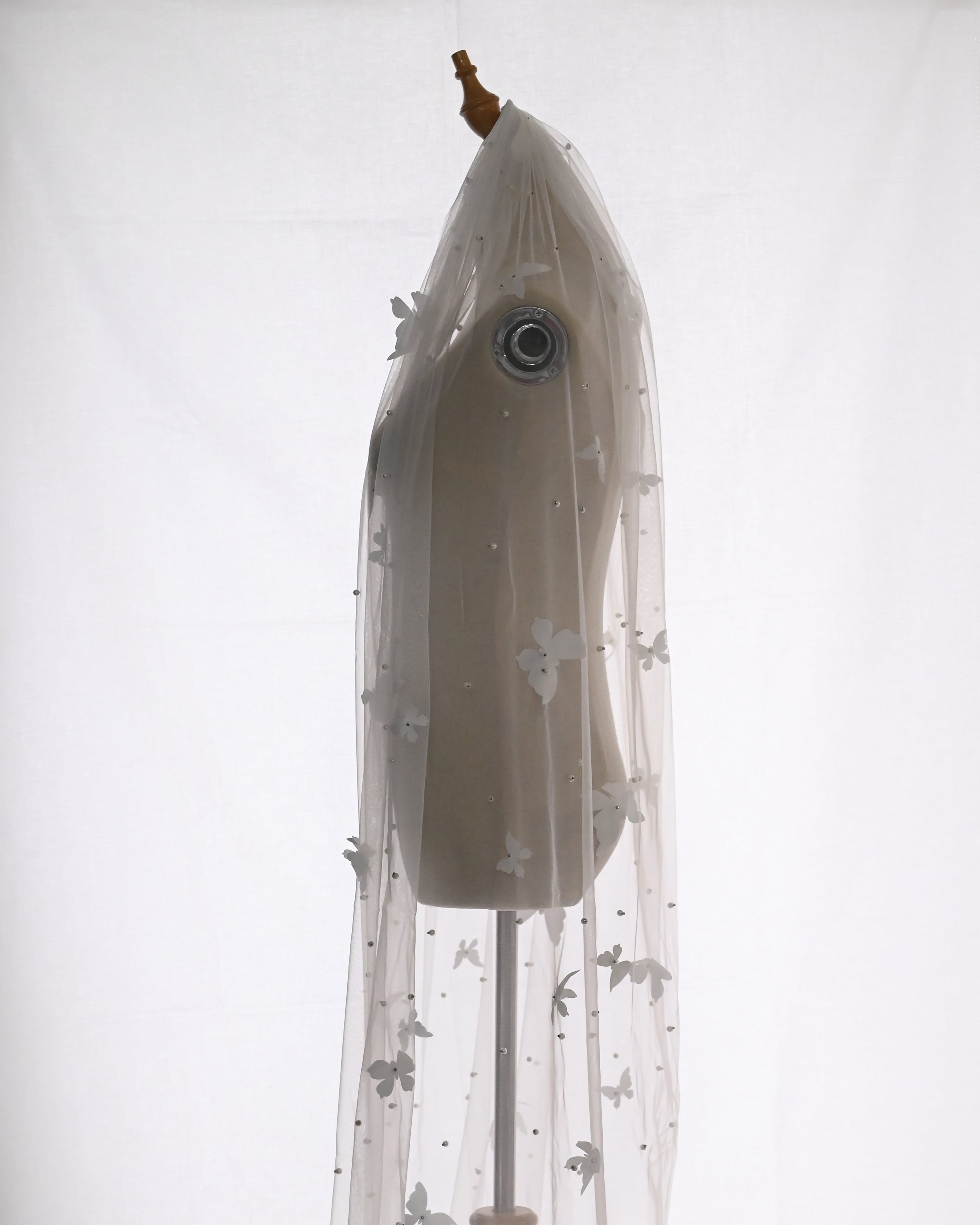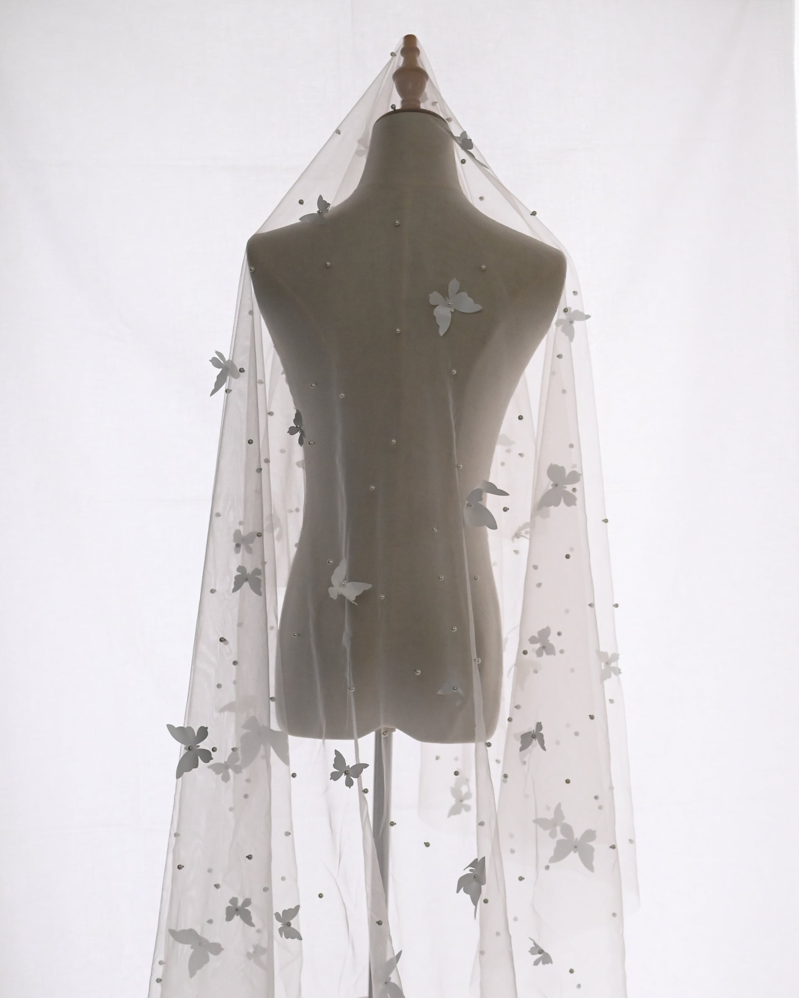 蝶々とパールを施したデザインはまるで童話に出てくる妖精のような可憐で華やかさあふれるウェディングベール。