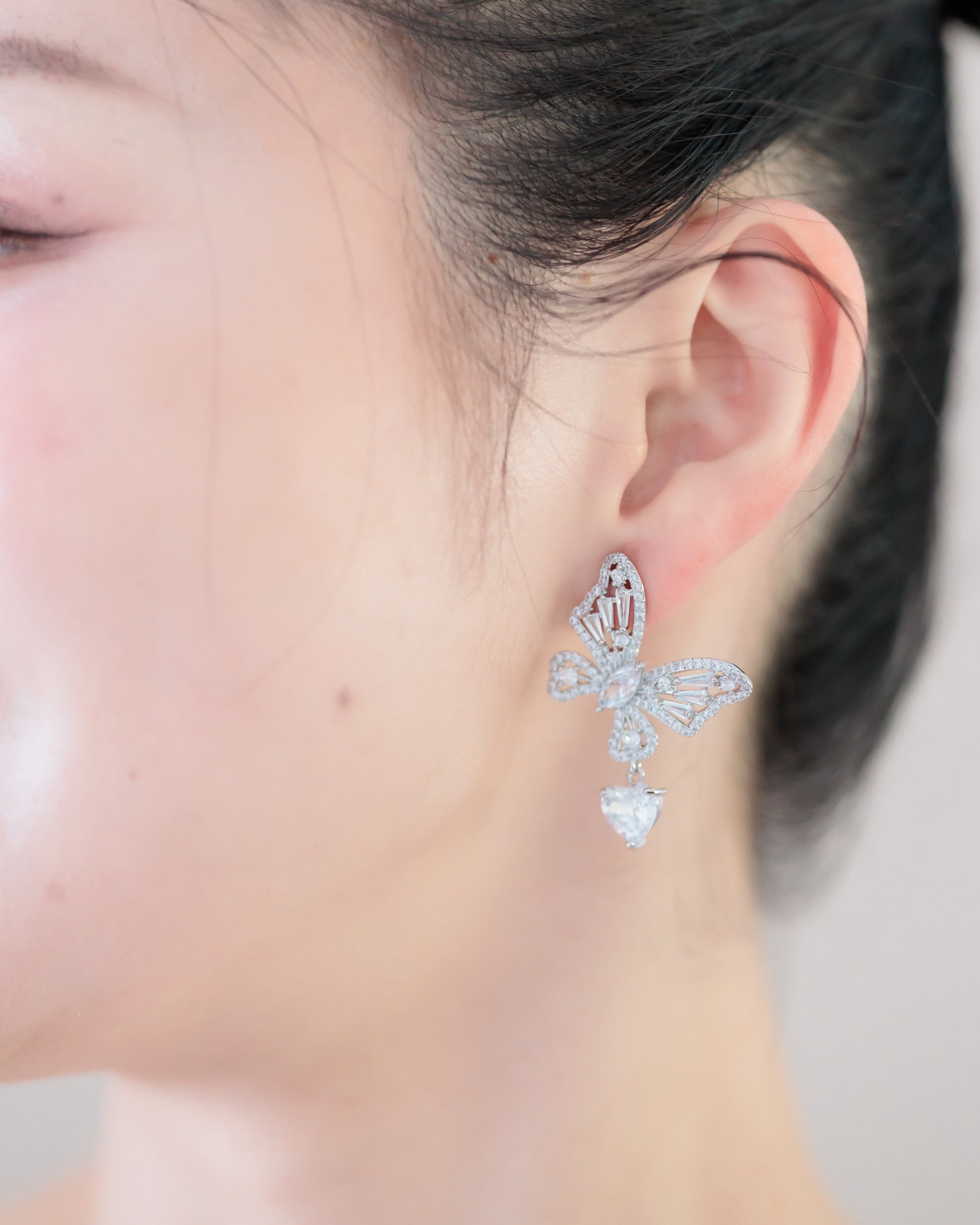 大人気の蝶々モチーフにキラキラと揺れ動く小さなハートのペンダントがアクセントとなり、さりげないキュートさをプラス!