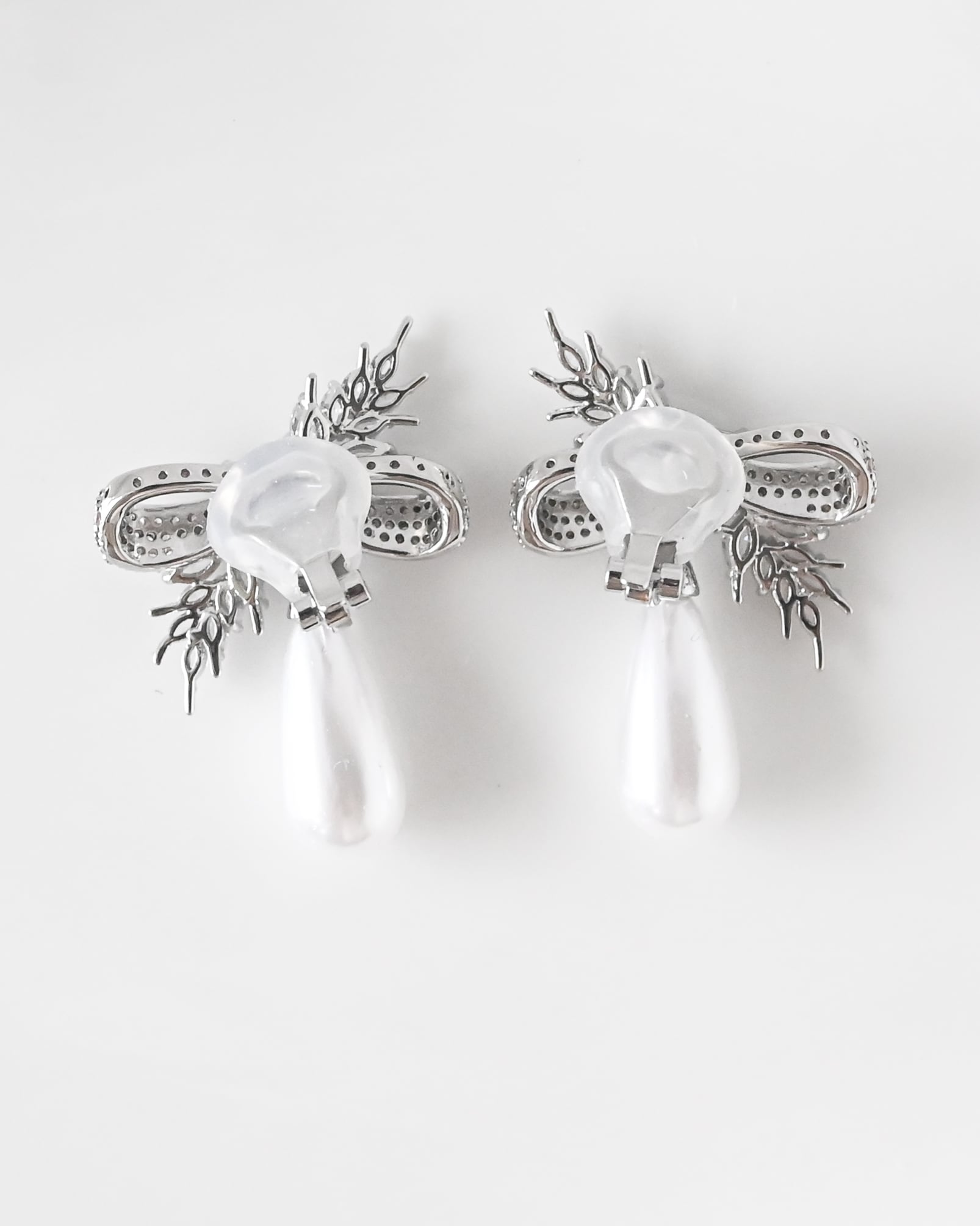 ベースのリボンにボタニカルな雰囲気のリーフモチーフを合わせ、愛らしさにナチュラル感をプラスしたブライダルピアス/イヤリング。