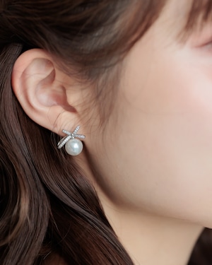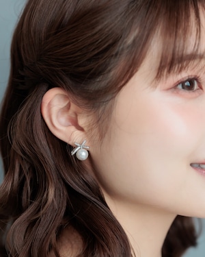 パールリボンイヤリング/ピアス【AE2505-10】