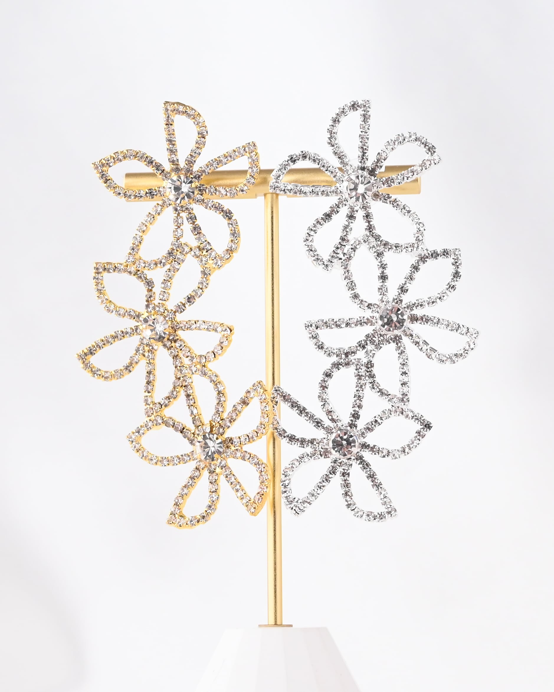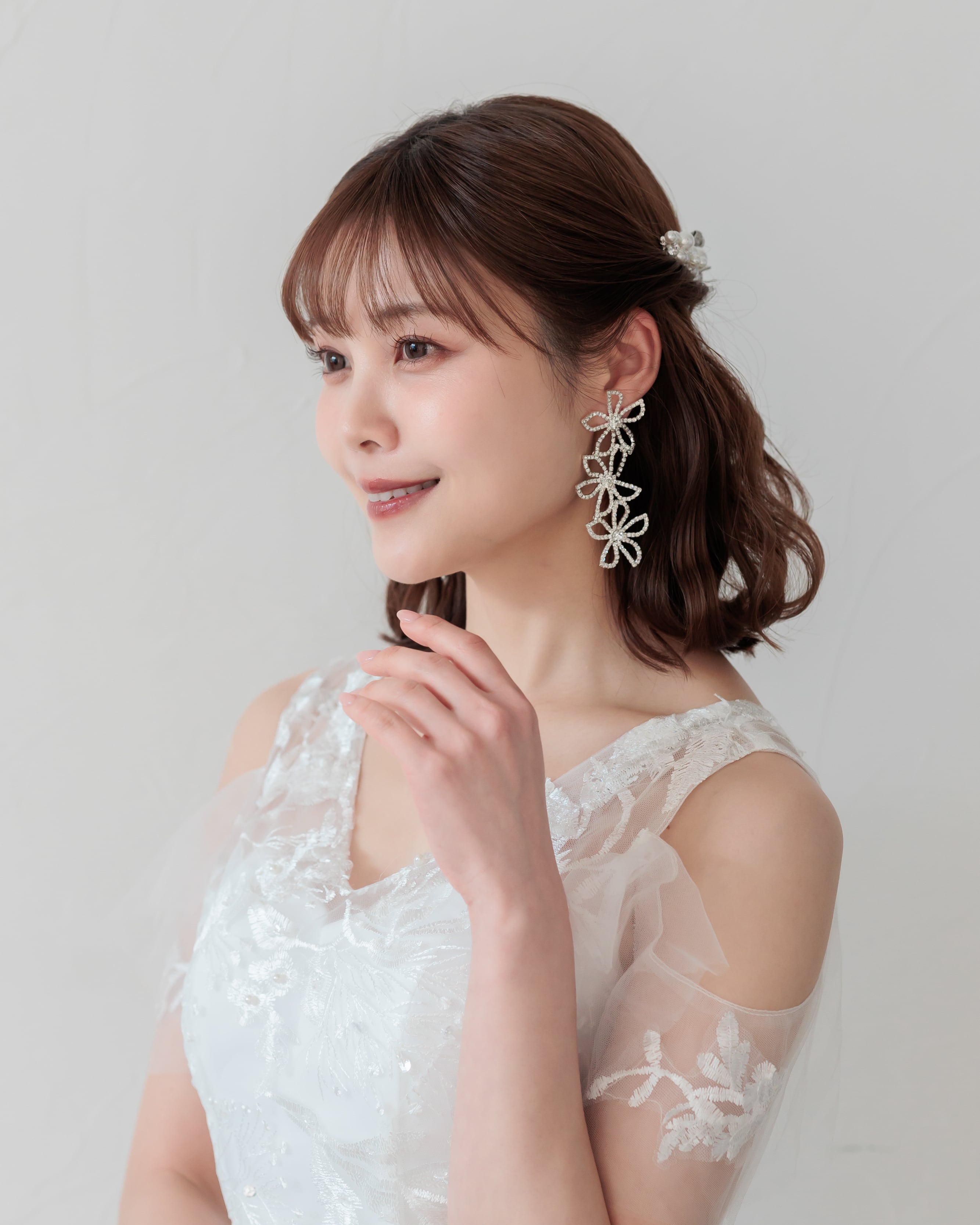 華奢なラインで描かれた愛らしいお花が3つ連なったブライダルピアス。