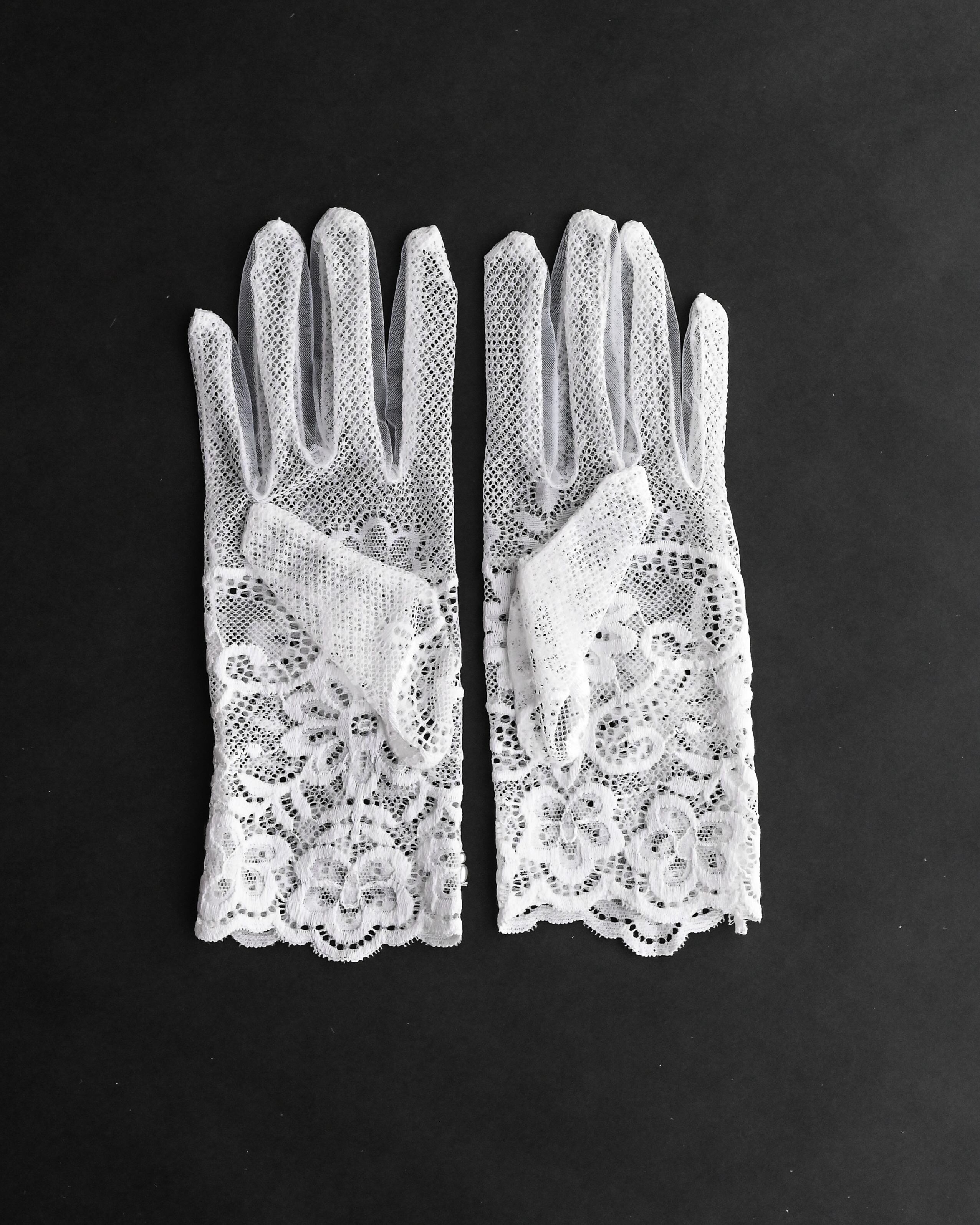 繊細なレースにパールをあしらった、気品あふれるショート丈のブライダルグローブ。