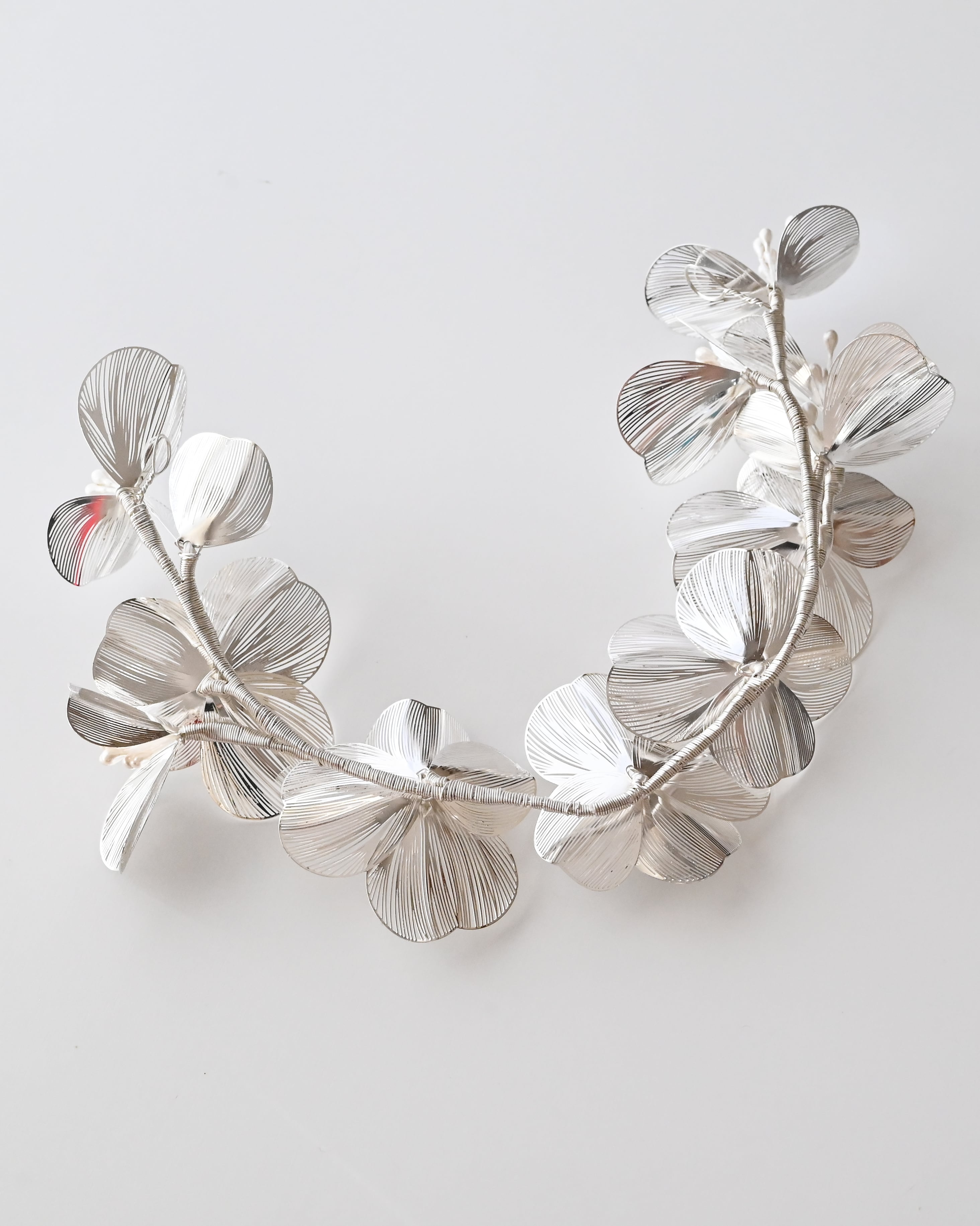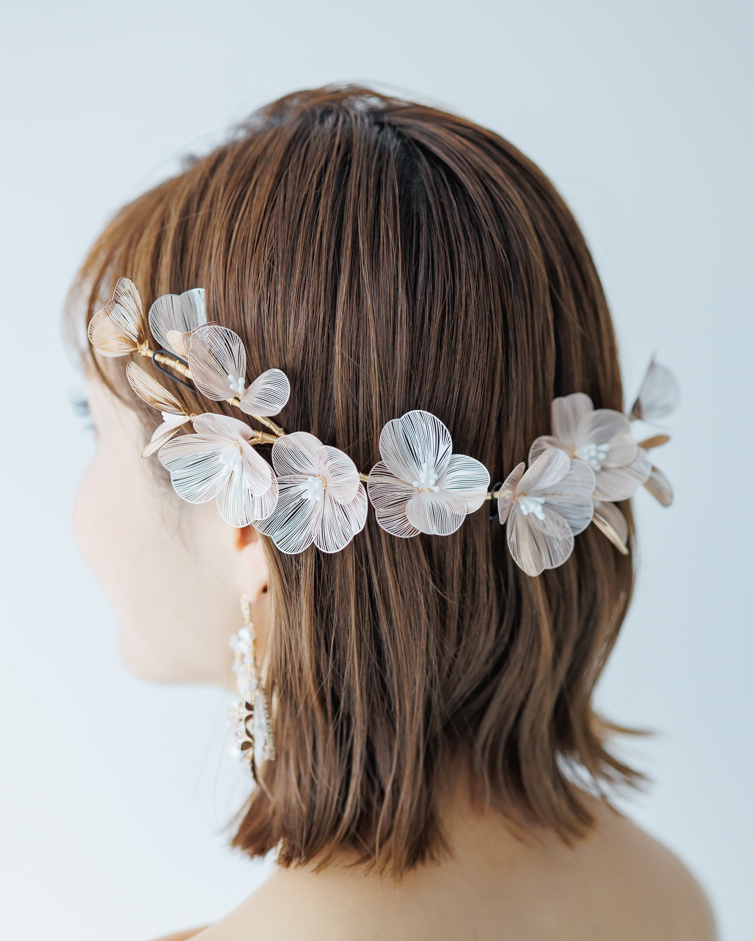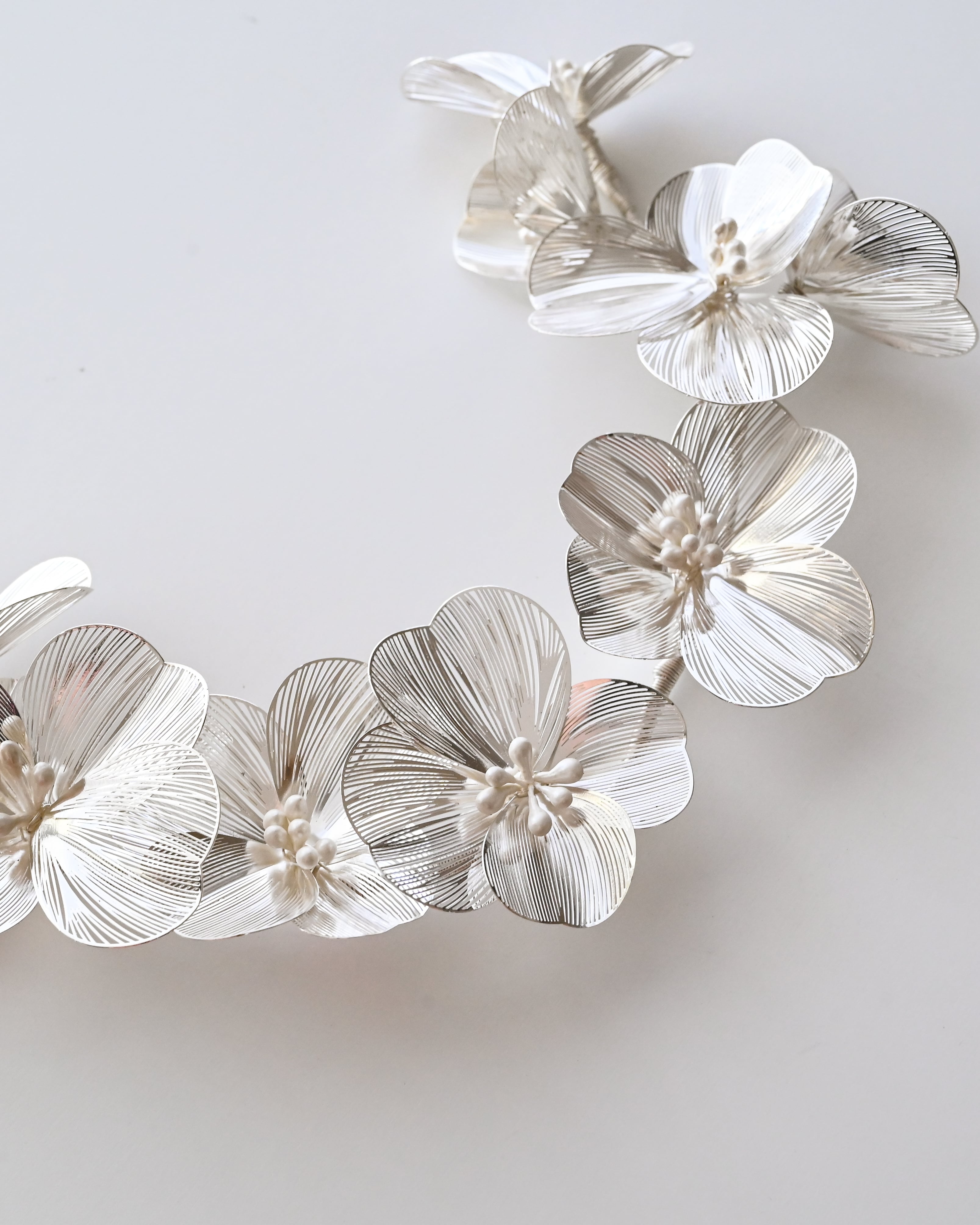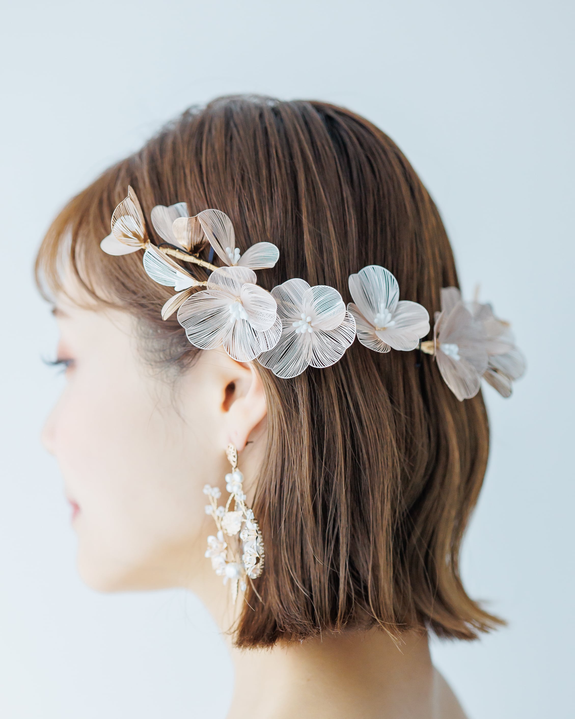 透明感と輝きをまとう“グロスシルバー”が魅力の、フラワーモチーフヘアアクセサリー。