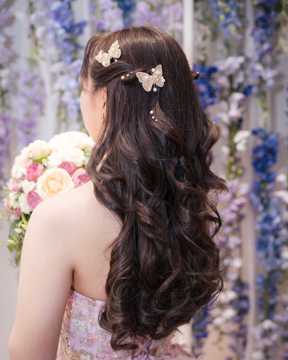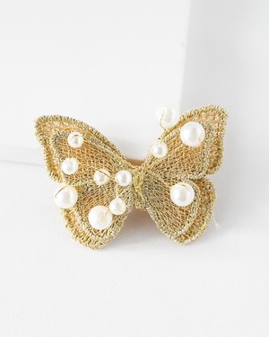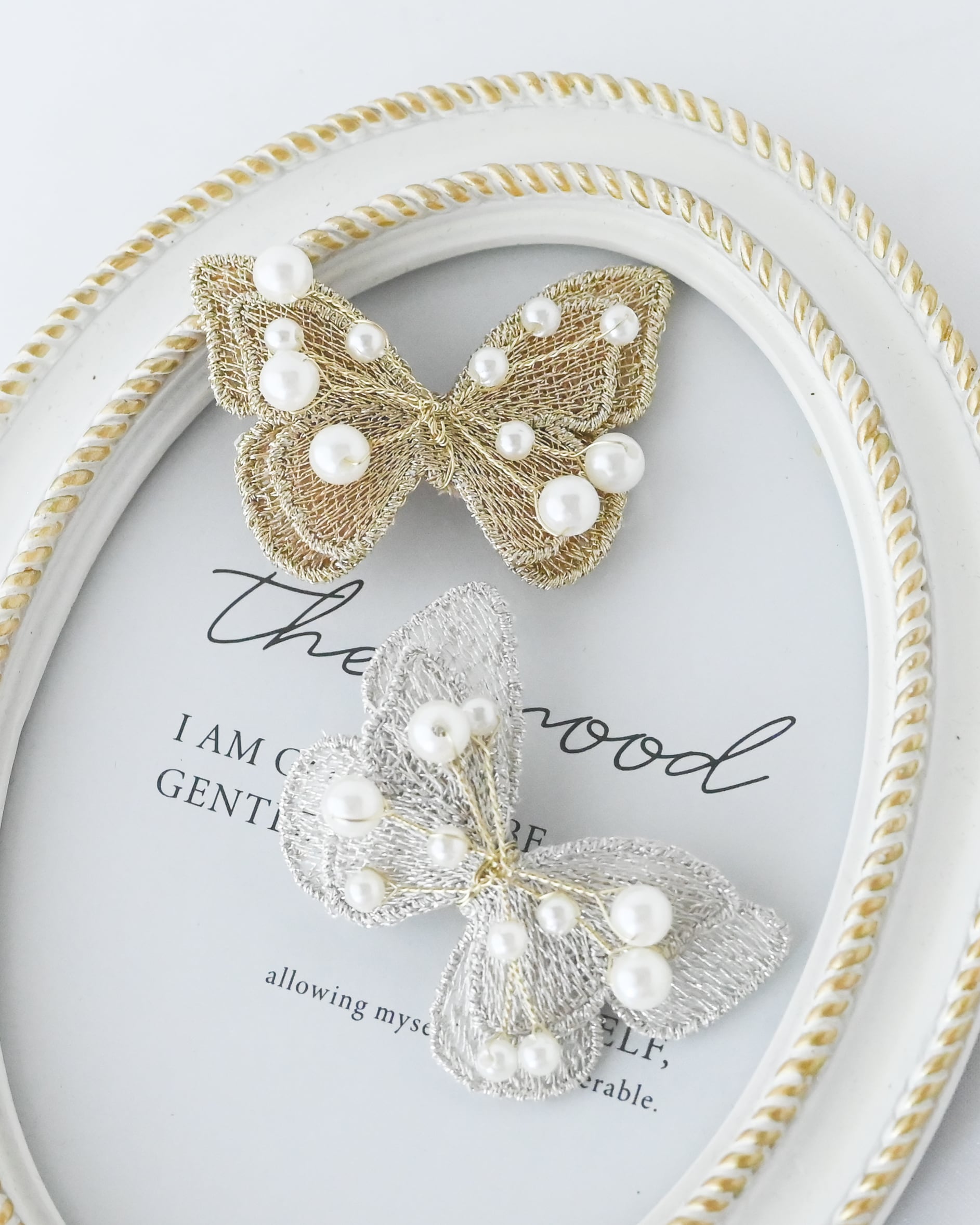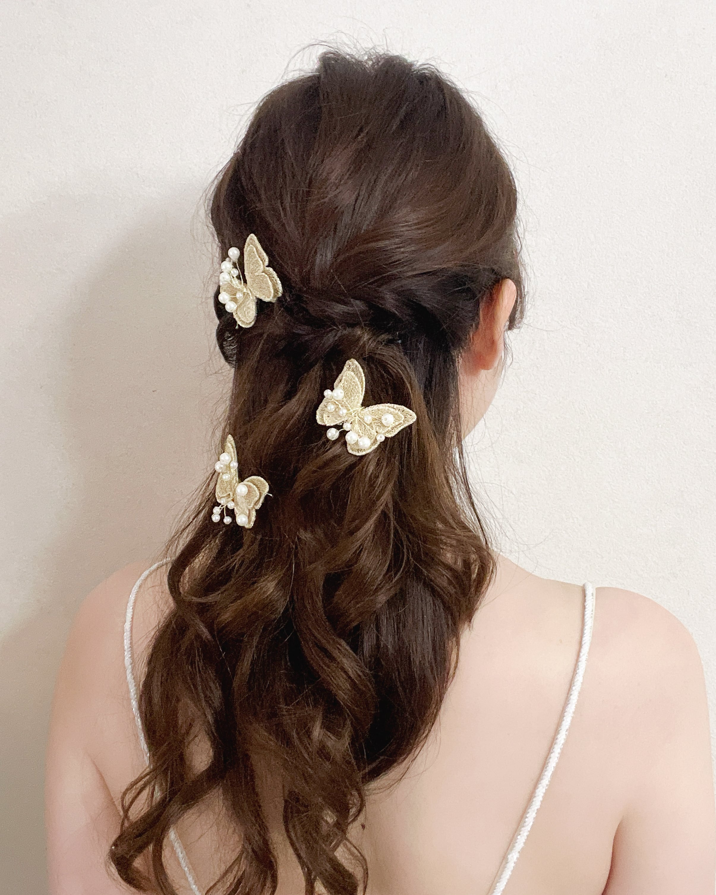 繊細なゴールドワイヤーで形作られた蝶々に、上品なパールを散りばめた華やかなヘアクリップ3個セット。