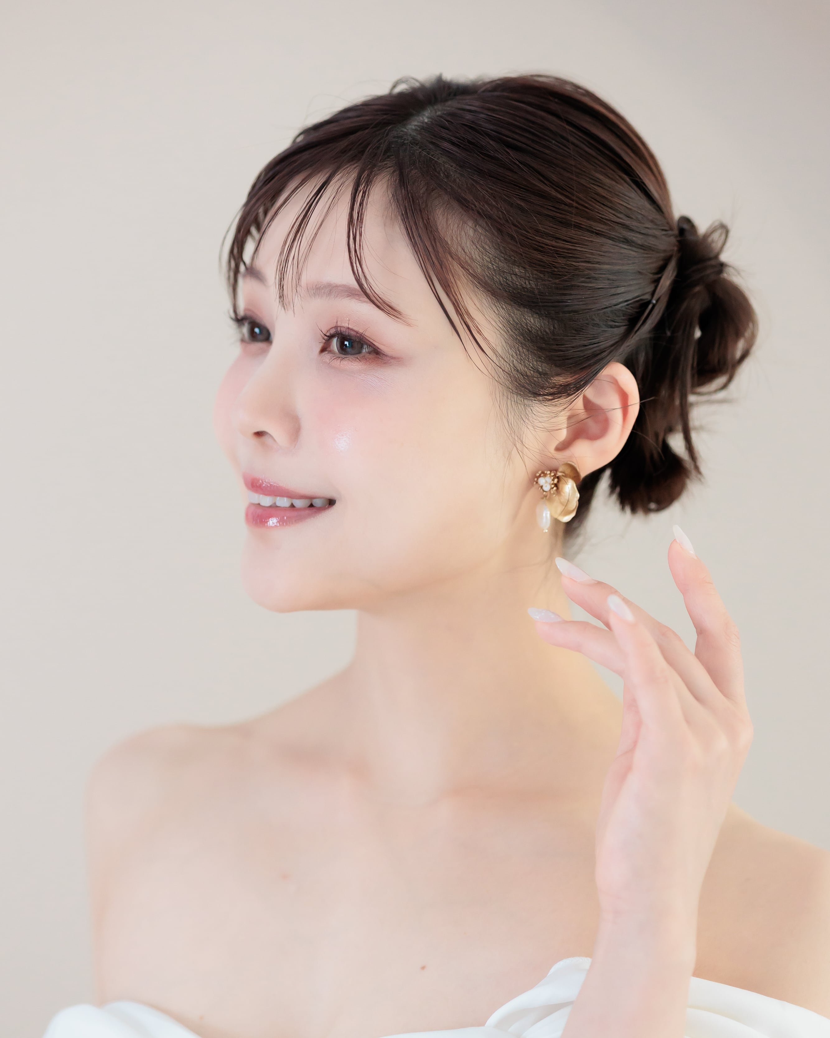 パールの上品な艶めきが動くたびに揺れ、花嫁様の横顔を優雅に引き立てます。