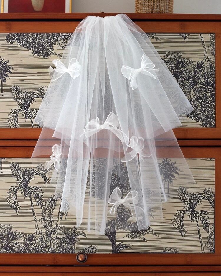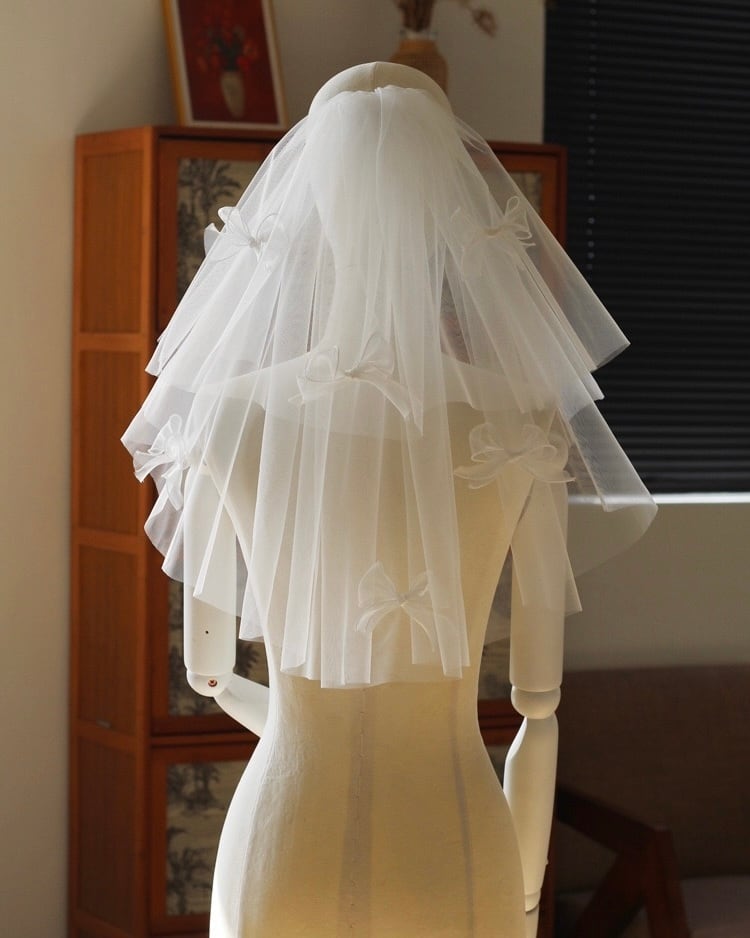 立体感あるリボンが主役の愛らしい印象のウェディングベール。