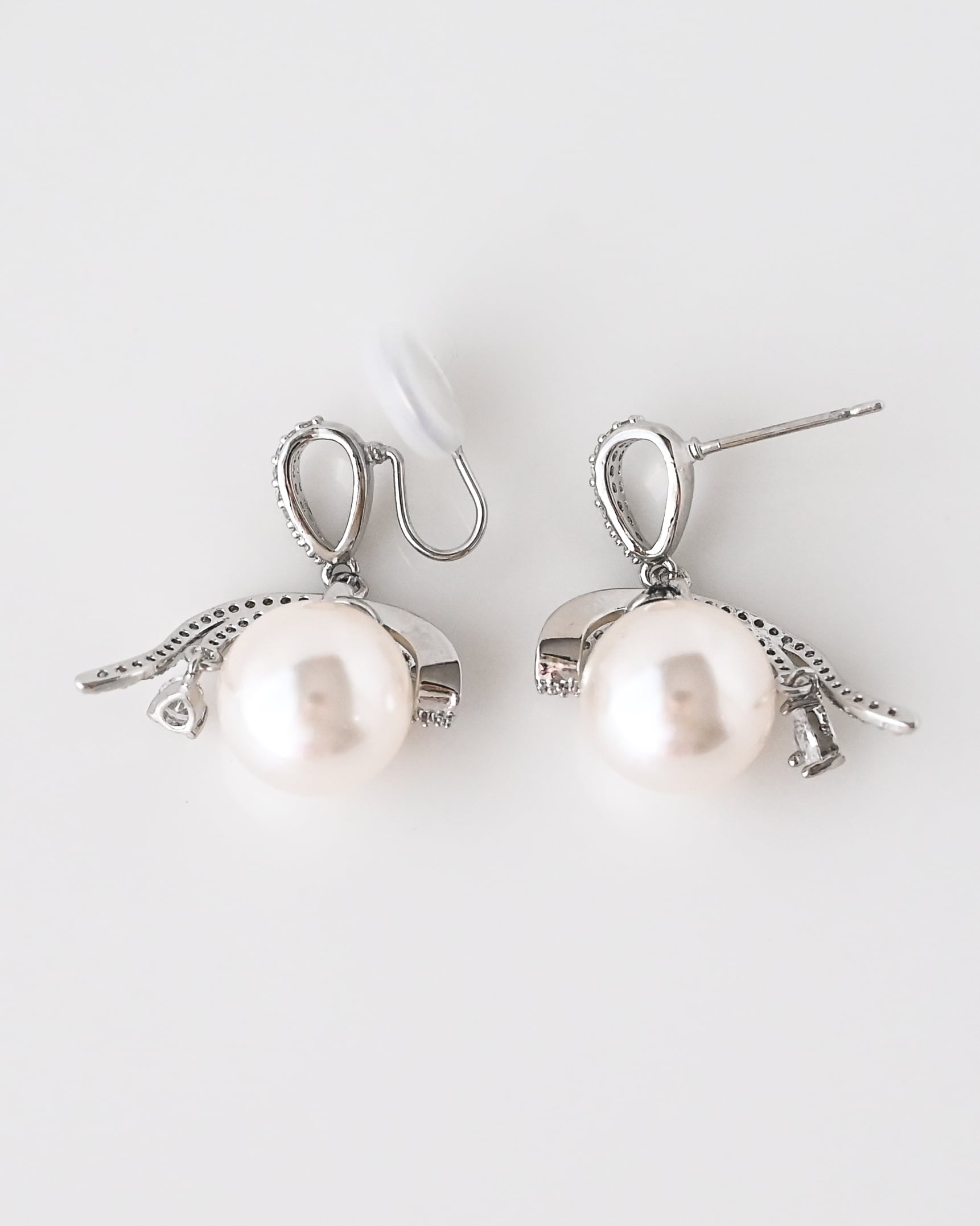 パールリボンイヤリング/ピアス【AE2508-04】
