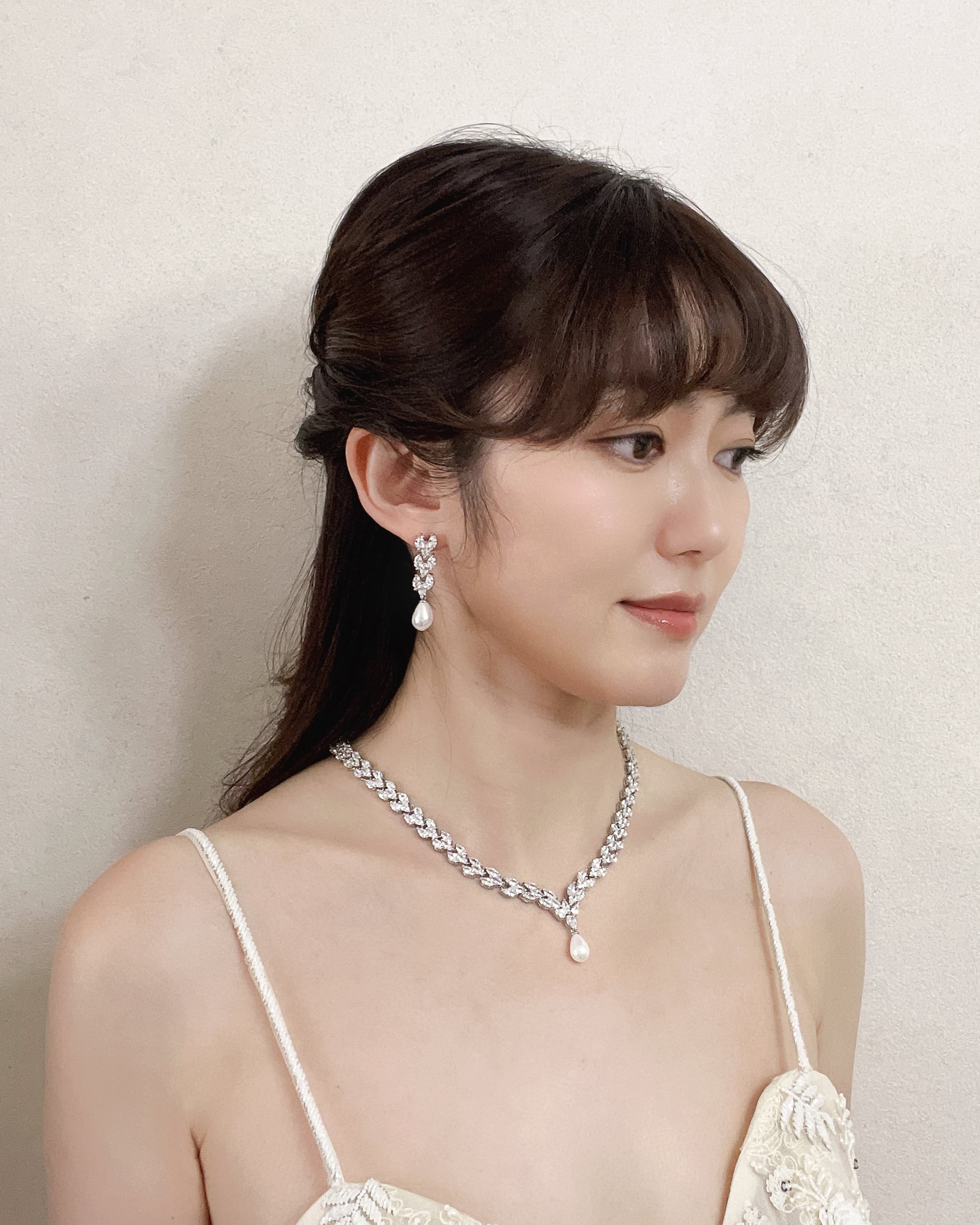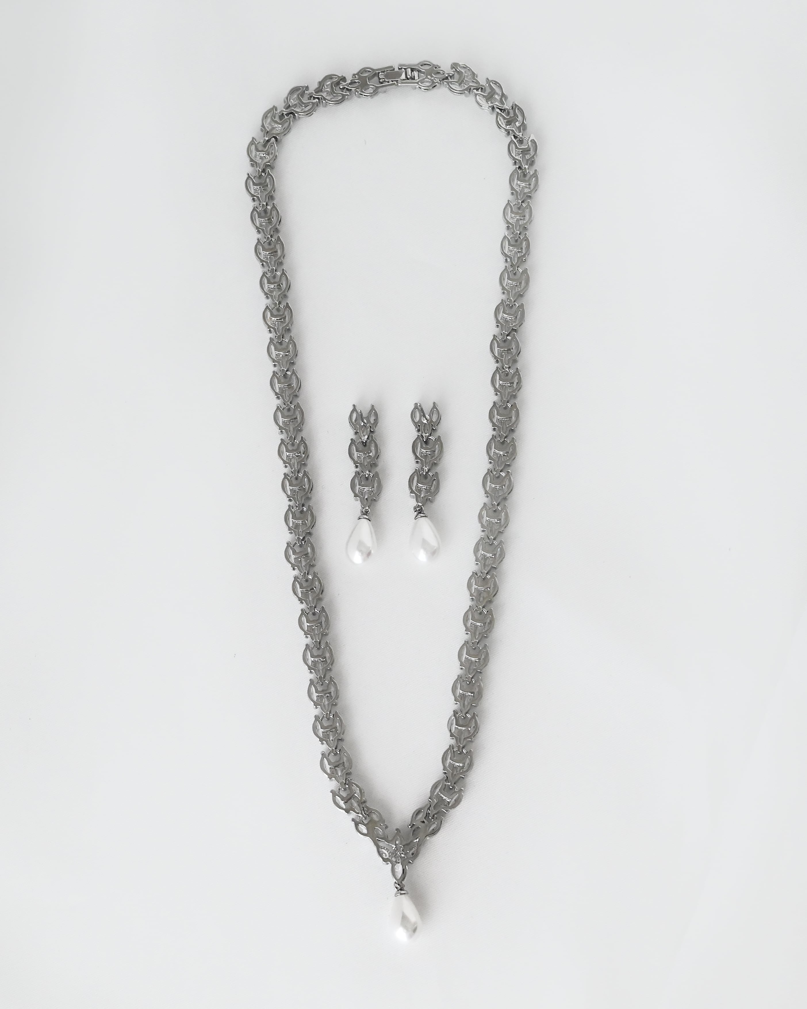 上品な輝きを放つ、ネックレスとピアスのセットアイテム。