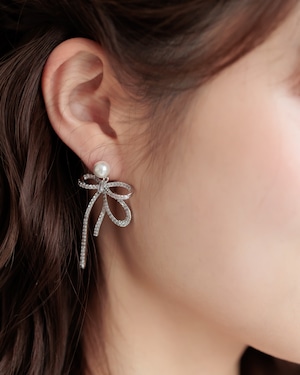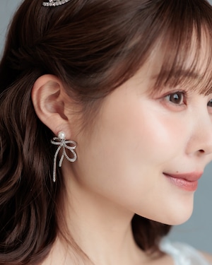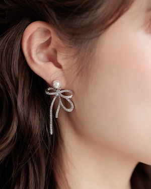 上品さと愛らしさを一度に叶える、洗練されたリボンモチーフピアス。
