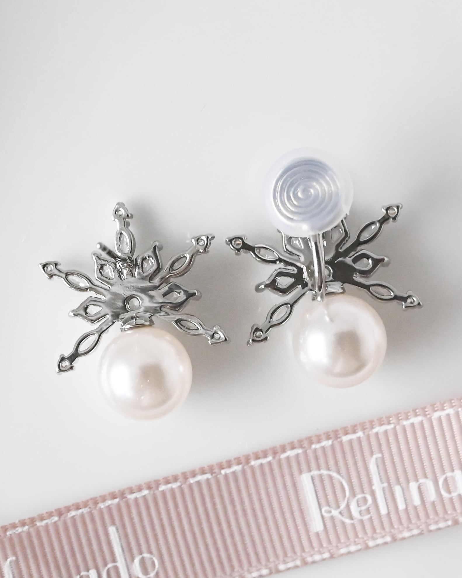 雪結晶のように繊細に輝くビジューと、上品なパールが印象的なピアス/イヤリング。