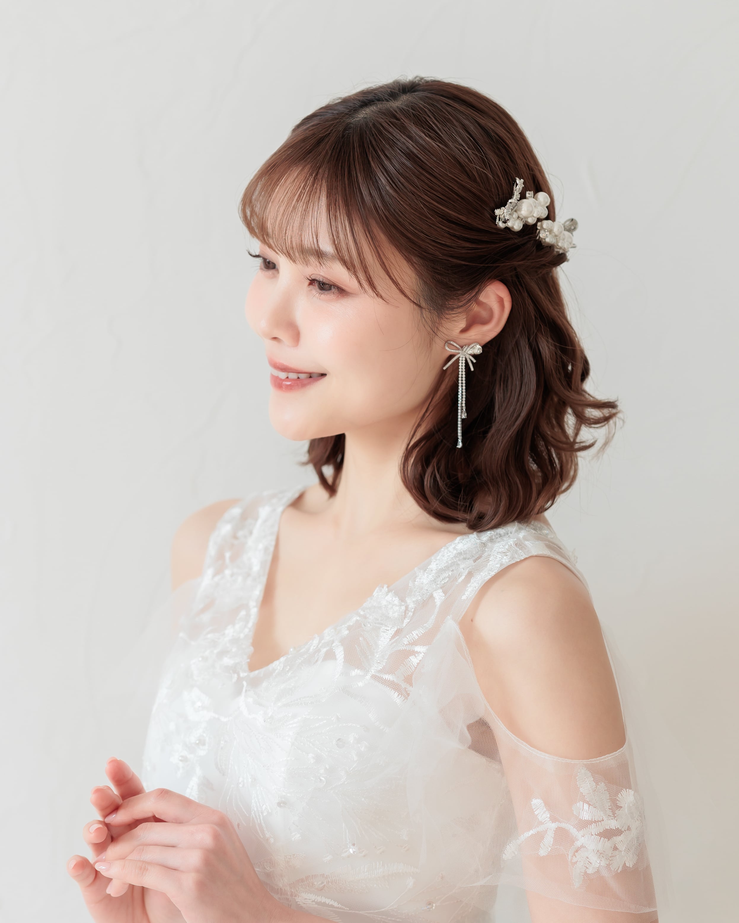 アップスタイルやローポニーテールなど、耳元を見せるヘアスタイルに合わせるのがおすすめ。