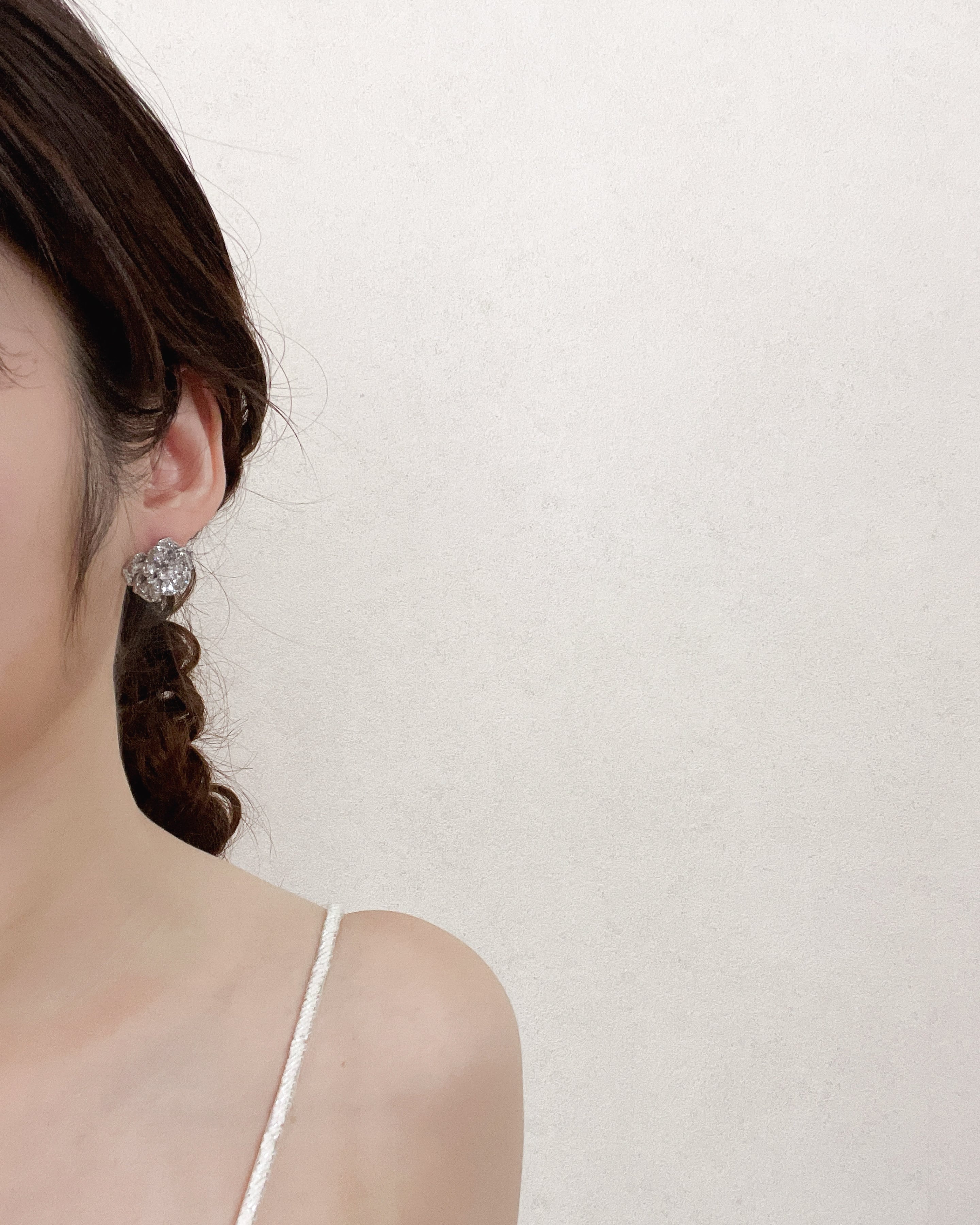 まとめ髪やシニヨンスタイルに合わせると、耳元に立体感と輝きが生まれ、横顔を美しく演出。
