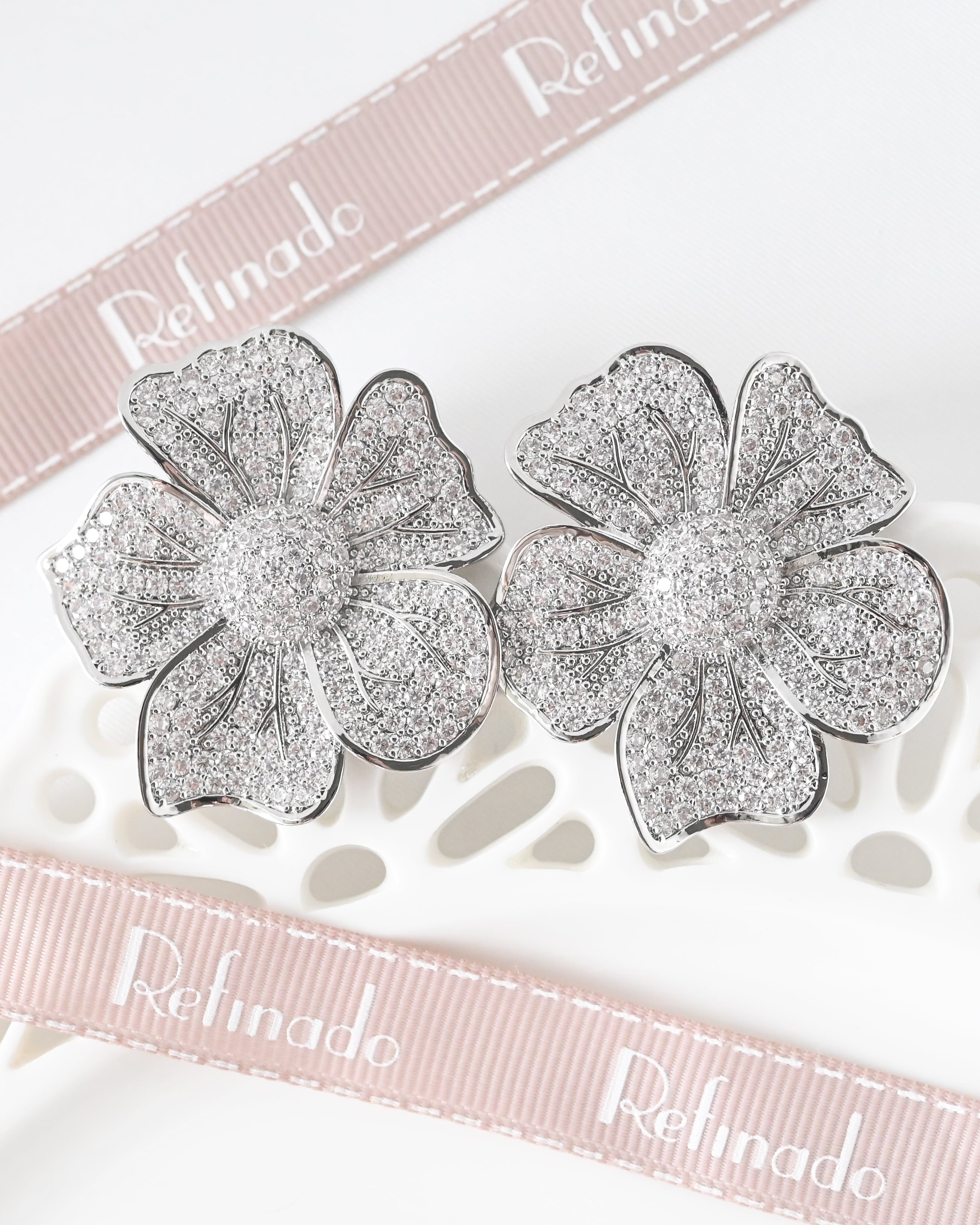 繊細なビジューを贅沢に敷き詰めた、大輪のフラワーモチーフイヤリング。