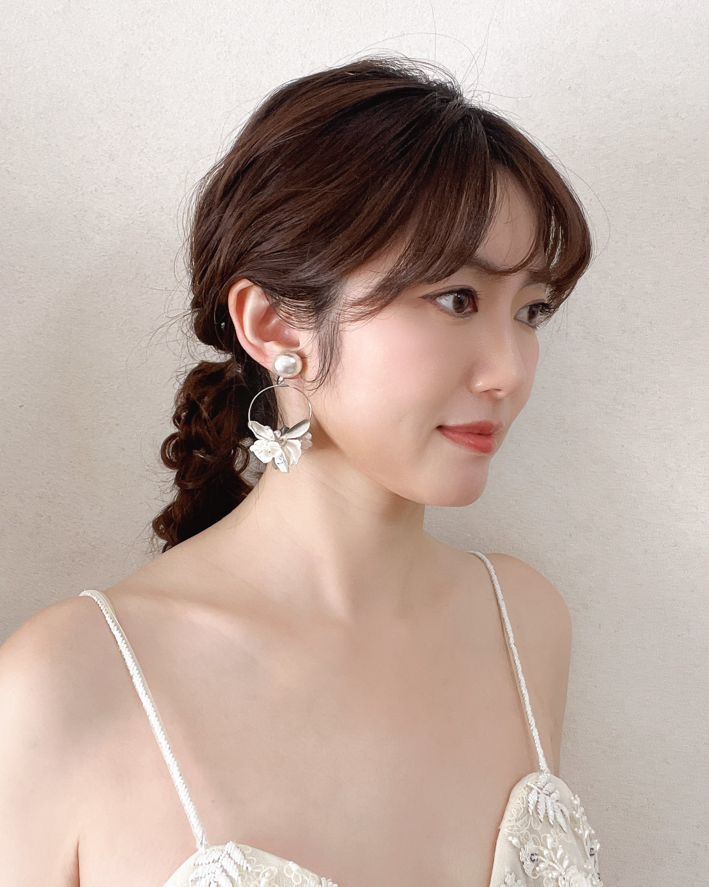 シンプルなアップヘアにも映え、軽やかに揺れるフープが顔まわりを明るく見せてくれるデザイン。