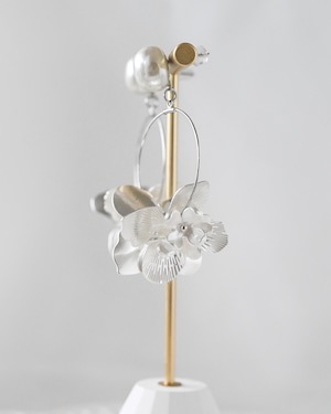 繊細な花びらと光沢のあるパールが描く、華やかで軽やかなフラワーフープピアス/イヤリング。