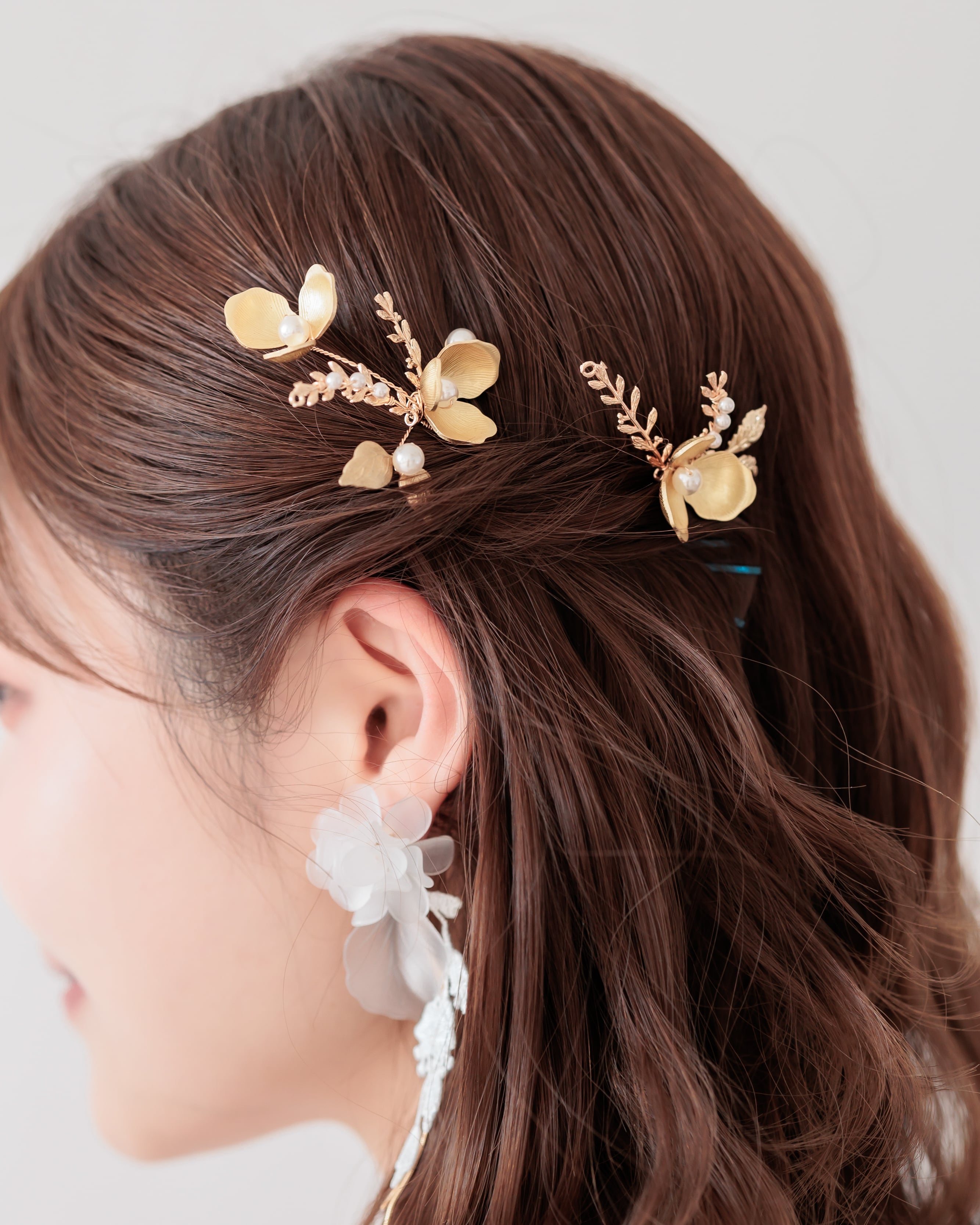 ブライダルゴールドフラワーピン2本セット 【AH2510-03】