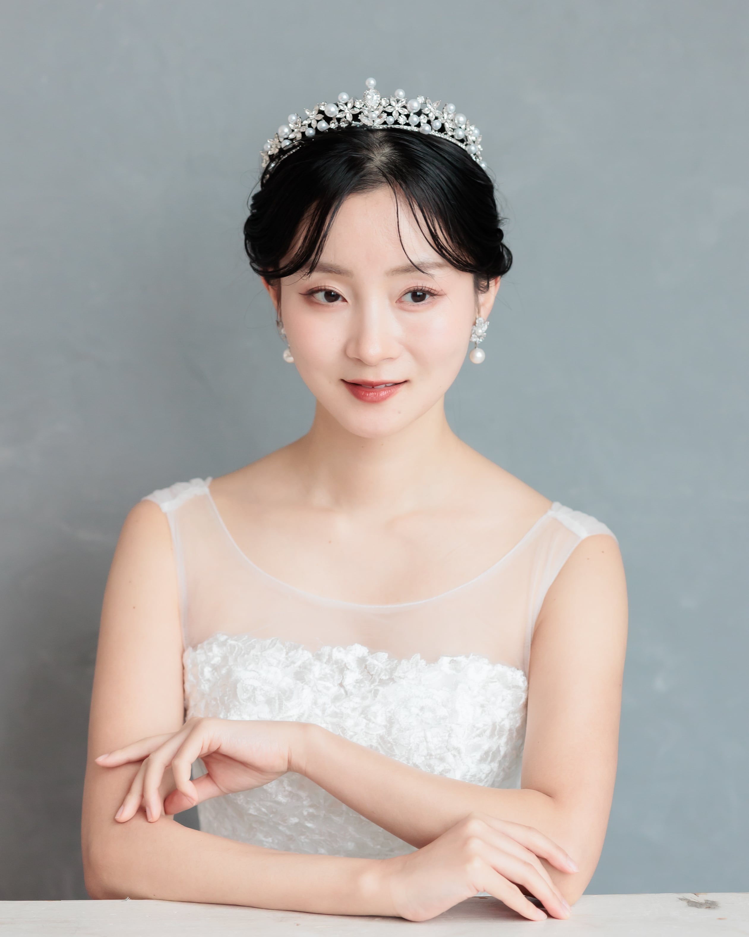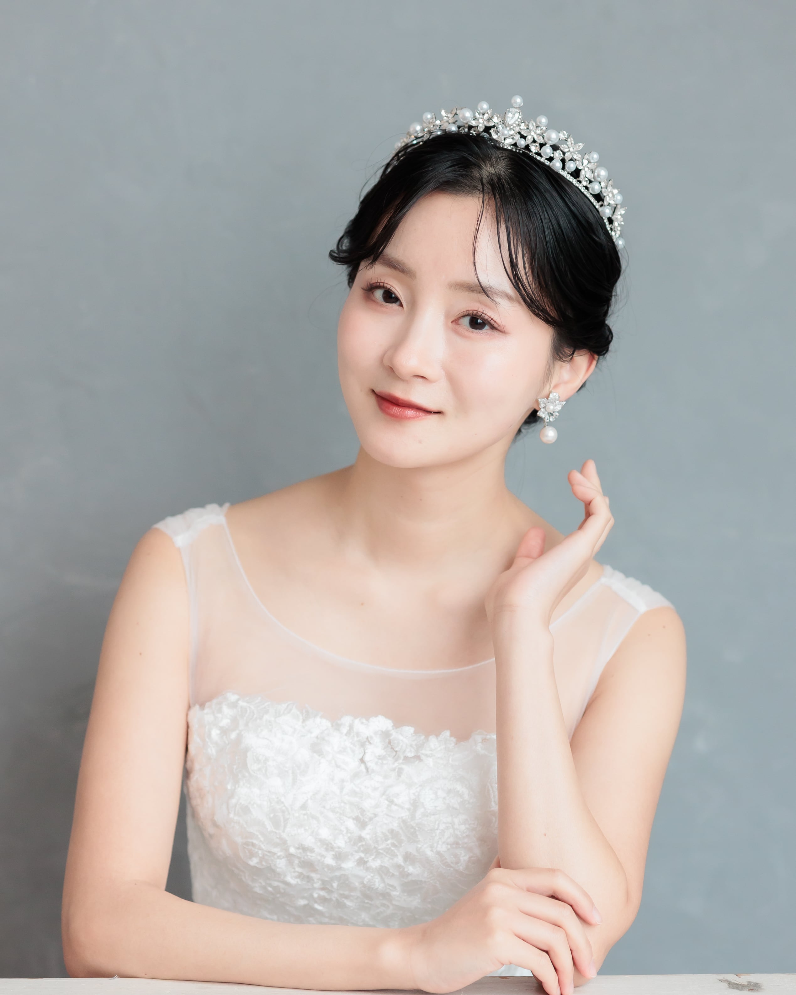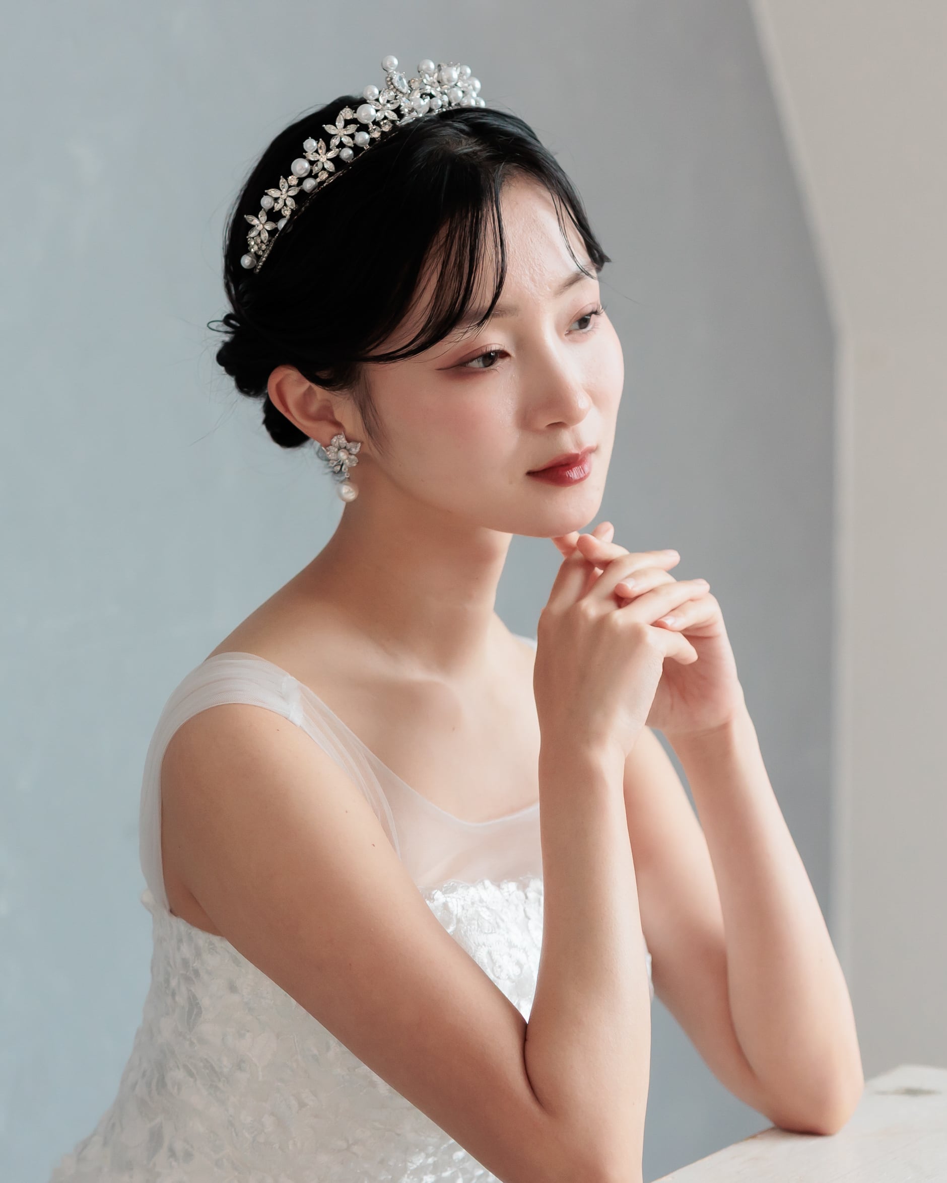 軽やかな着け心地で、アップスタイルやシニヨンなどの花嫁ヘアにも自然にマッチ。