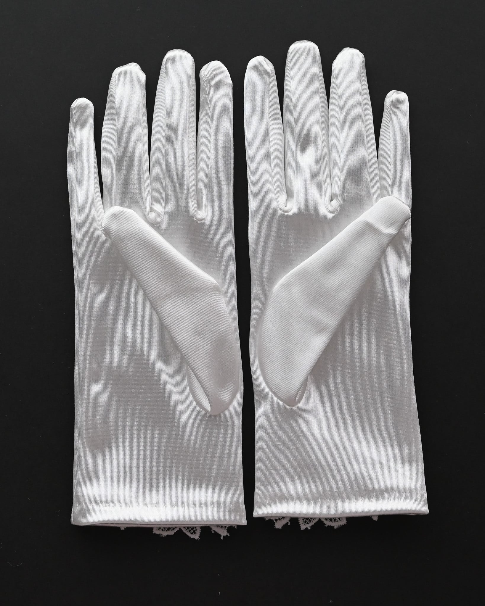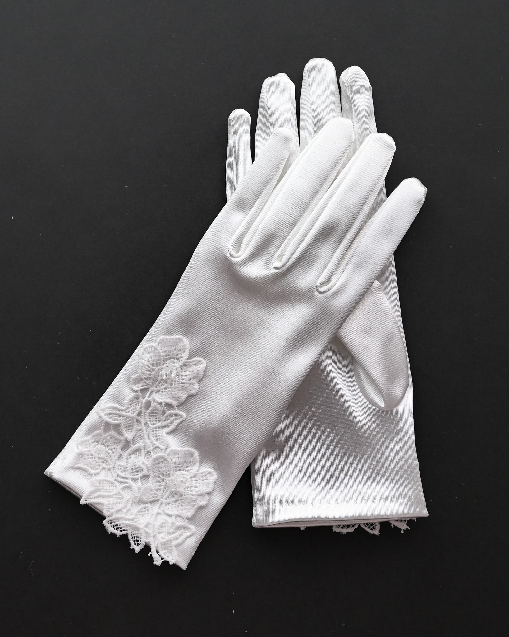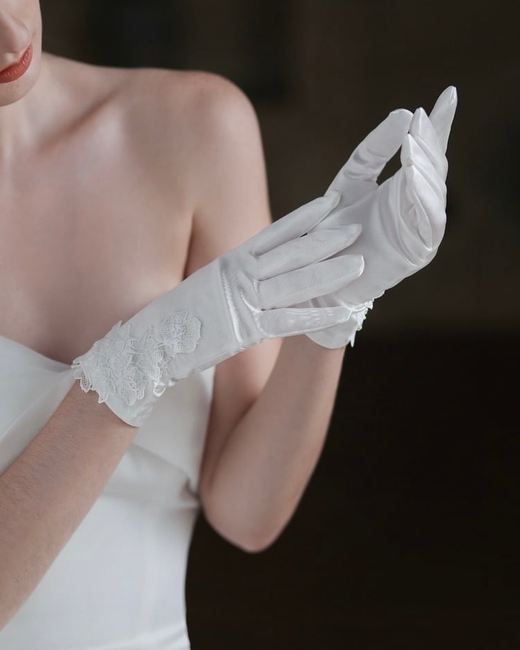 艶やかなサテン生地に、繊細なレースをあしらった上品なショートグローブ。