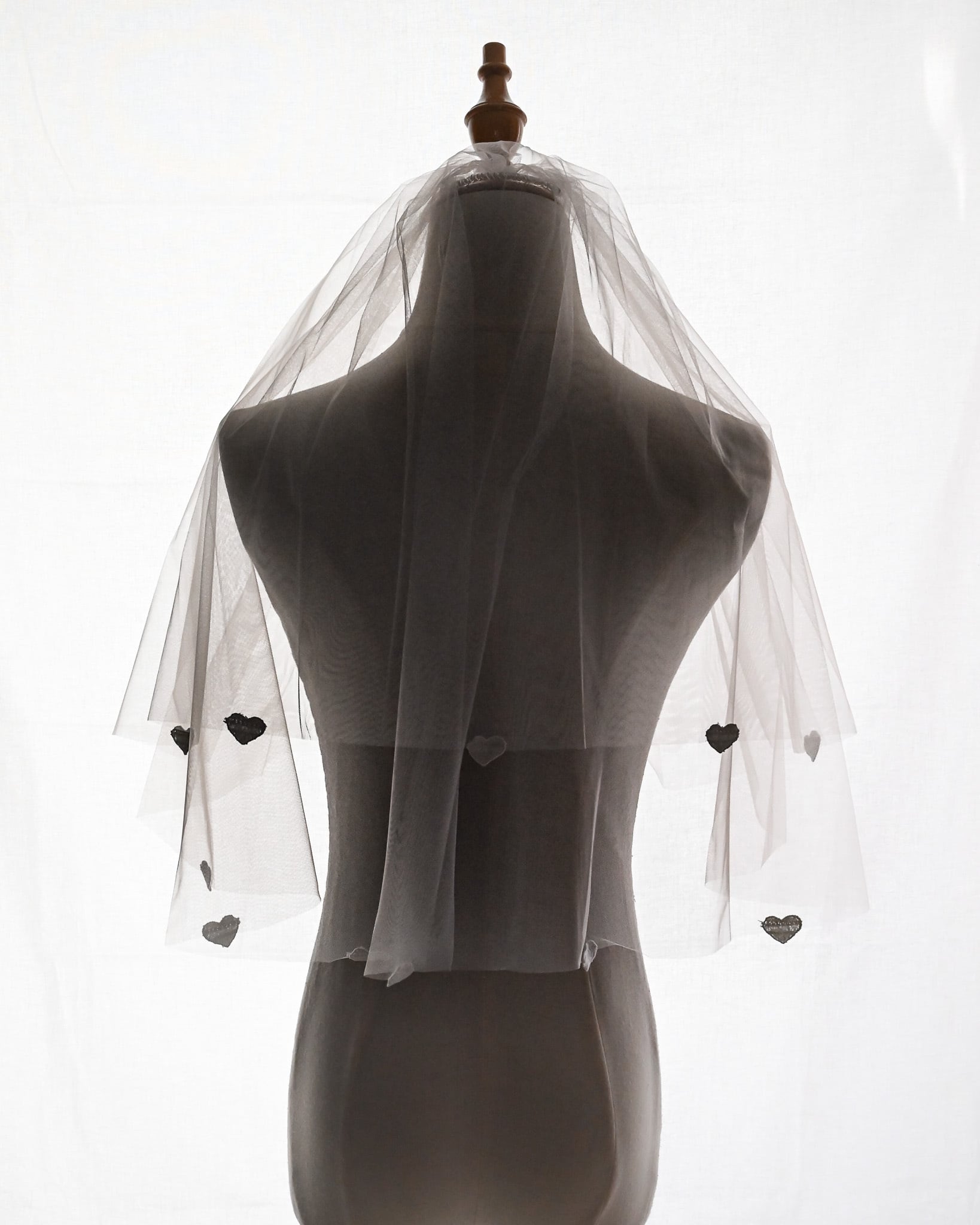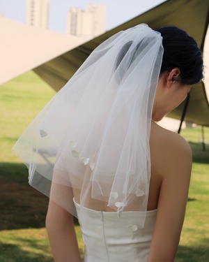 裾に小さなハートモチーフをあしらった、可憐で遊び心のあるショートベール。