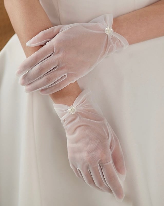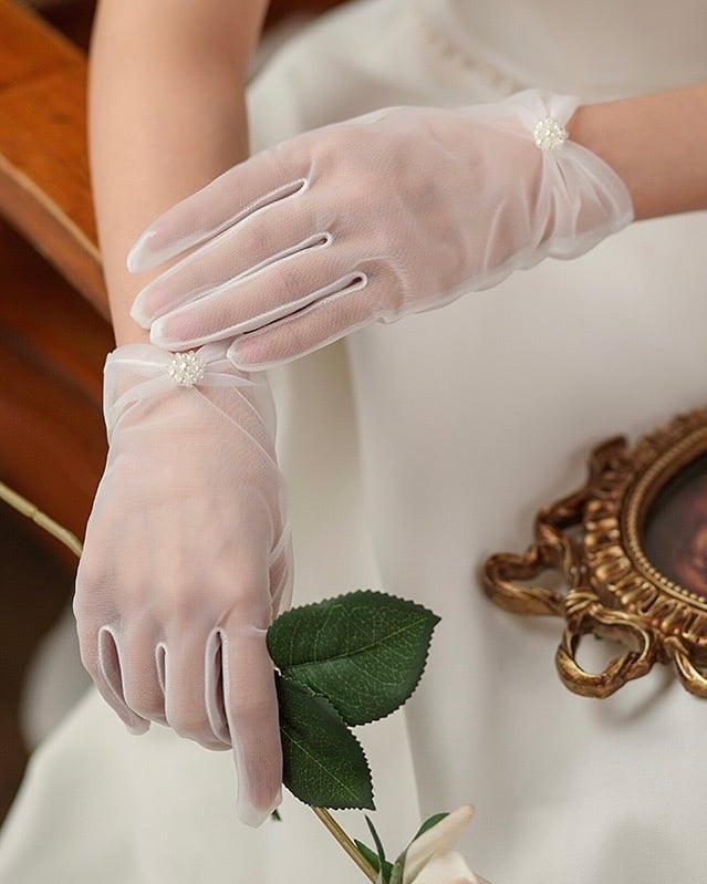 繊細な透け感が美しい、チュール素材のショートグローブ。