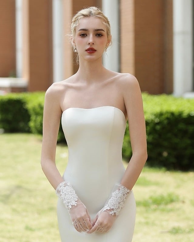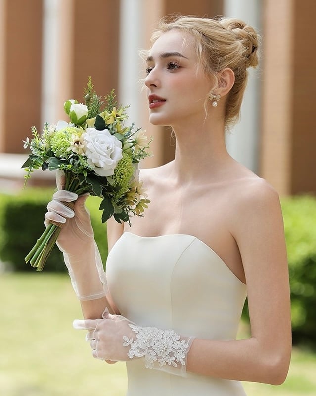 指先まで軽やかな透け感があり、リングセレモニーの瞬間にも美しく映えます。