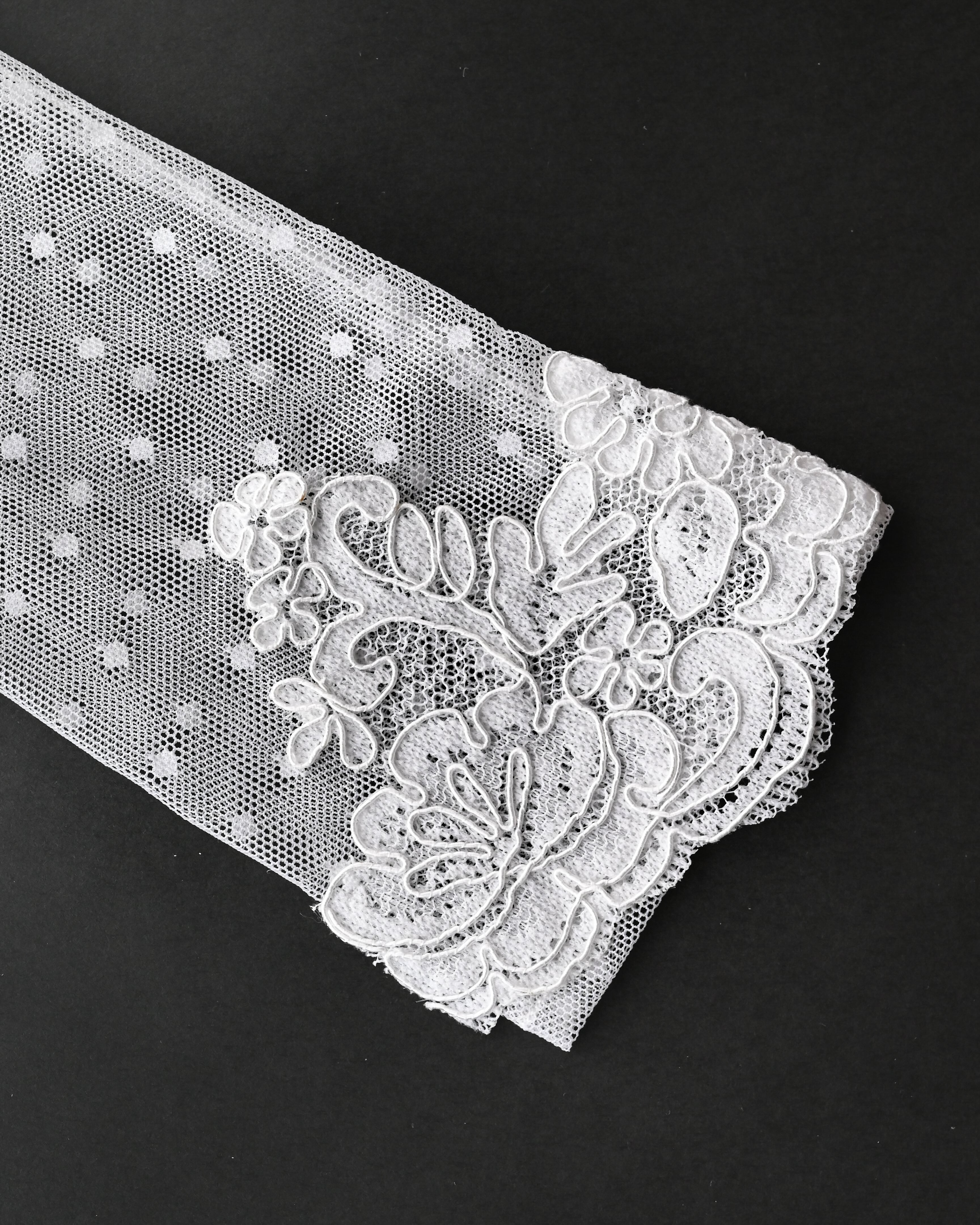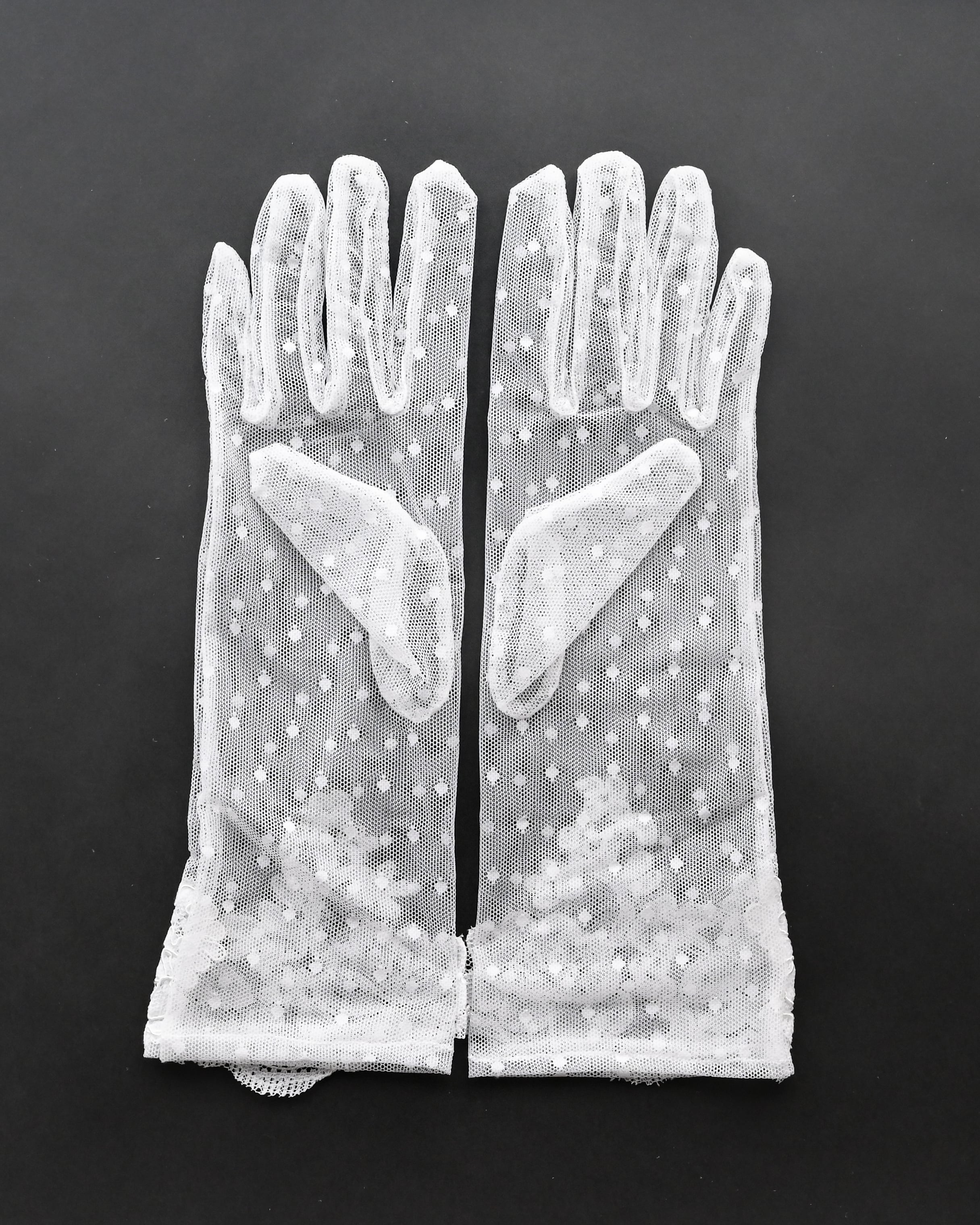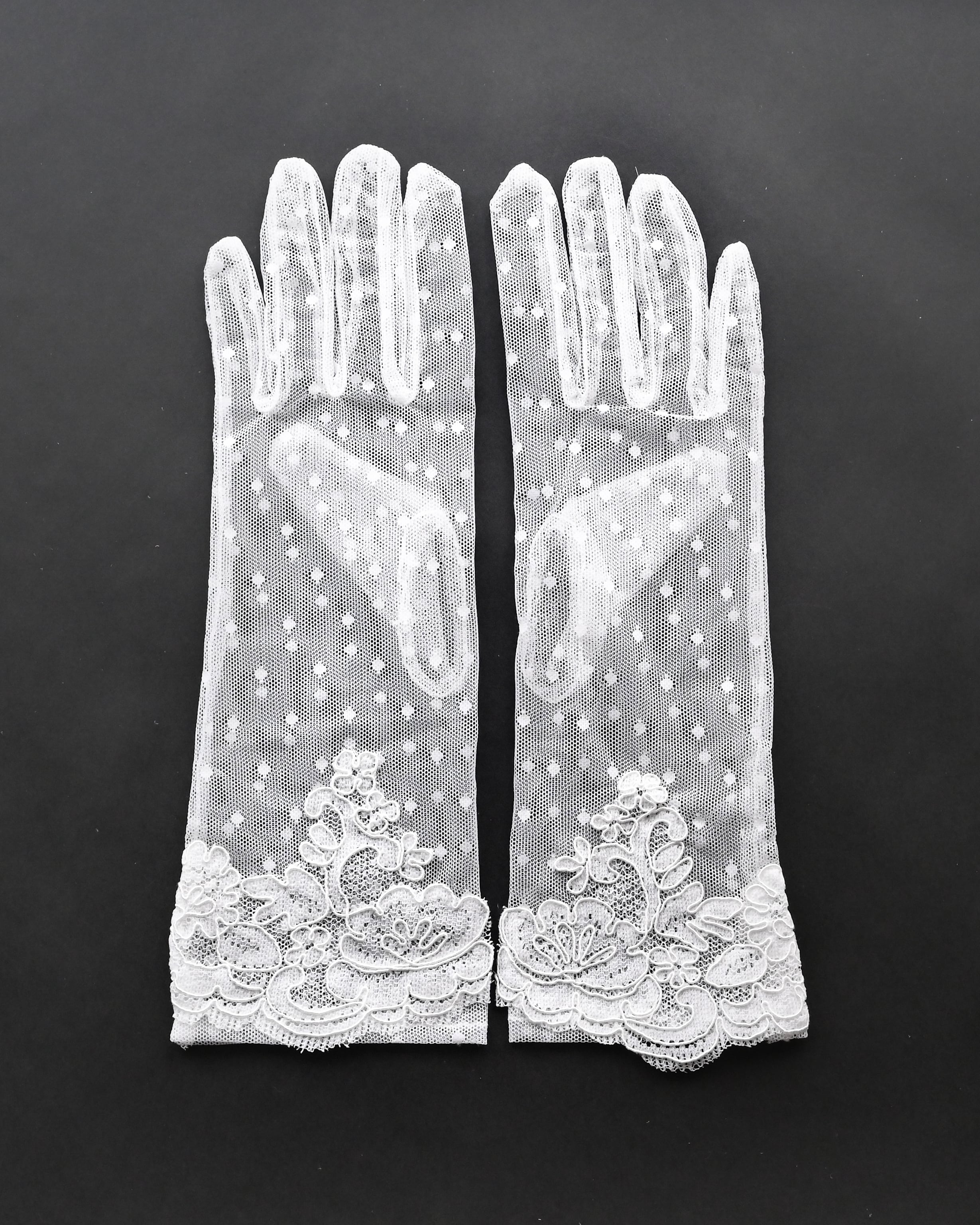 可憐なドットチュールにフラワーレースをあしらった、上品でフェミニンなショートグローブ。
