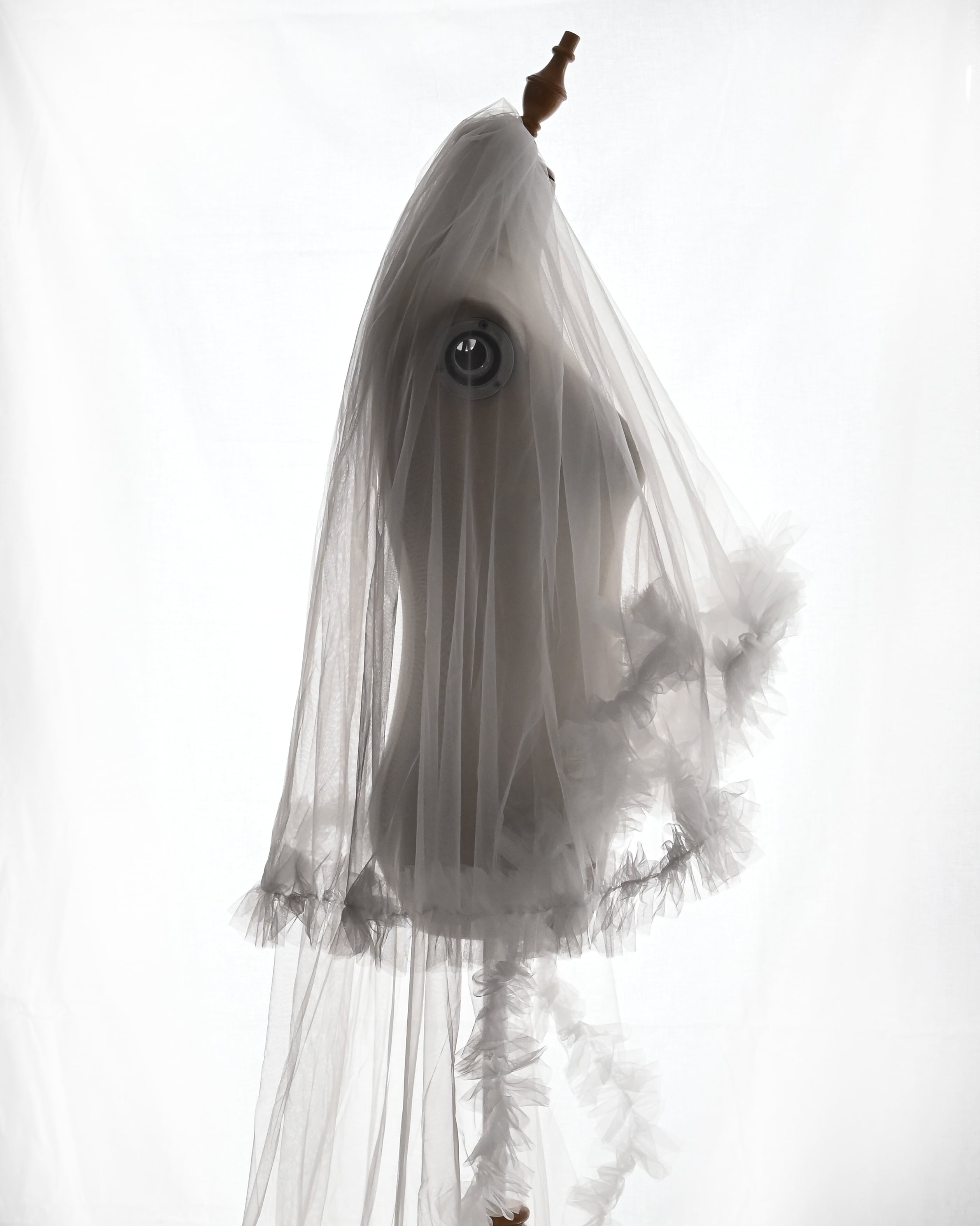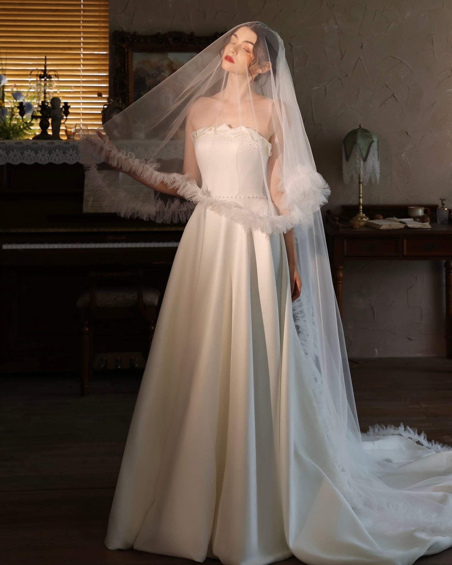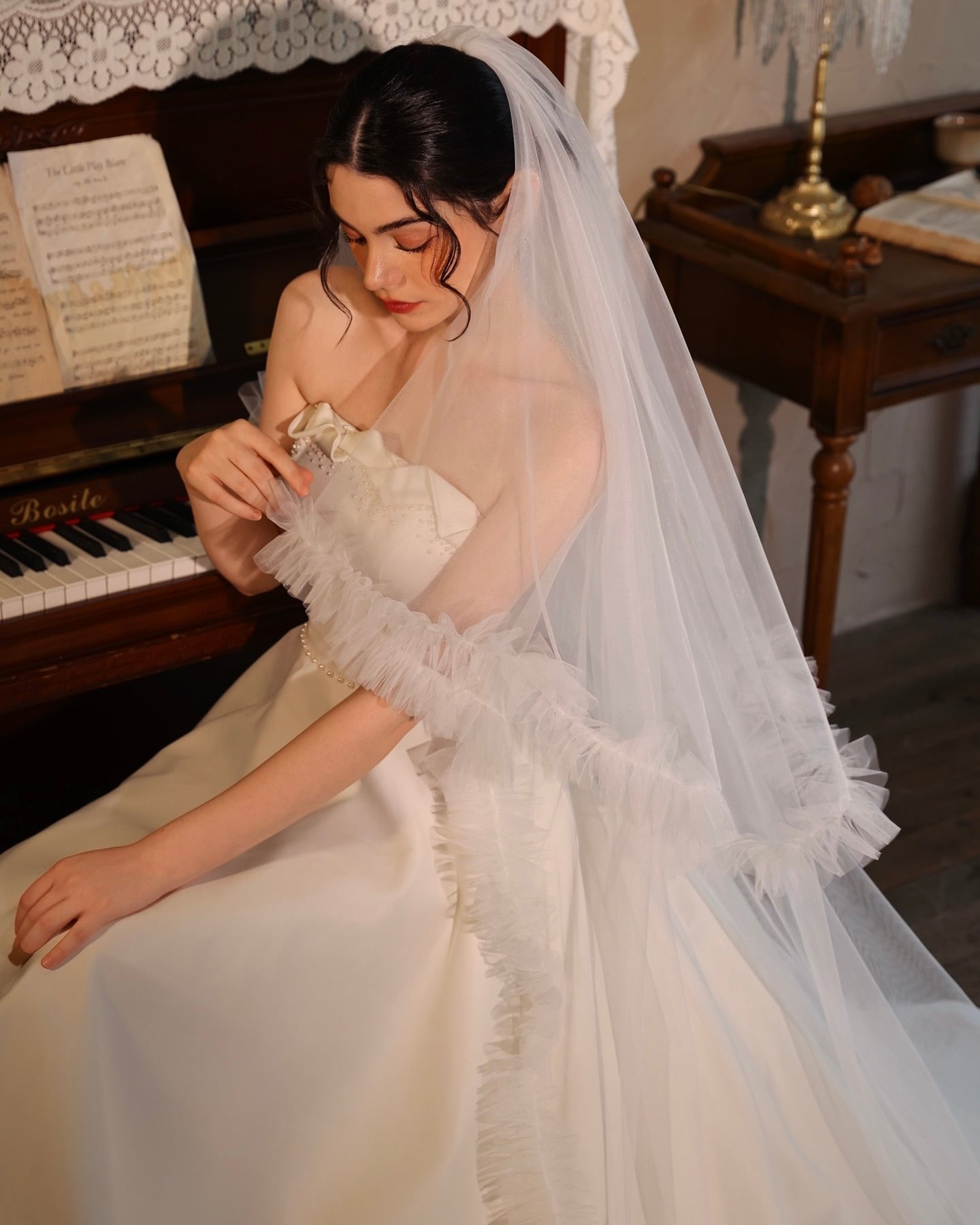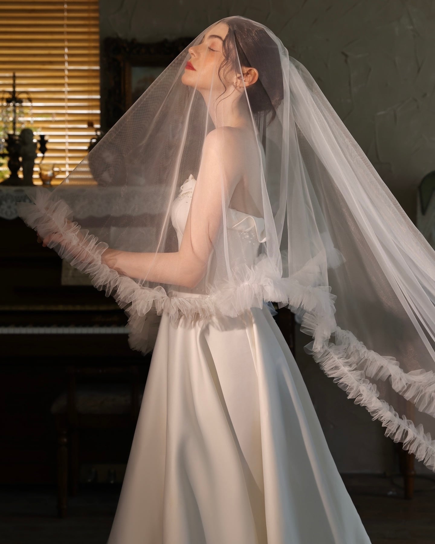 軽やかに揺れるフリルが、花嫁を優しく包み込むエアリーなベール。