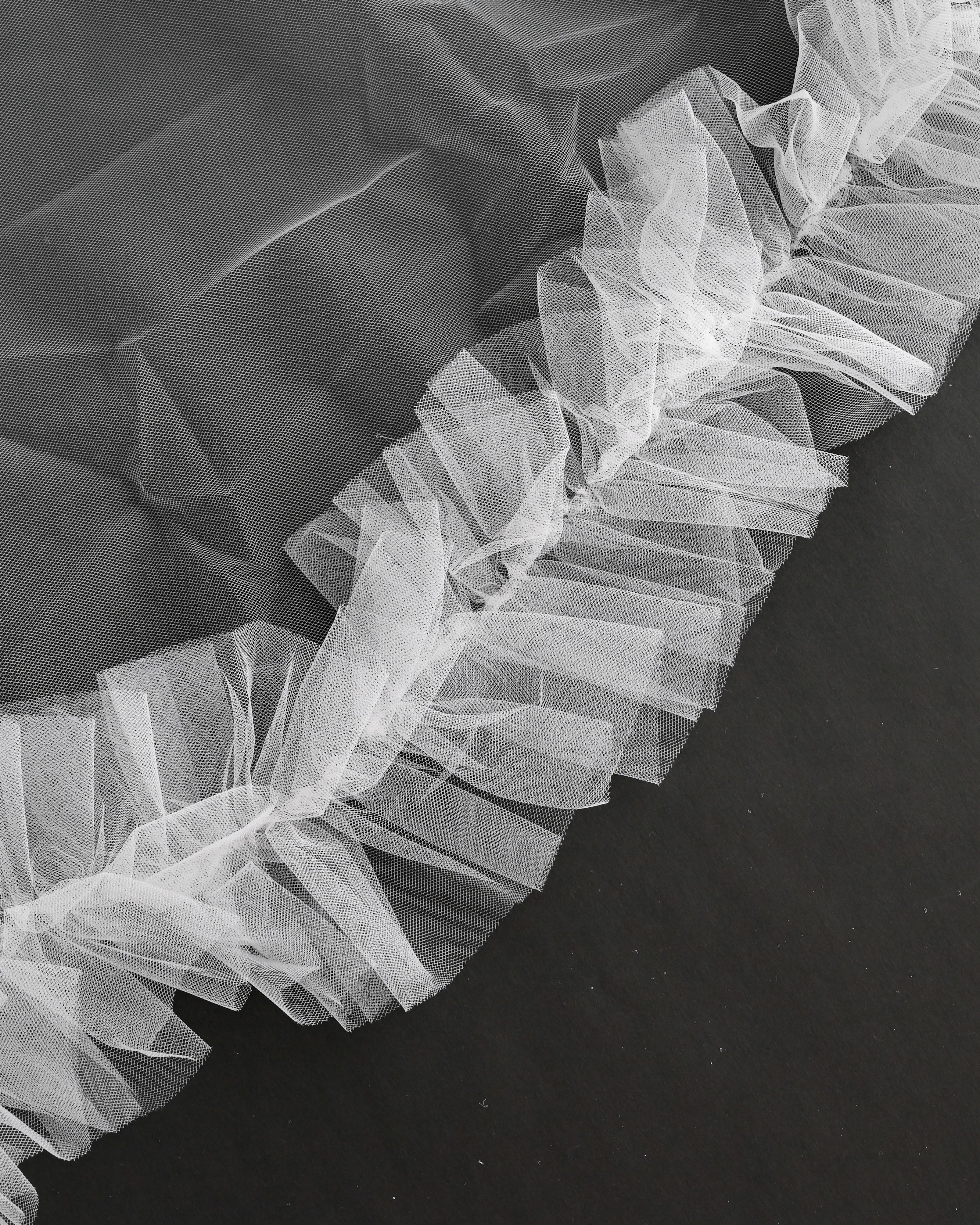 繊細なソフトチュールをたっぷりと使用し、縁には細やかなチュールフリルをあしらいました。