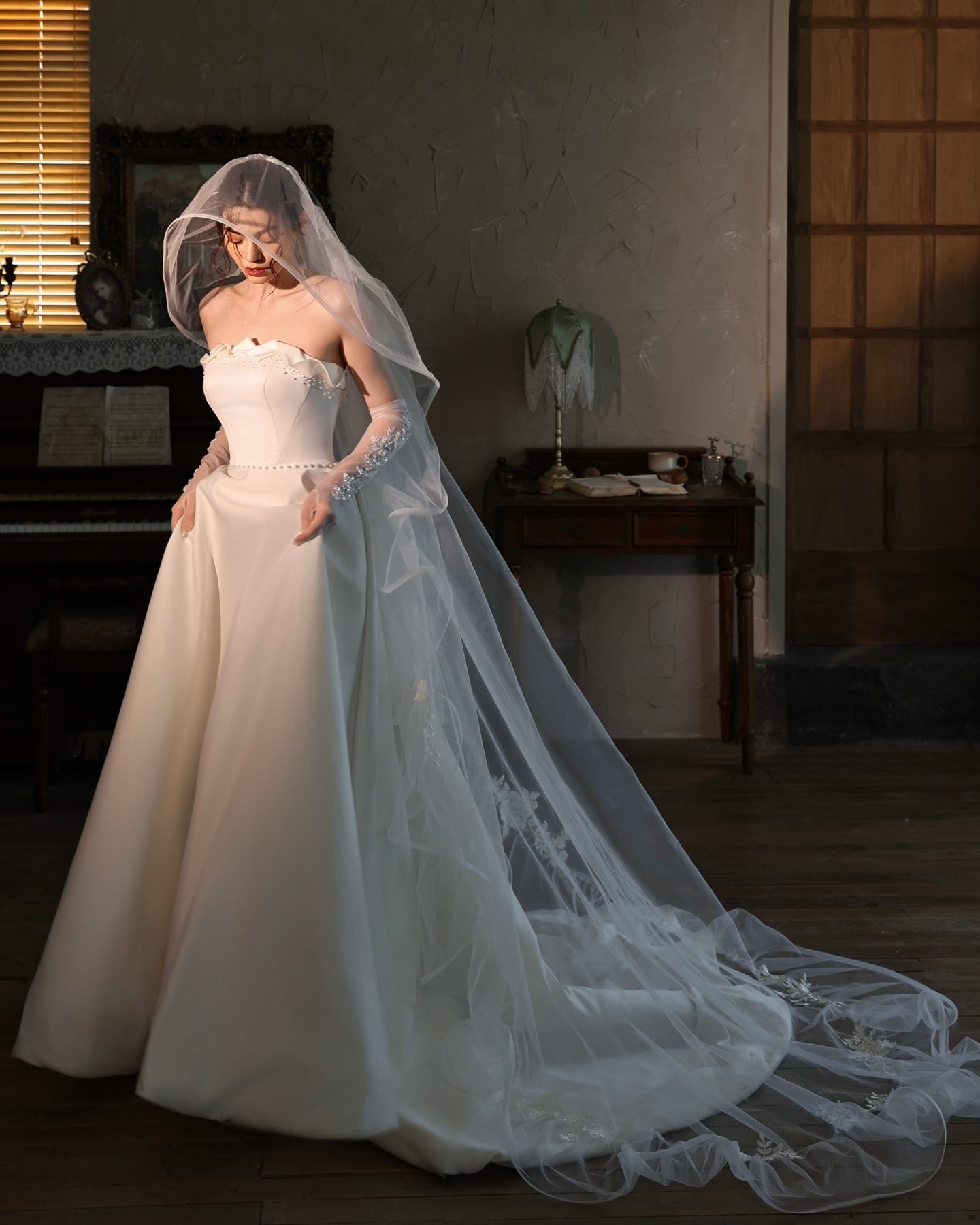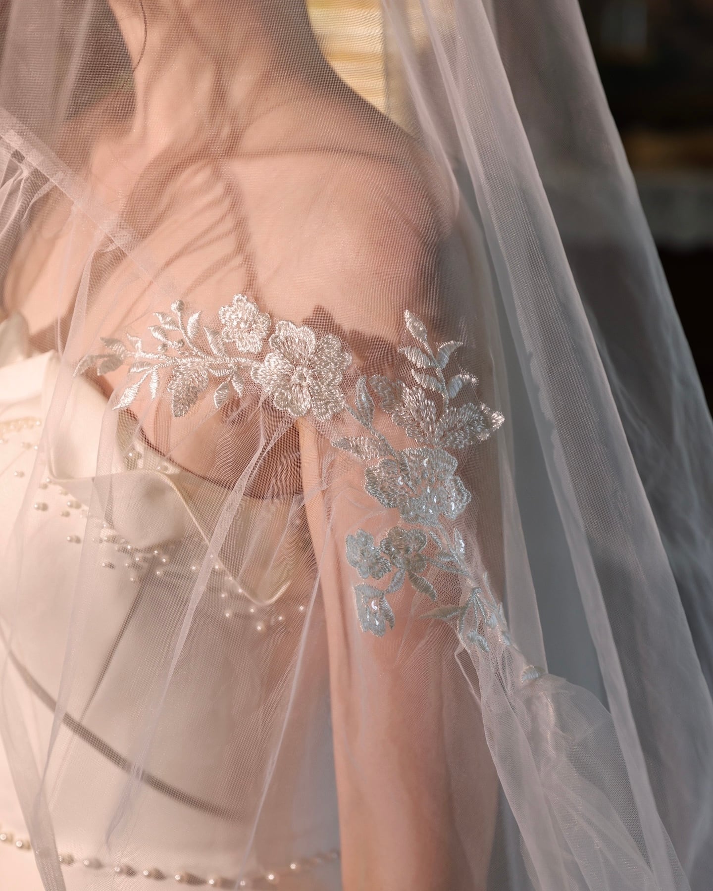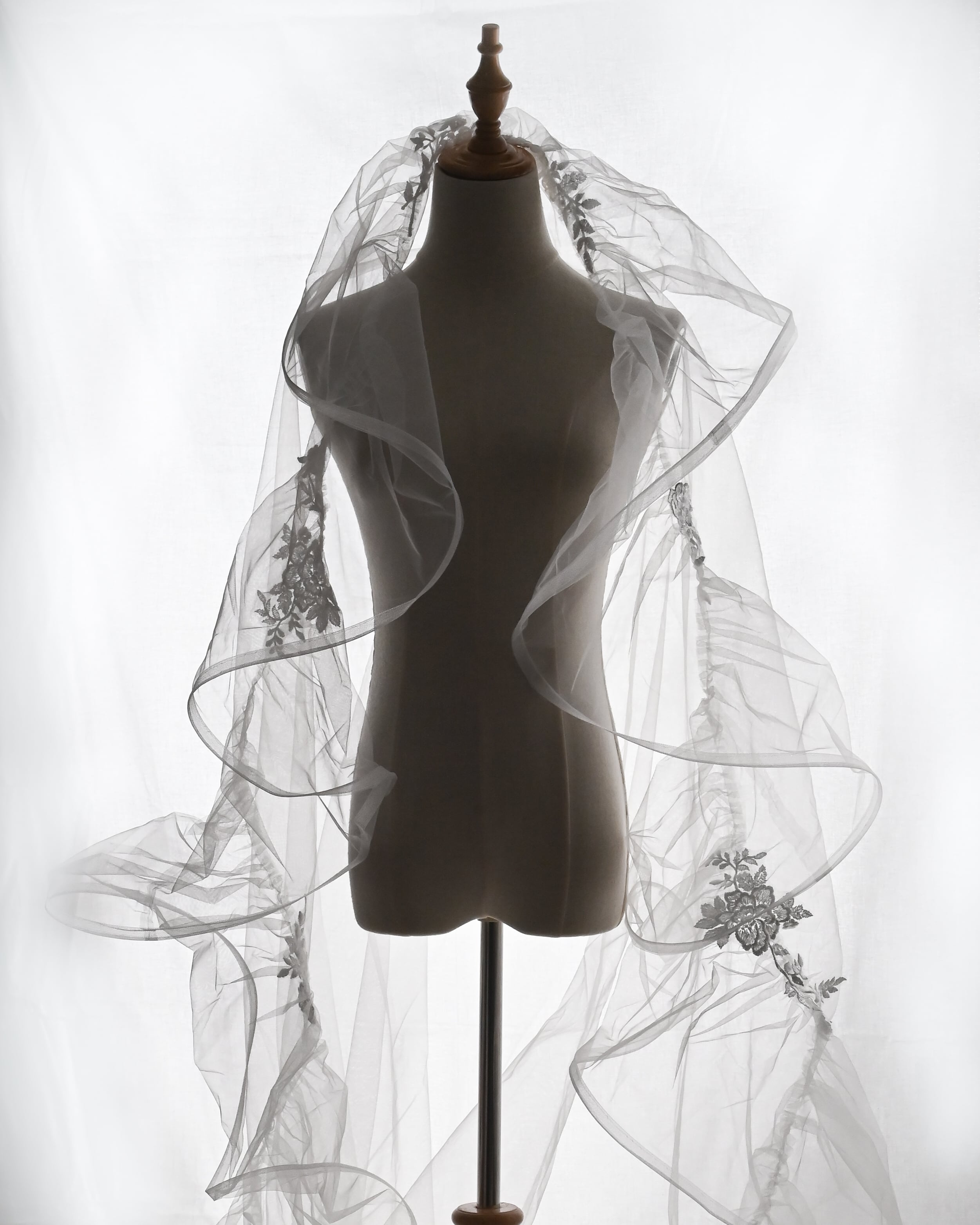 ドレープエッジ (刺繍モチーフ)ロングベール【VL2511-09】