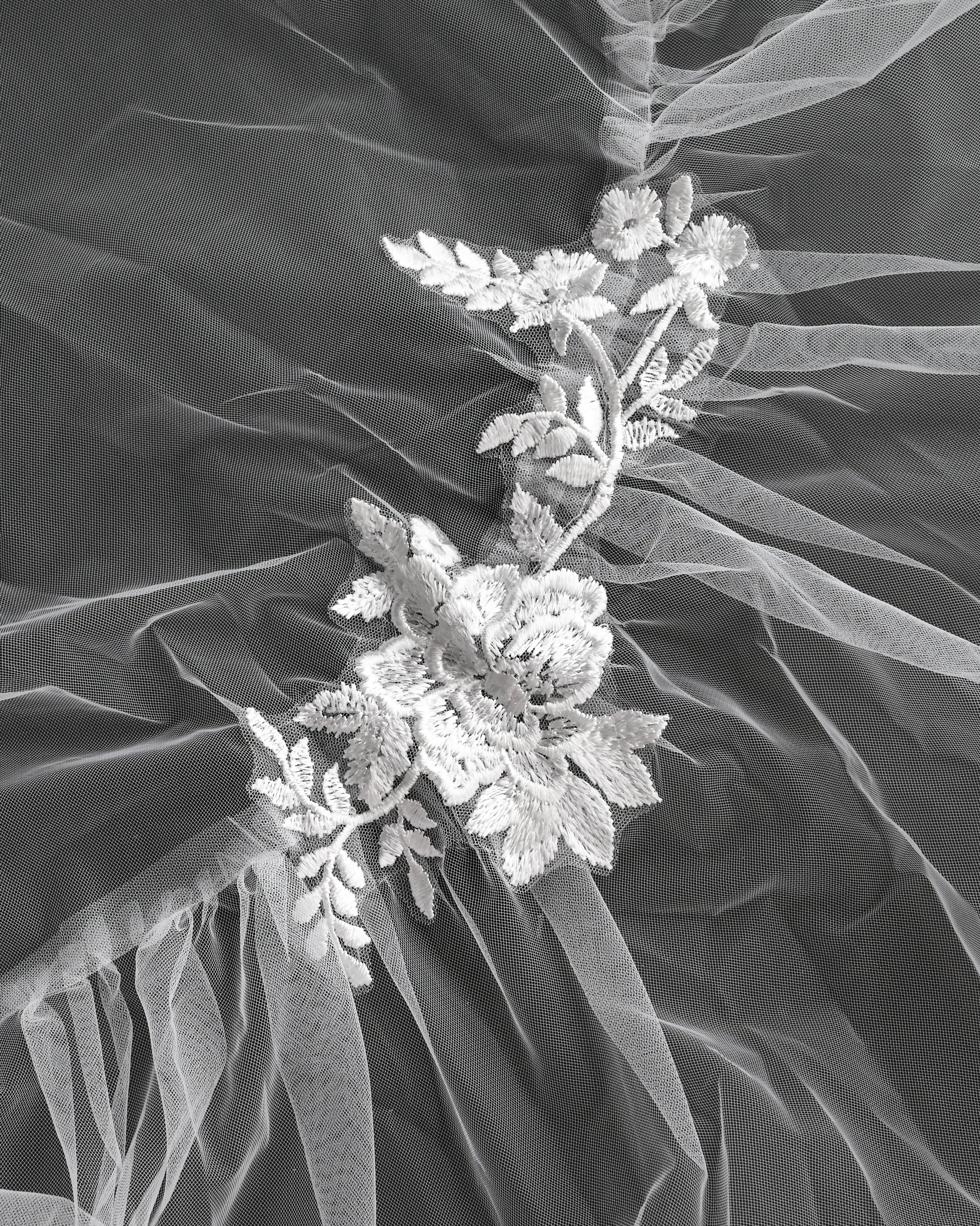 光を受けてふんわりと浮かび上がる刺繍が、写真にも美しく映えます。