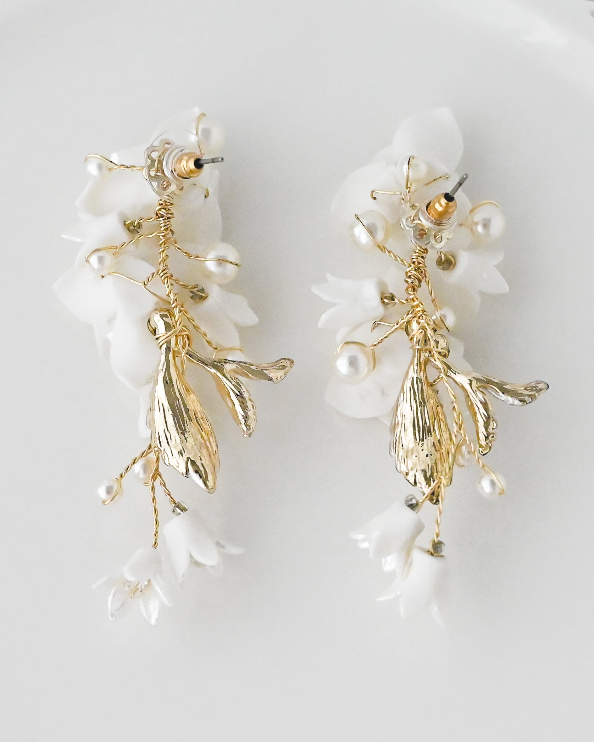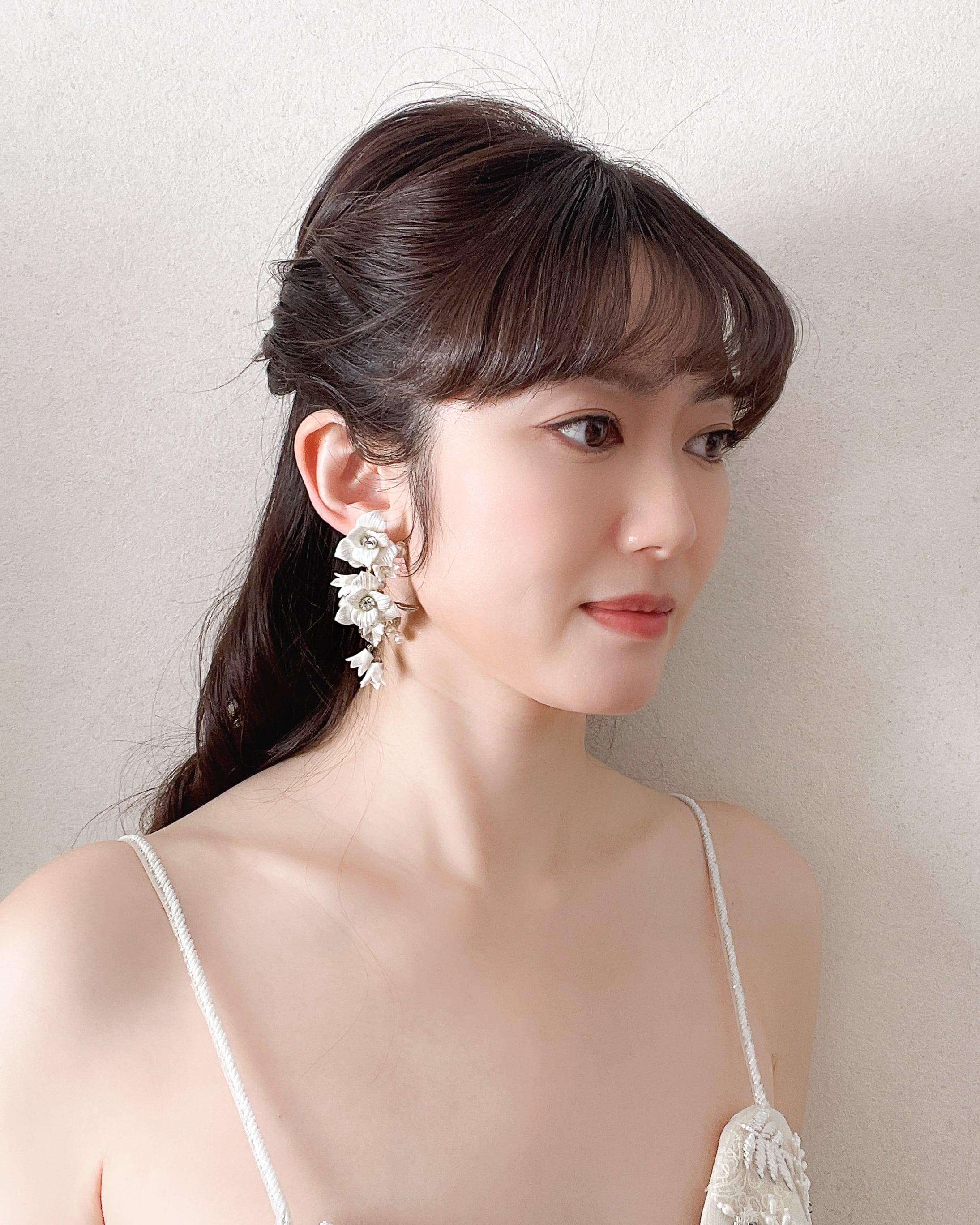 ホワイトフラワー&パールドロップブライダルピアス【AE2511-12】