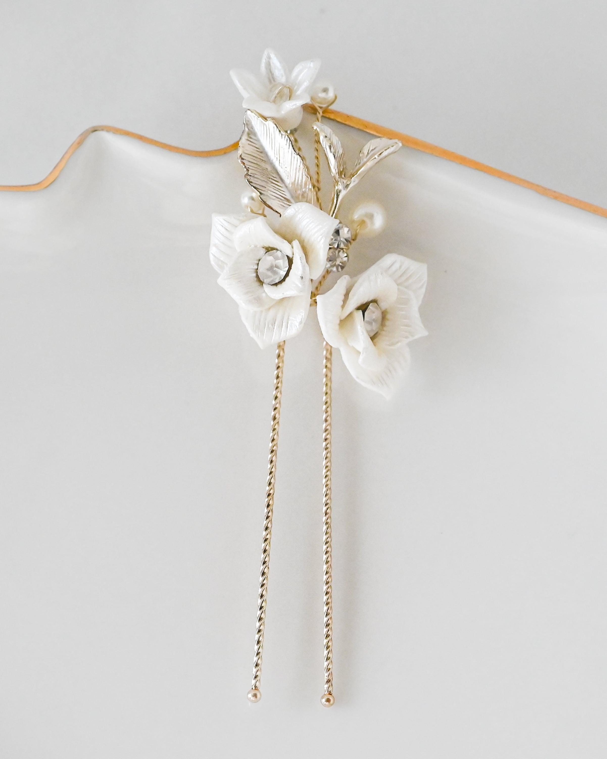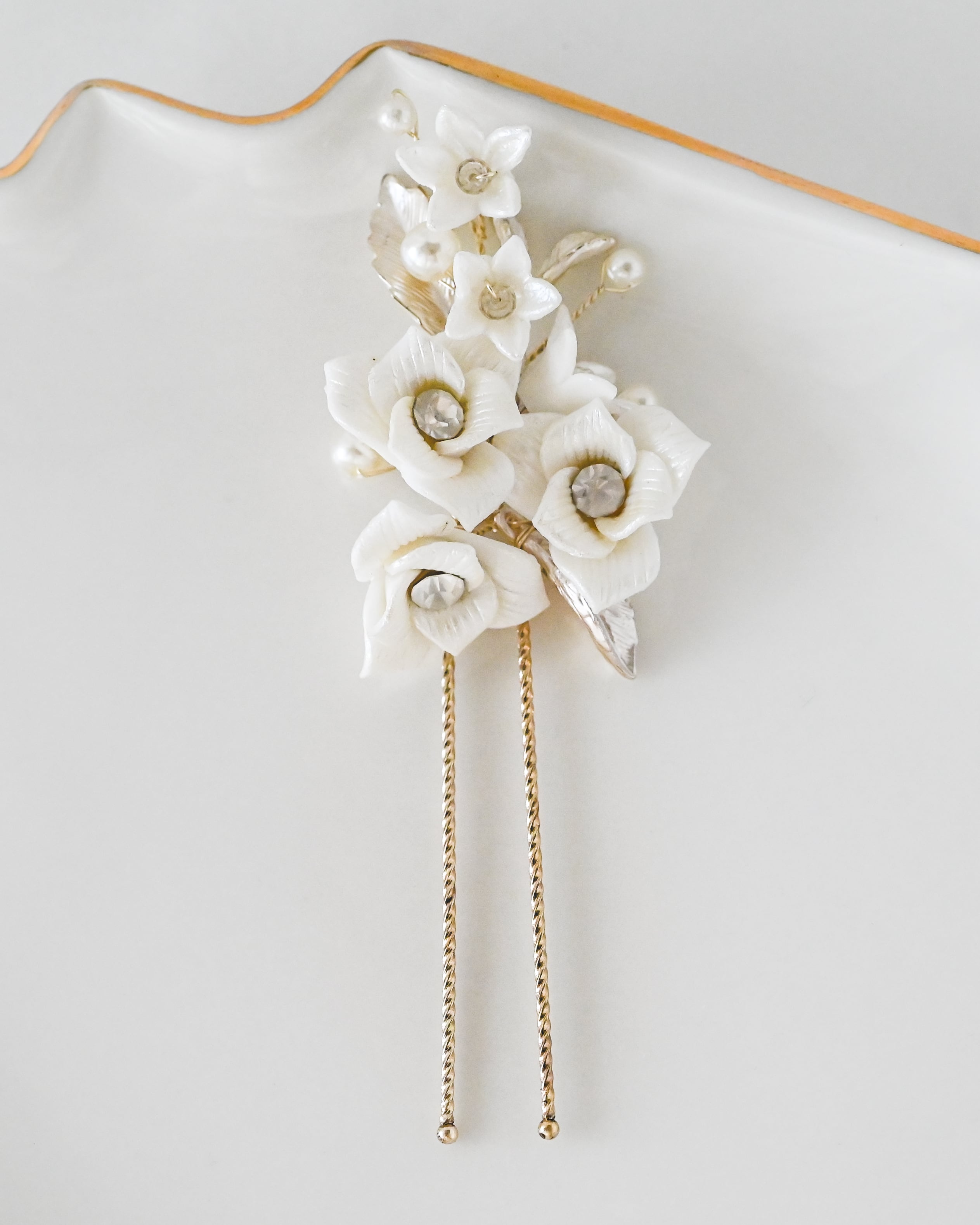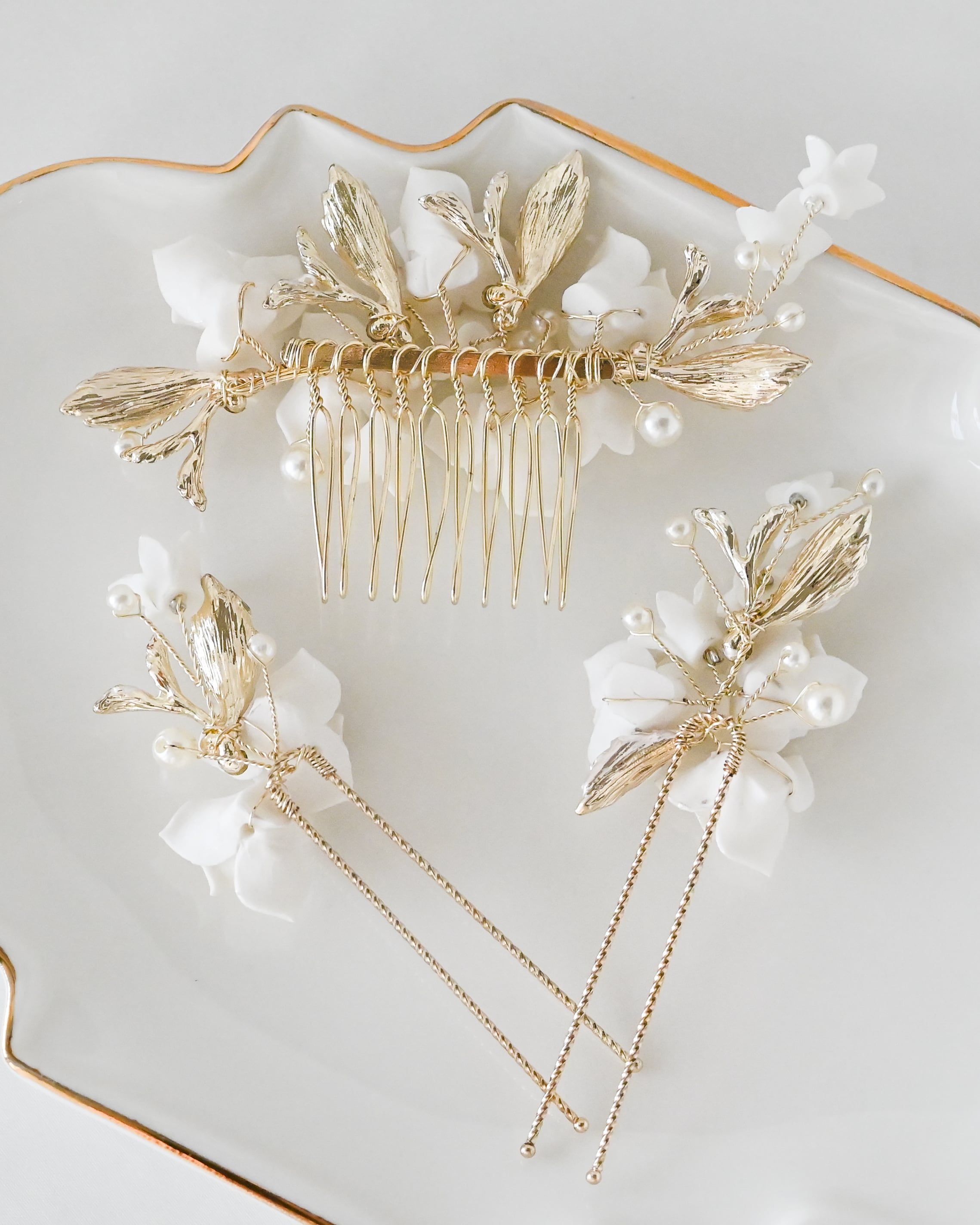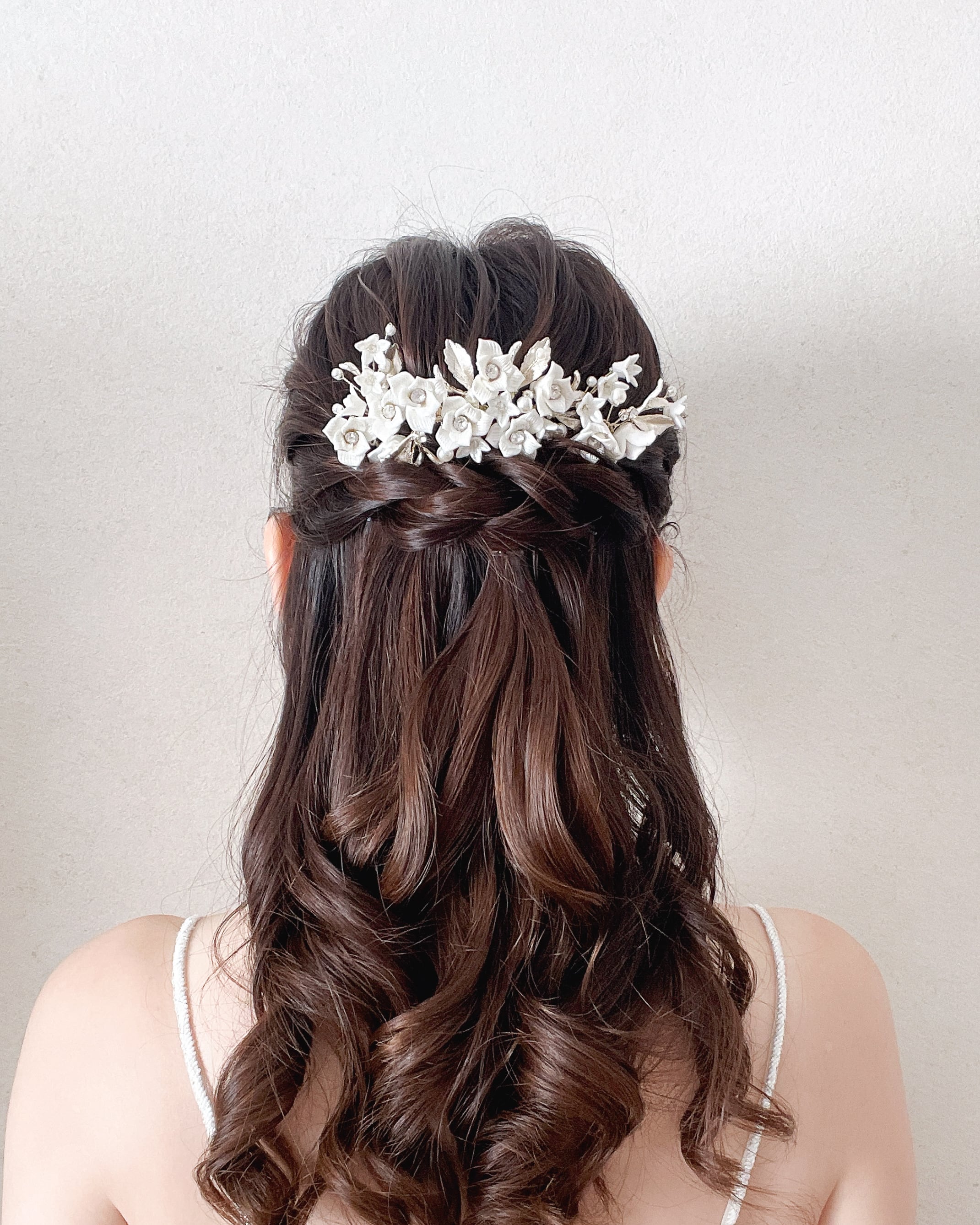繊細な花々が咲きこぼれるように連なる、上品でロマンティックなヘアアクセサリー3点セット。