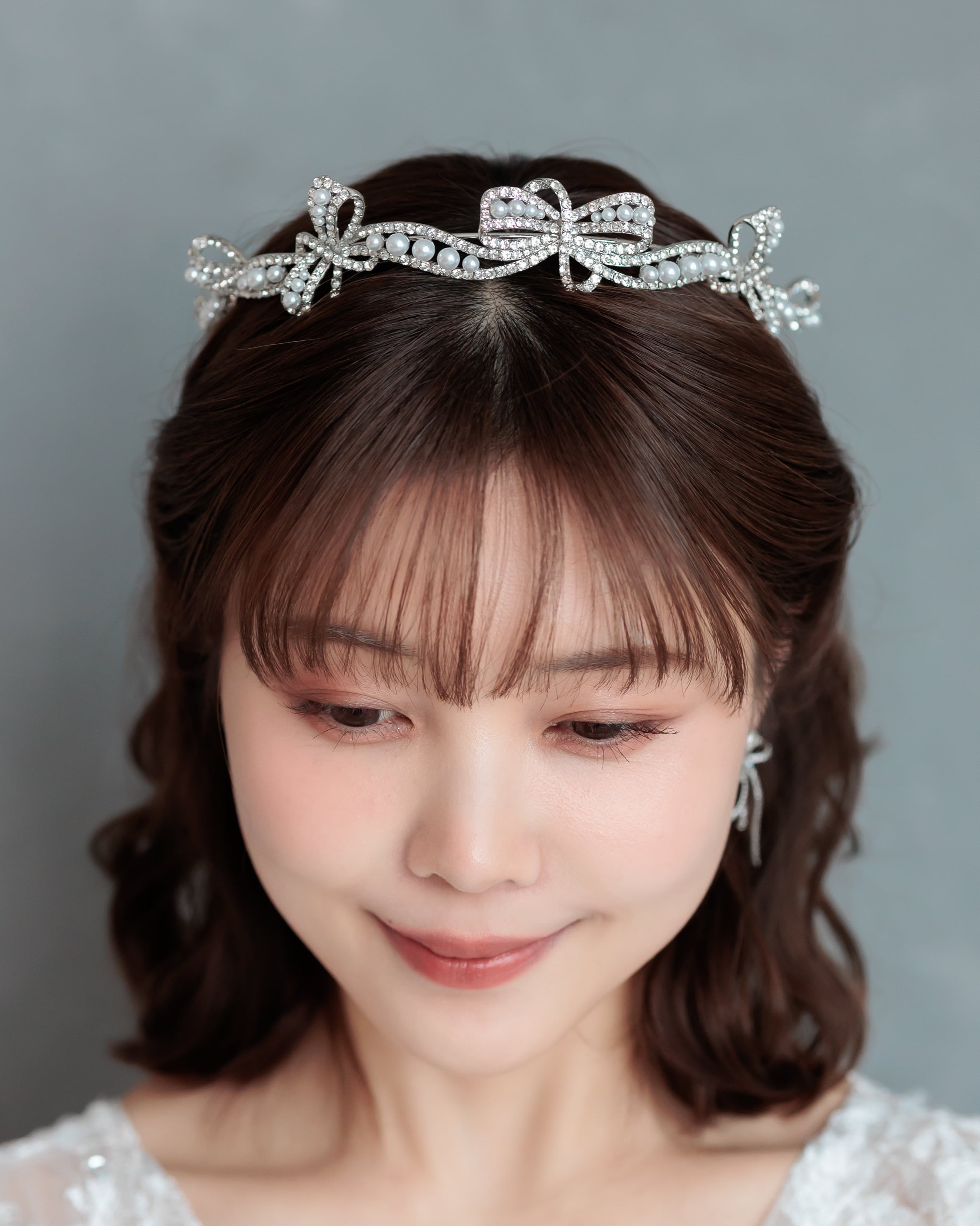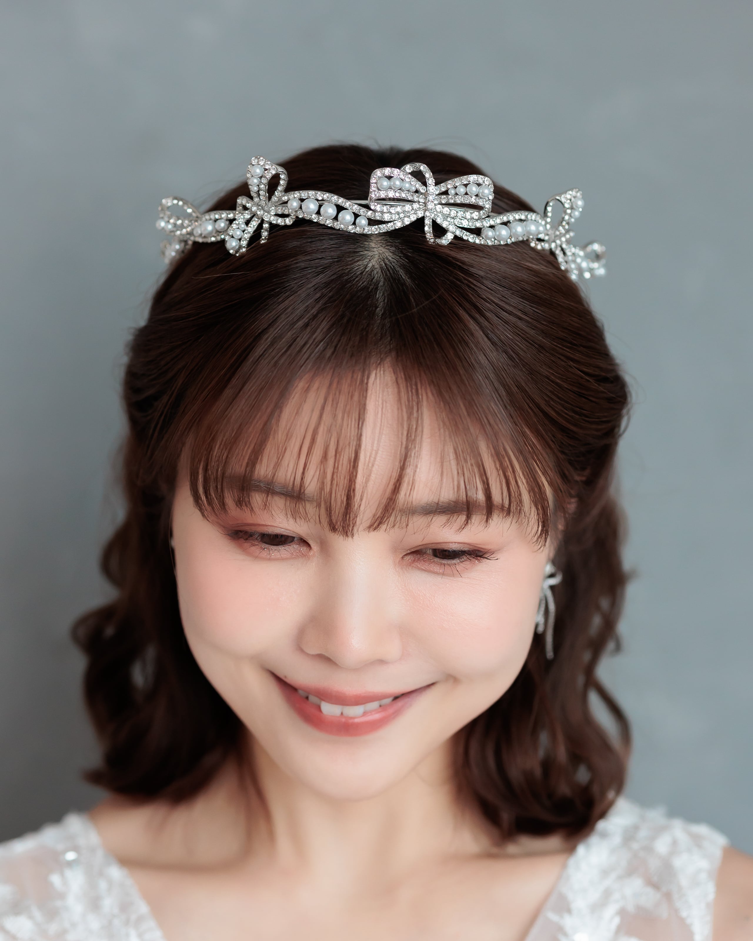 繊細なリボンモチーフが連なる、可憐で上品なティアラ。