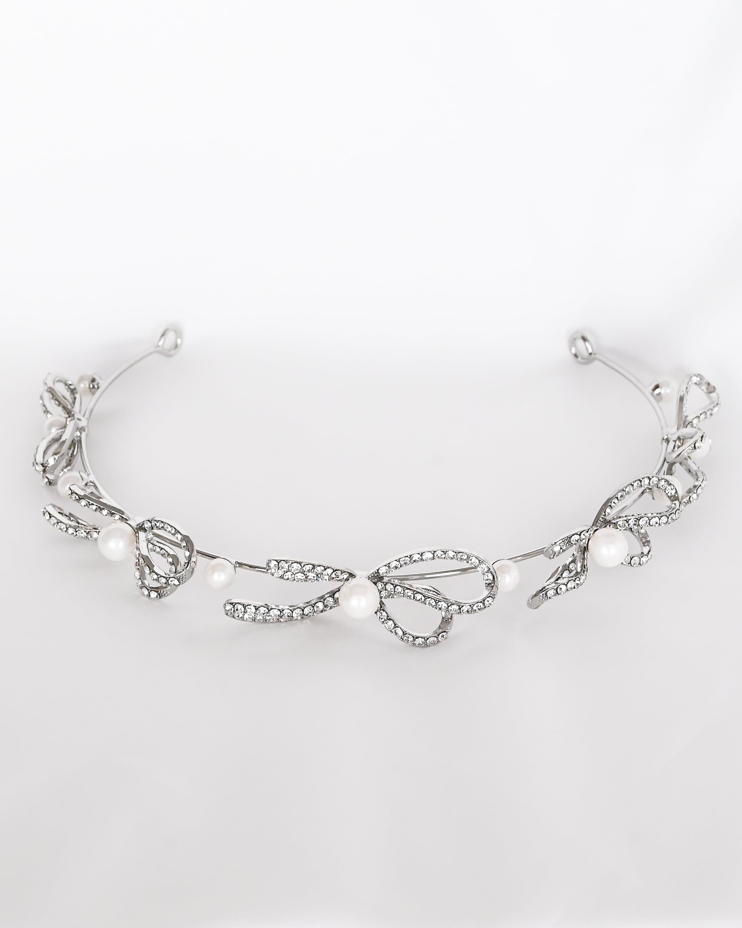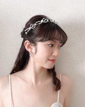 ブライダルパールリボンティアラカチューシャ【AH2511-06】
