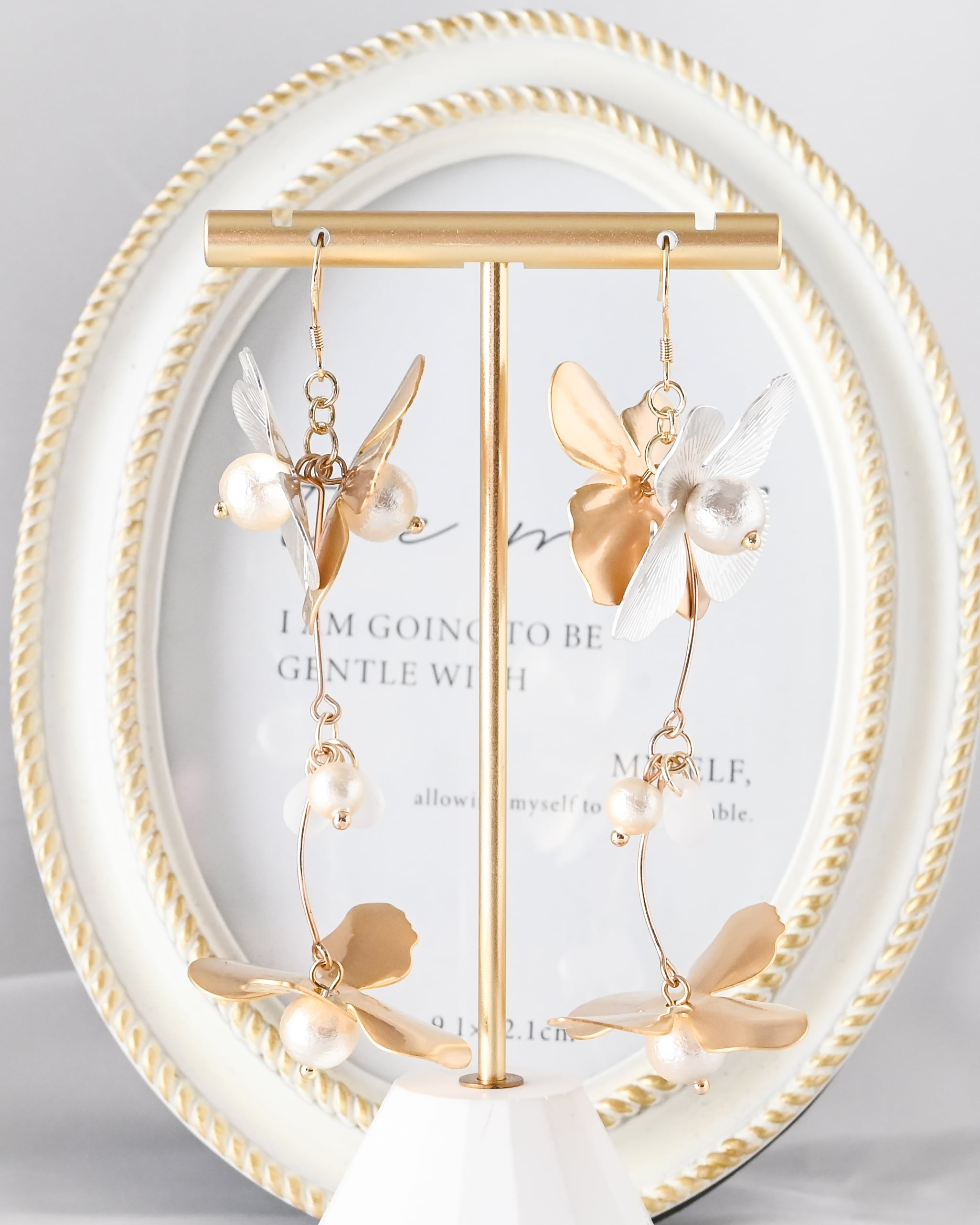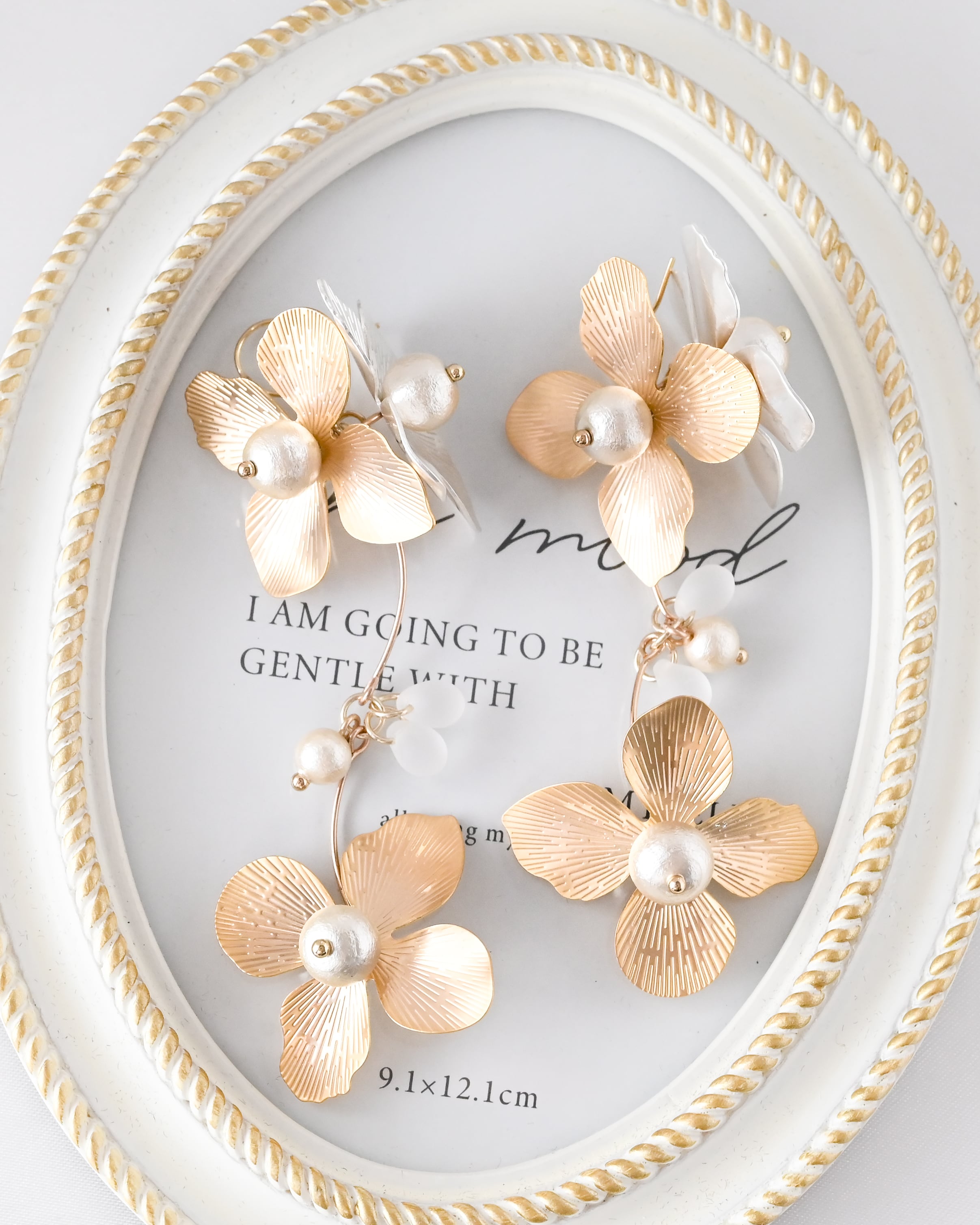 軽やかに揺れるフラワーモチーフとパールの組み合わせが、横顔をふわりと華やかに彩ります。