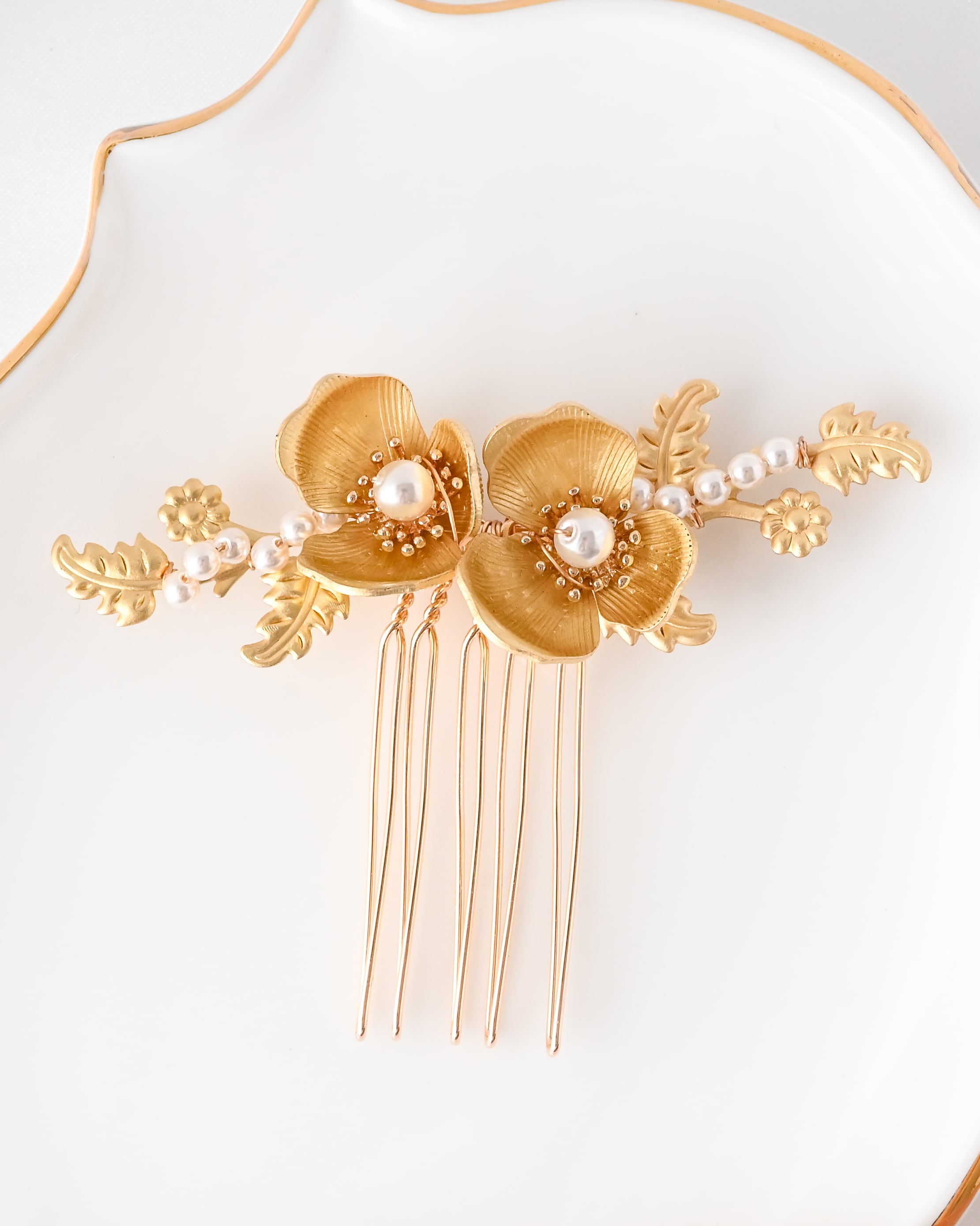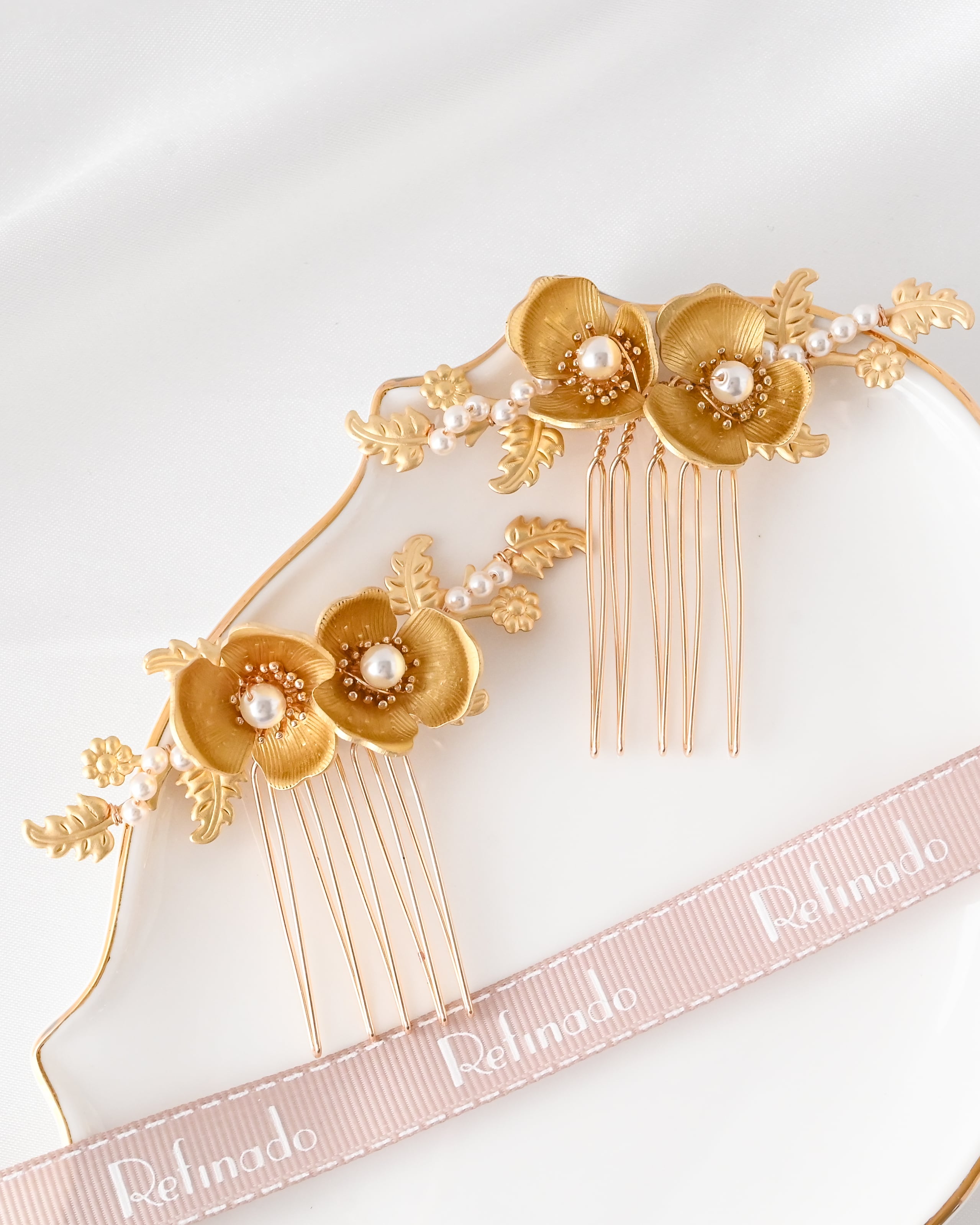 上品なフラワーモチーフとパールを組み合わせた、華やかで柔らかい印象のヘアコーム2個セットです。