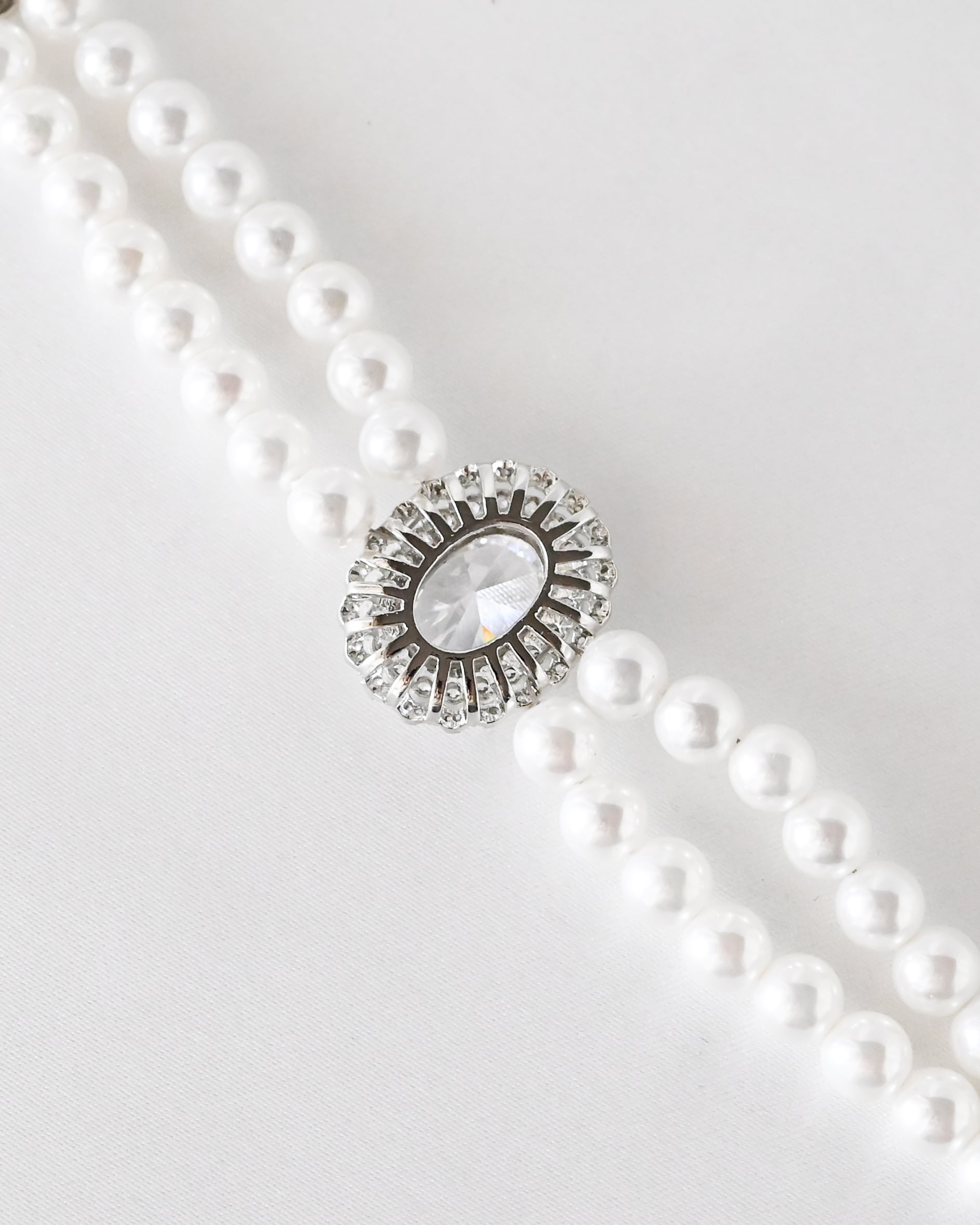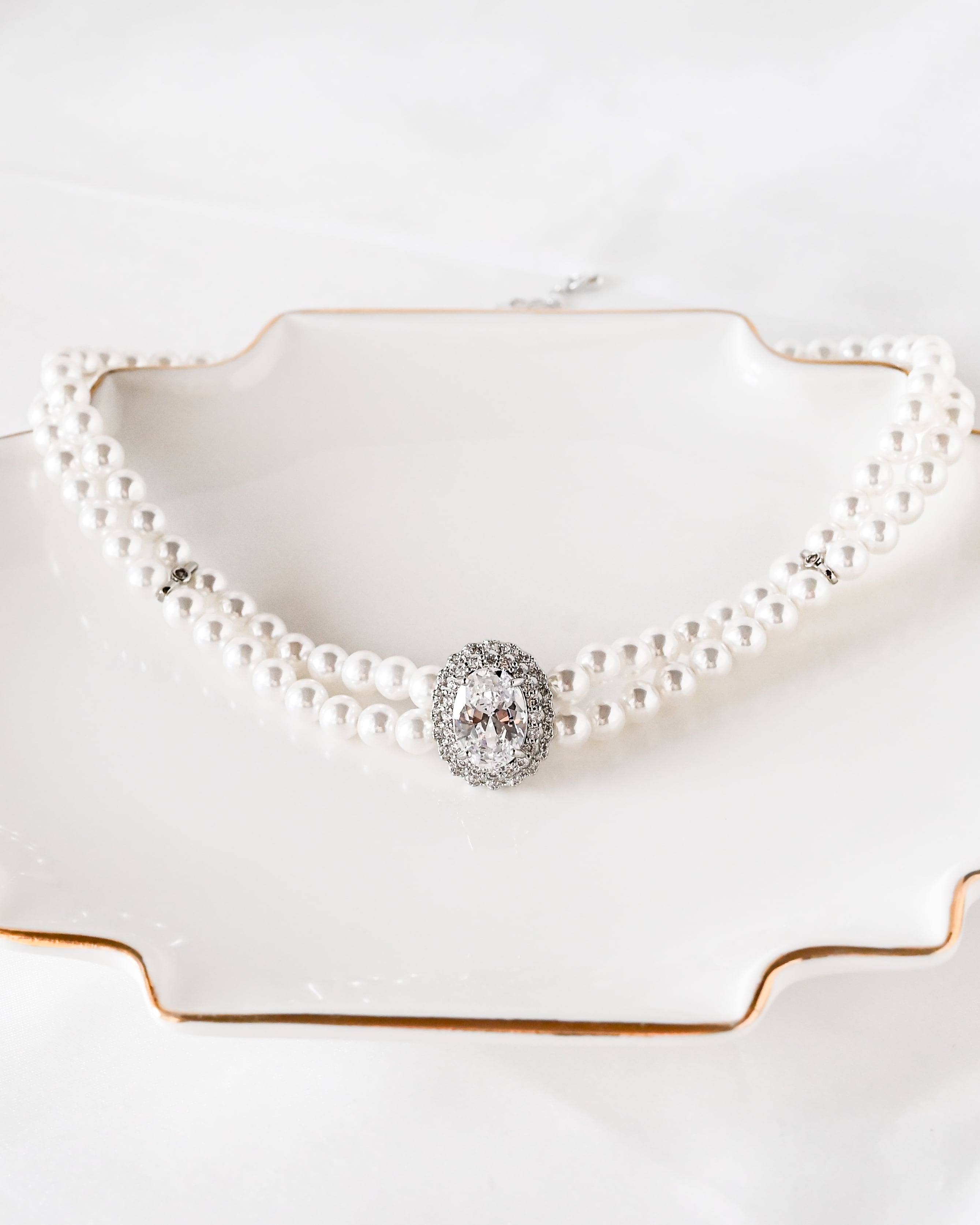 首元を美しく引き立てる、2連パールデザインのエレガントなチョーカーネックレス。