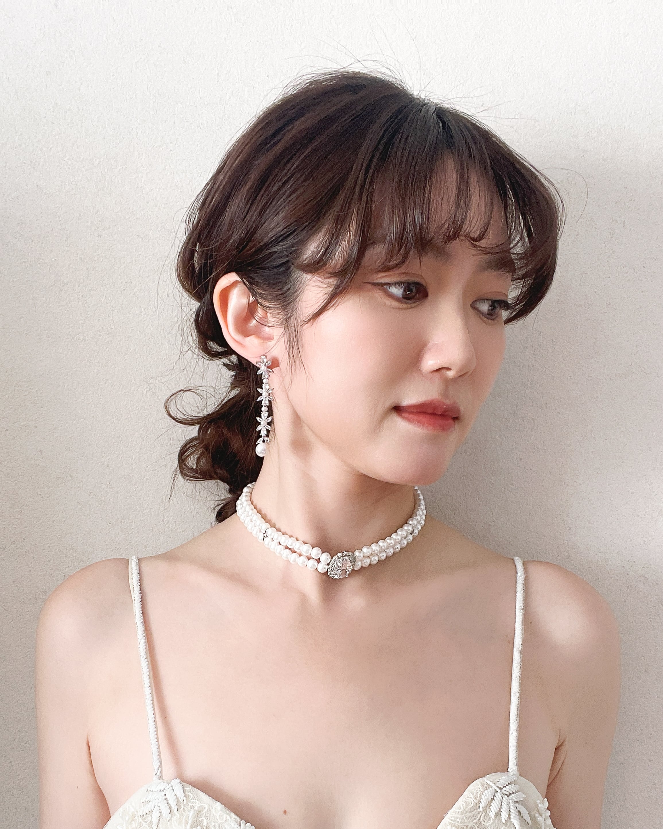 柔らかなパールが上品に並ぶクラシカルなデザインは、洗練された花嫁さまのスタイリングにぴったり。