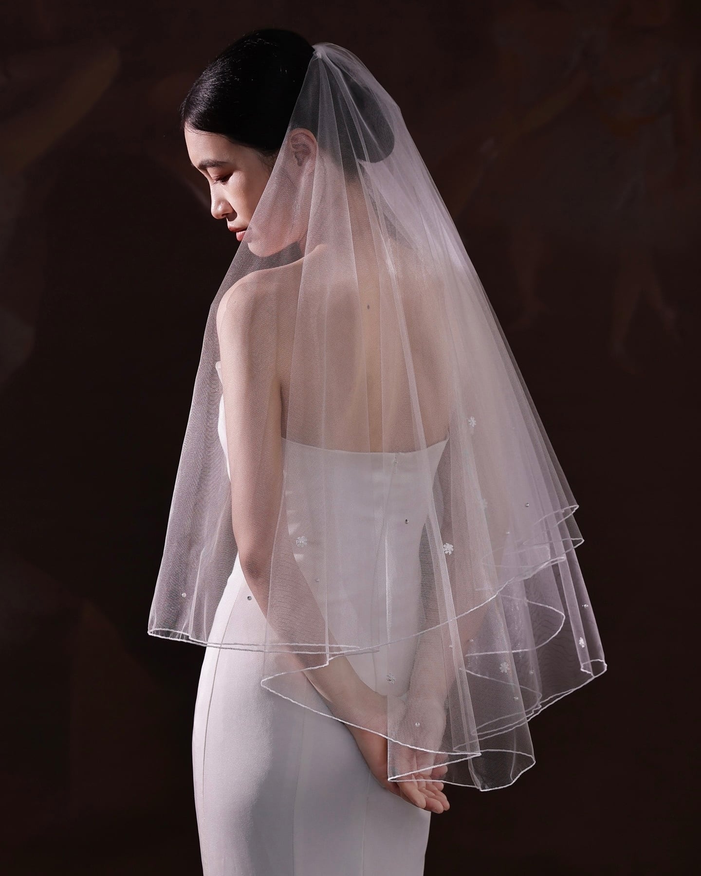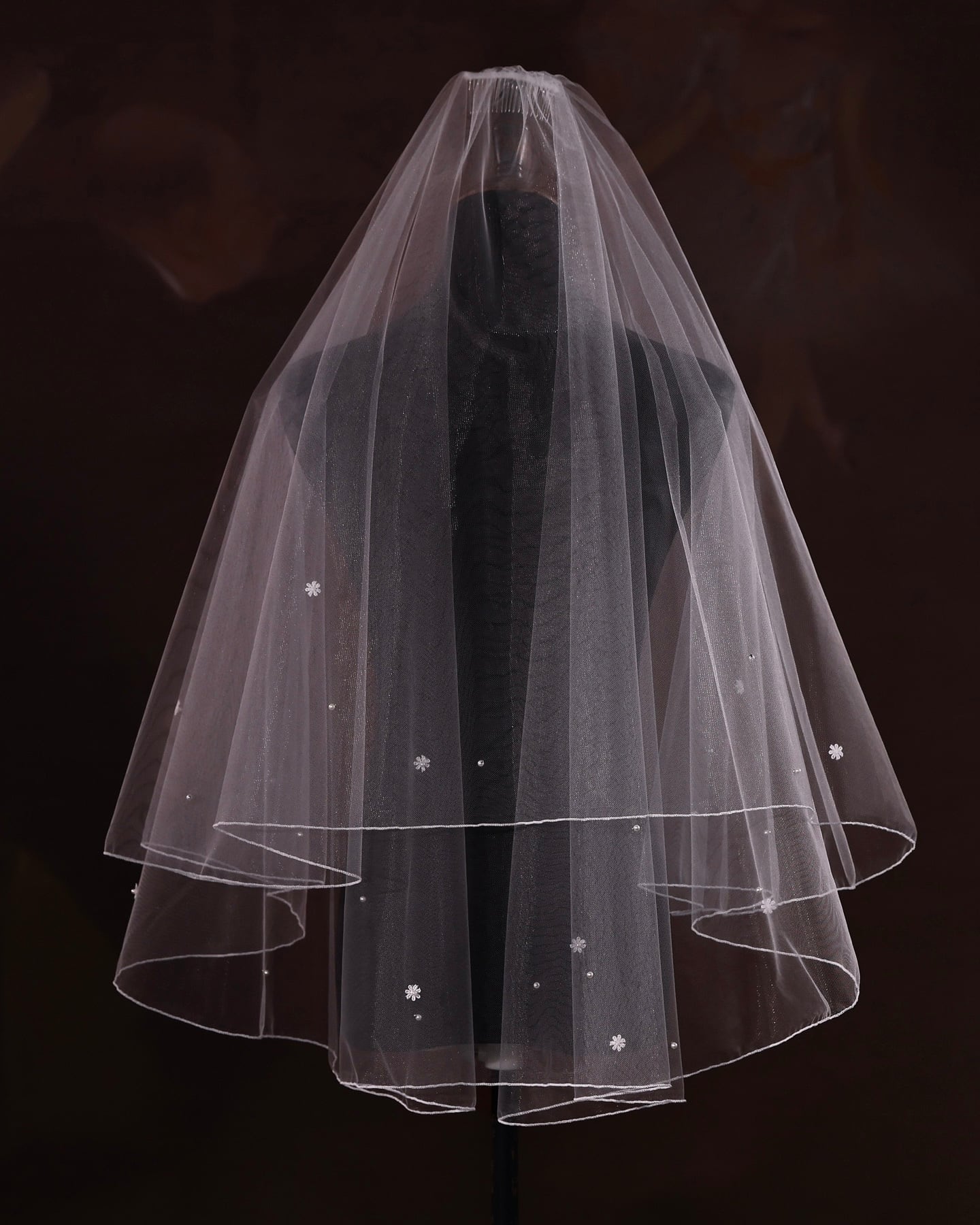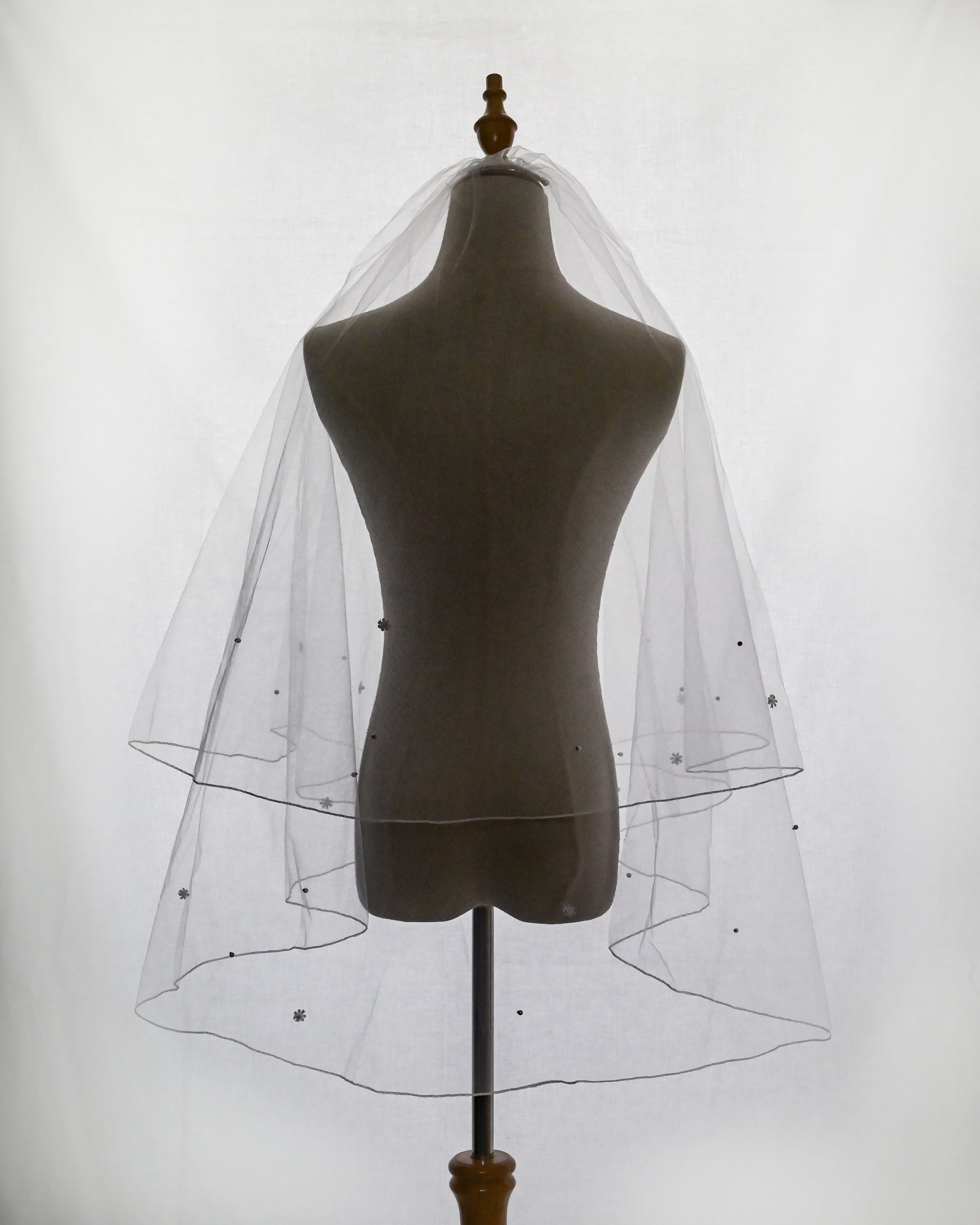 可憐なパールとフラワーモチーフを、全体に散りばめたフェミニンなベール。