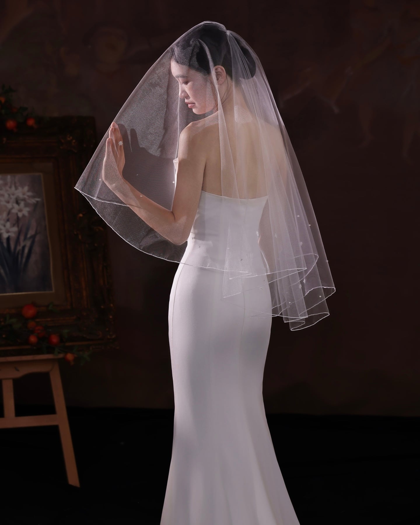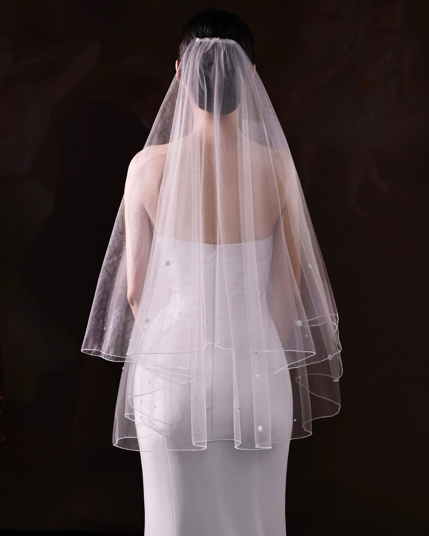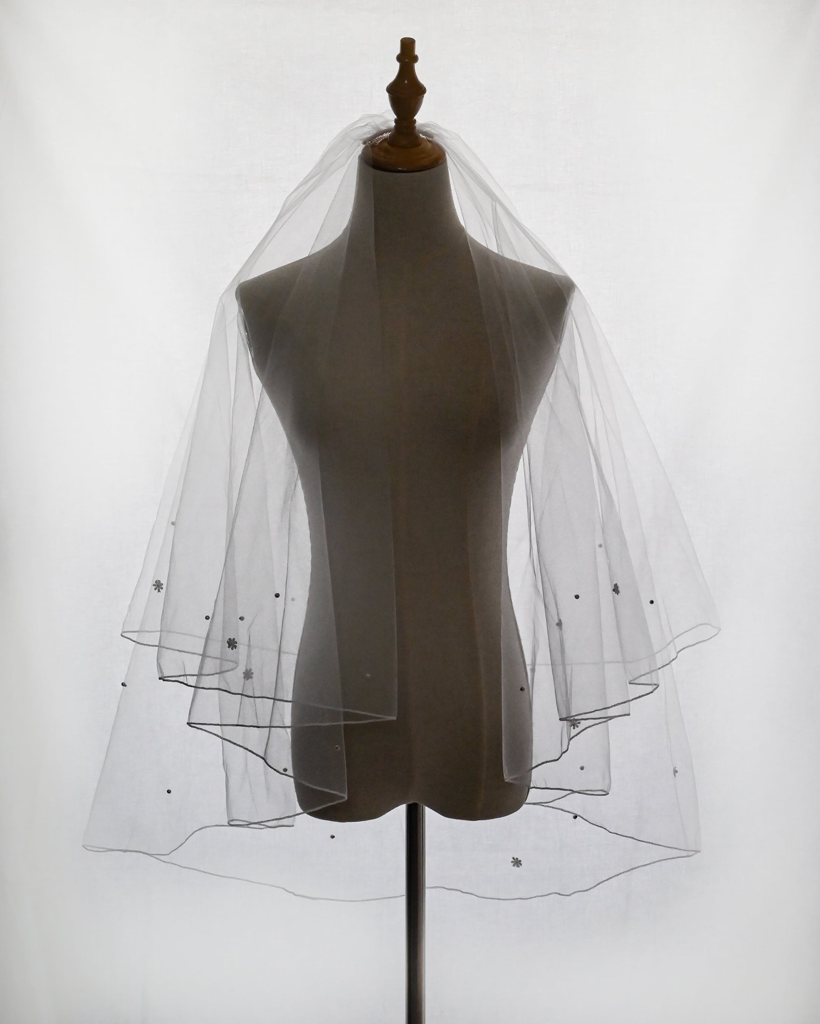 可憐なパールとフラワーモチーフを、全体に散りばめたフェミニンなベール。