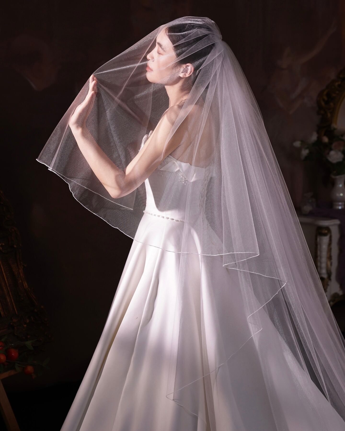 挙式の厳かな雰囲気にも、フォトウェディングにも映える、花嫁様をより美しく見せる一枚。
