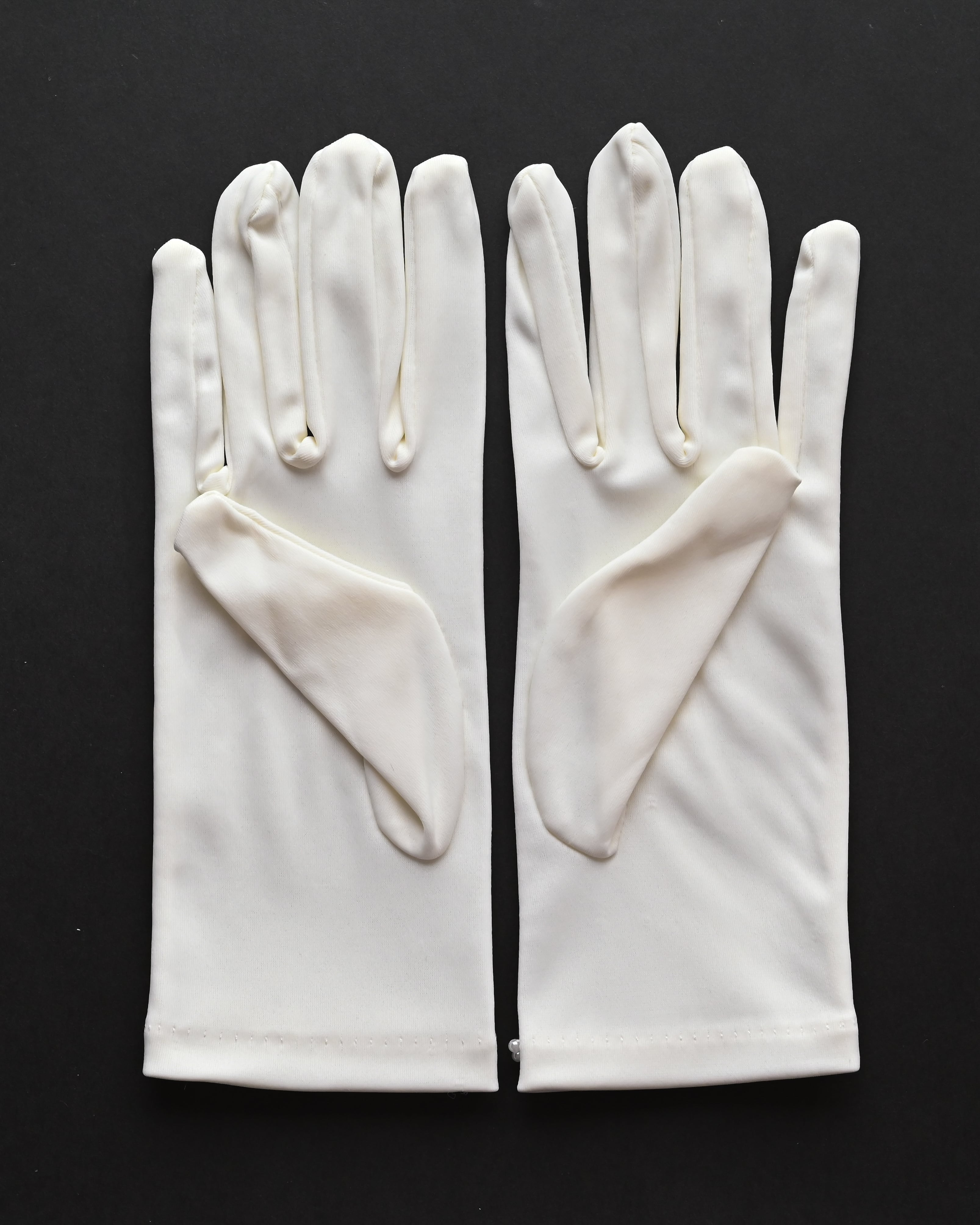 手元にさりげない華やぎを添える、パール装飾が印象的なショートグローブ。
