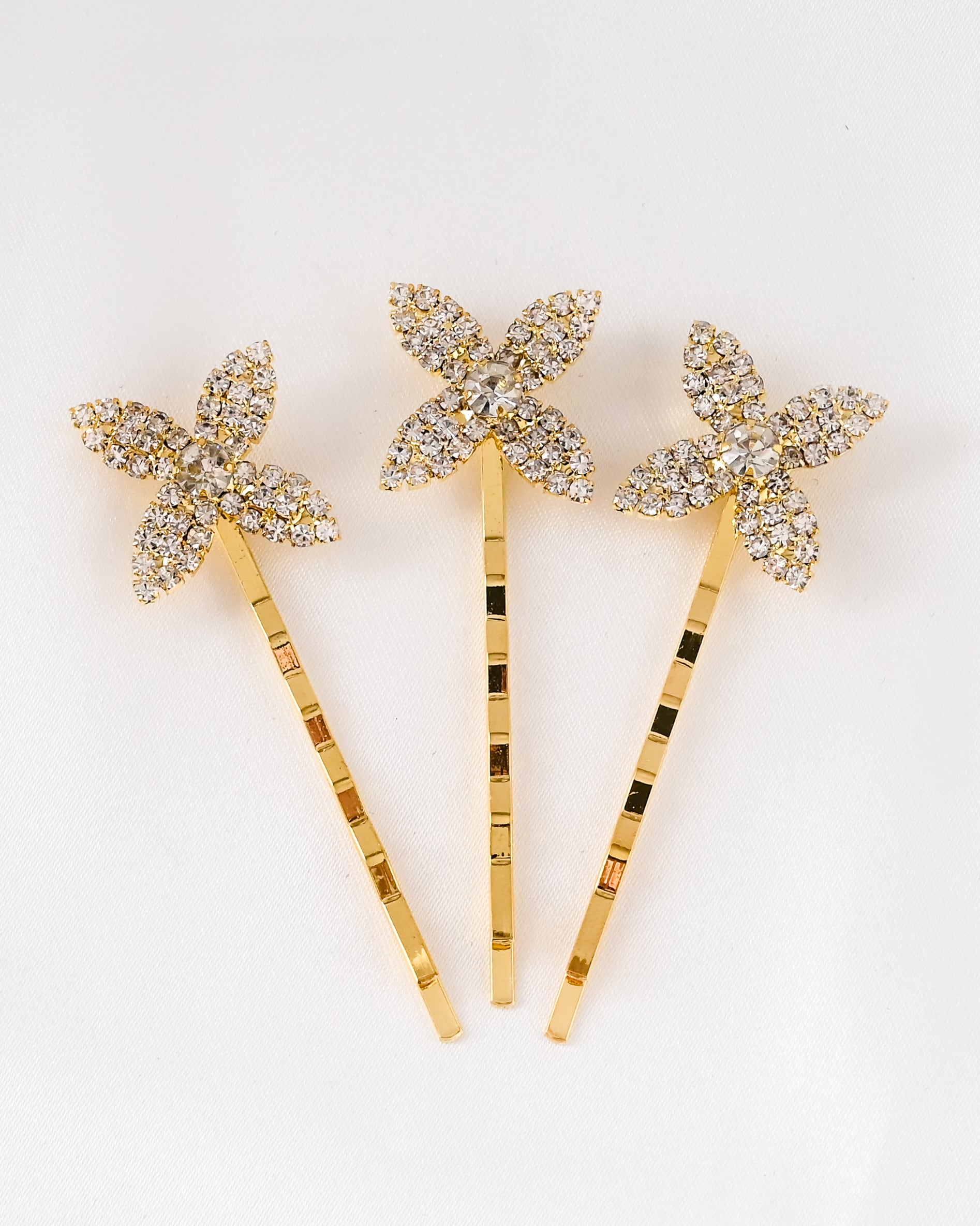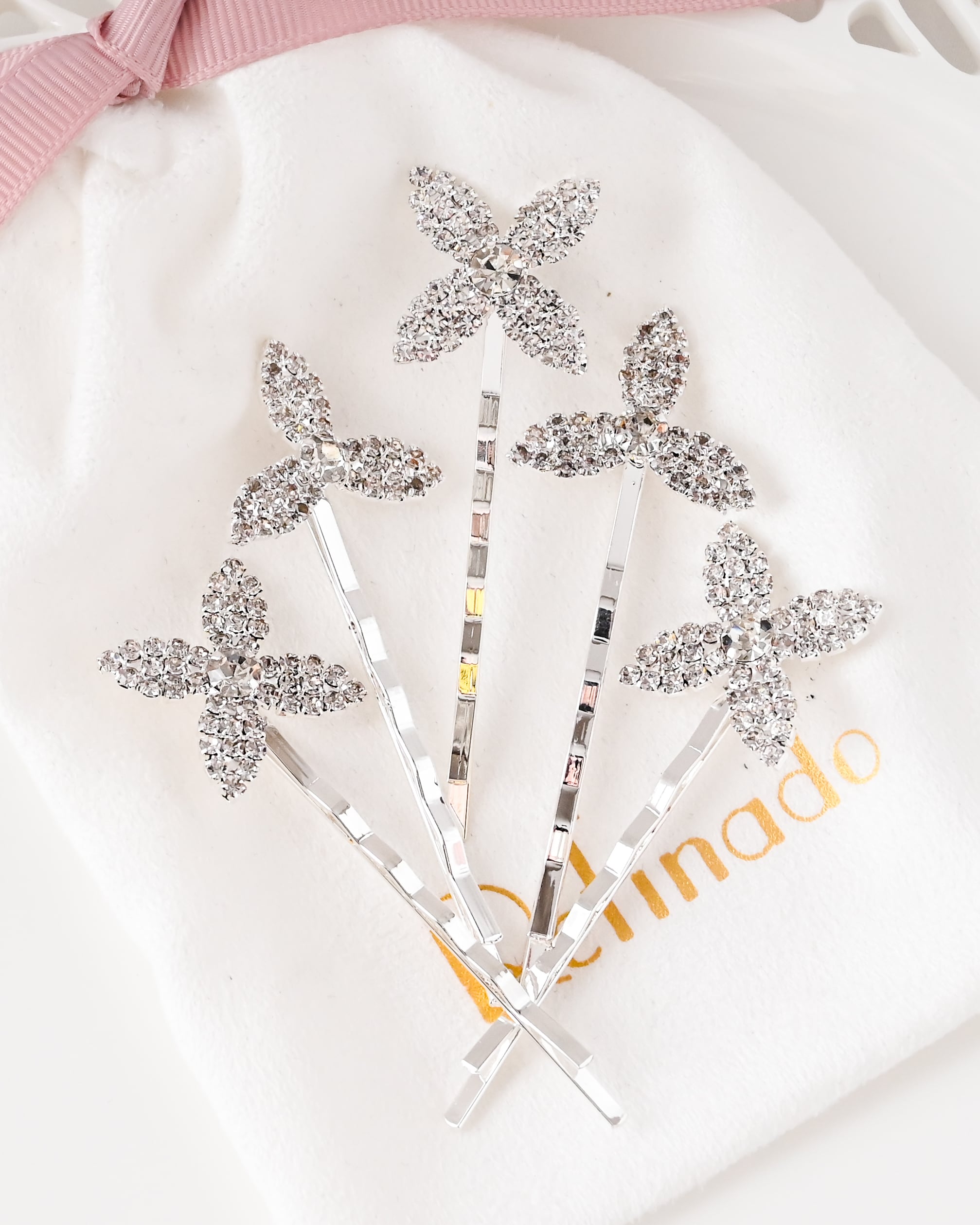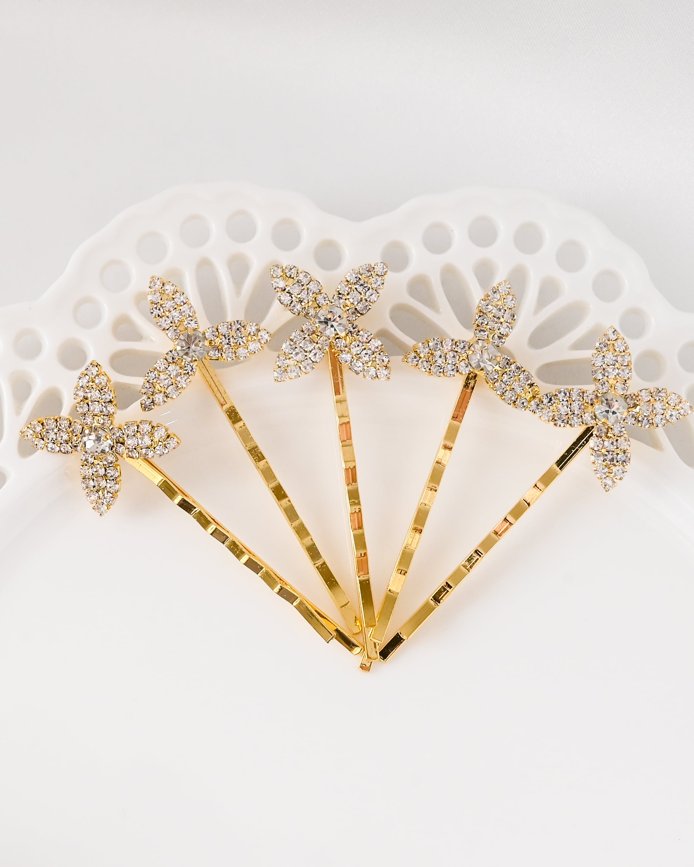 きらめくビジューで表現されたフラワーモチーフが美しい、ブライダルヘアピン5本セット。