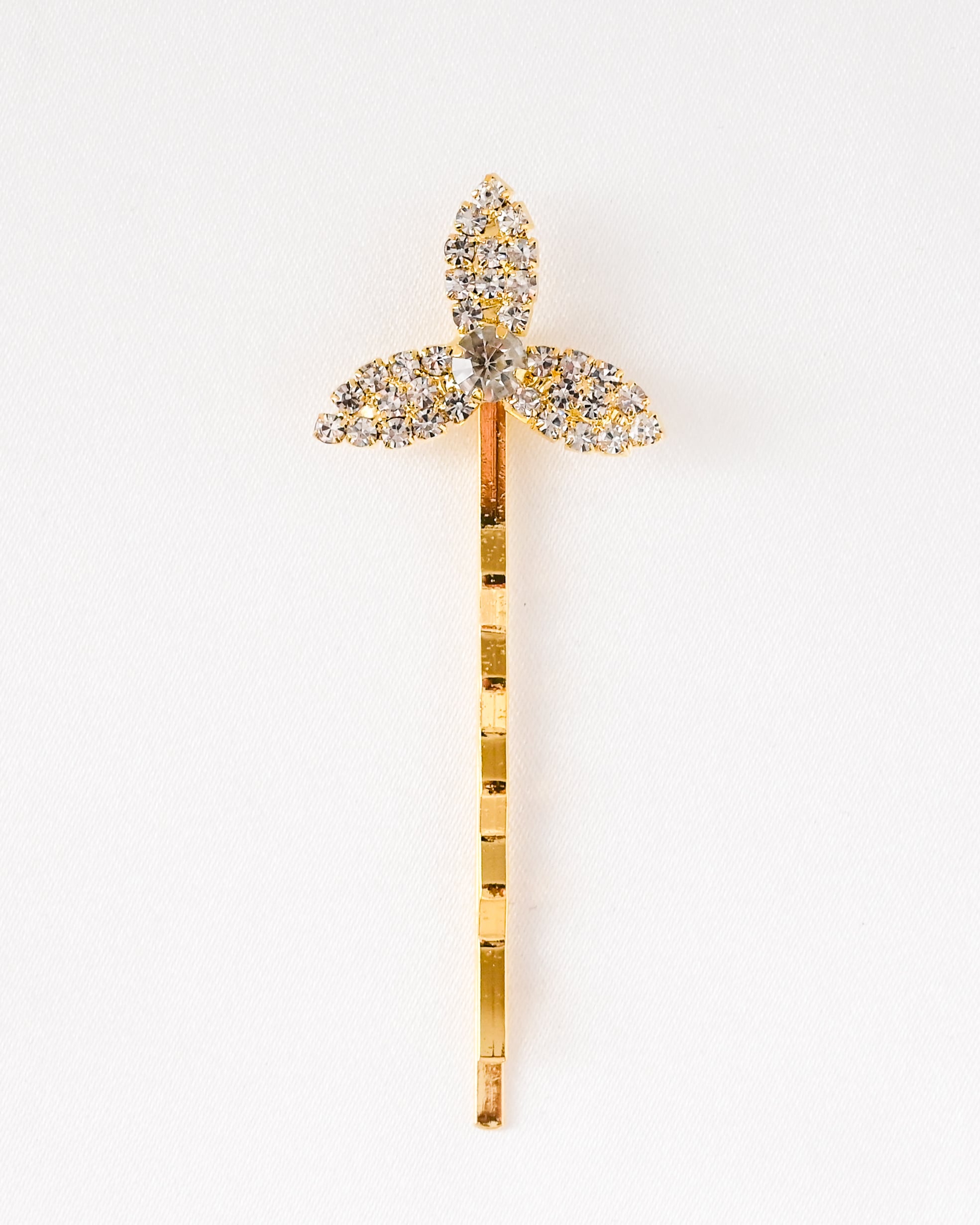 繊細な花のフォルムに敷き詰められたビジューが、光を受けて上品に輝き、ヘアスタイルに華やかなアクセントを添えます。