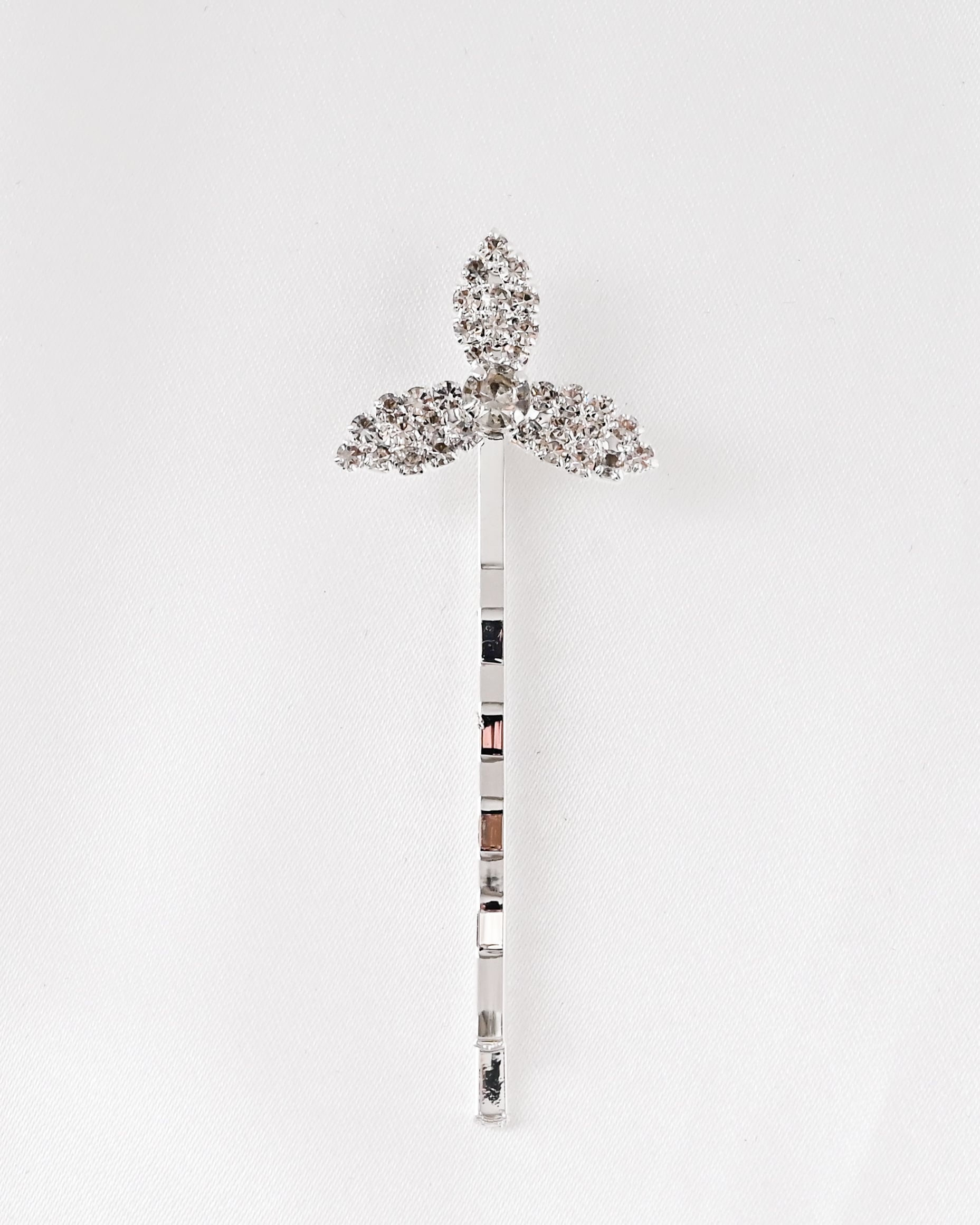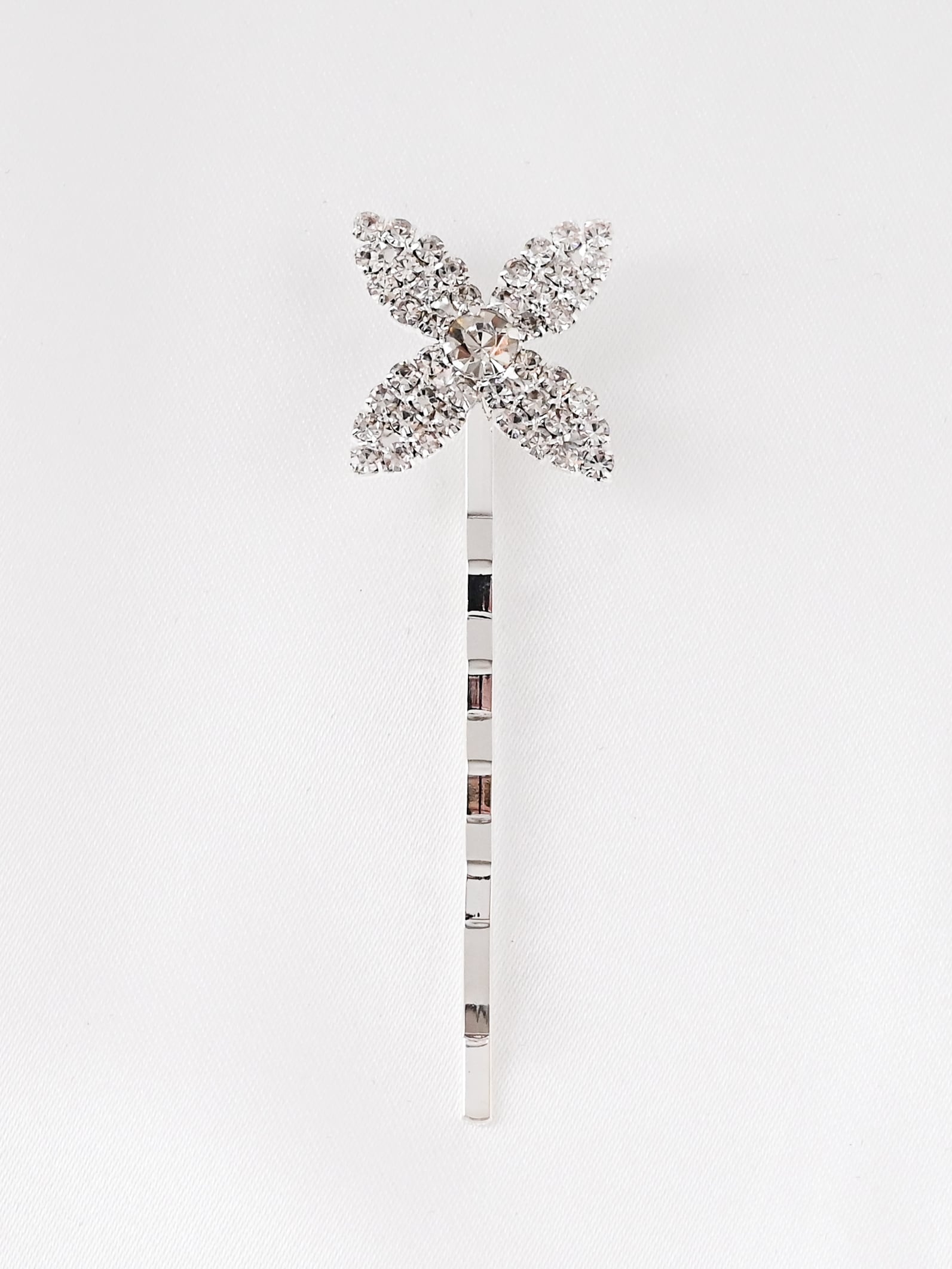 繊細な花のフォルムに敷き詰められたビジューが、光を受けて上品に輝き、ヘアスタイルに華やかなアクセントを添えます。