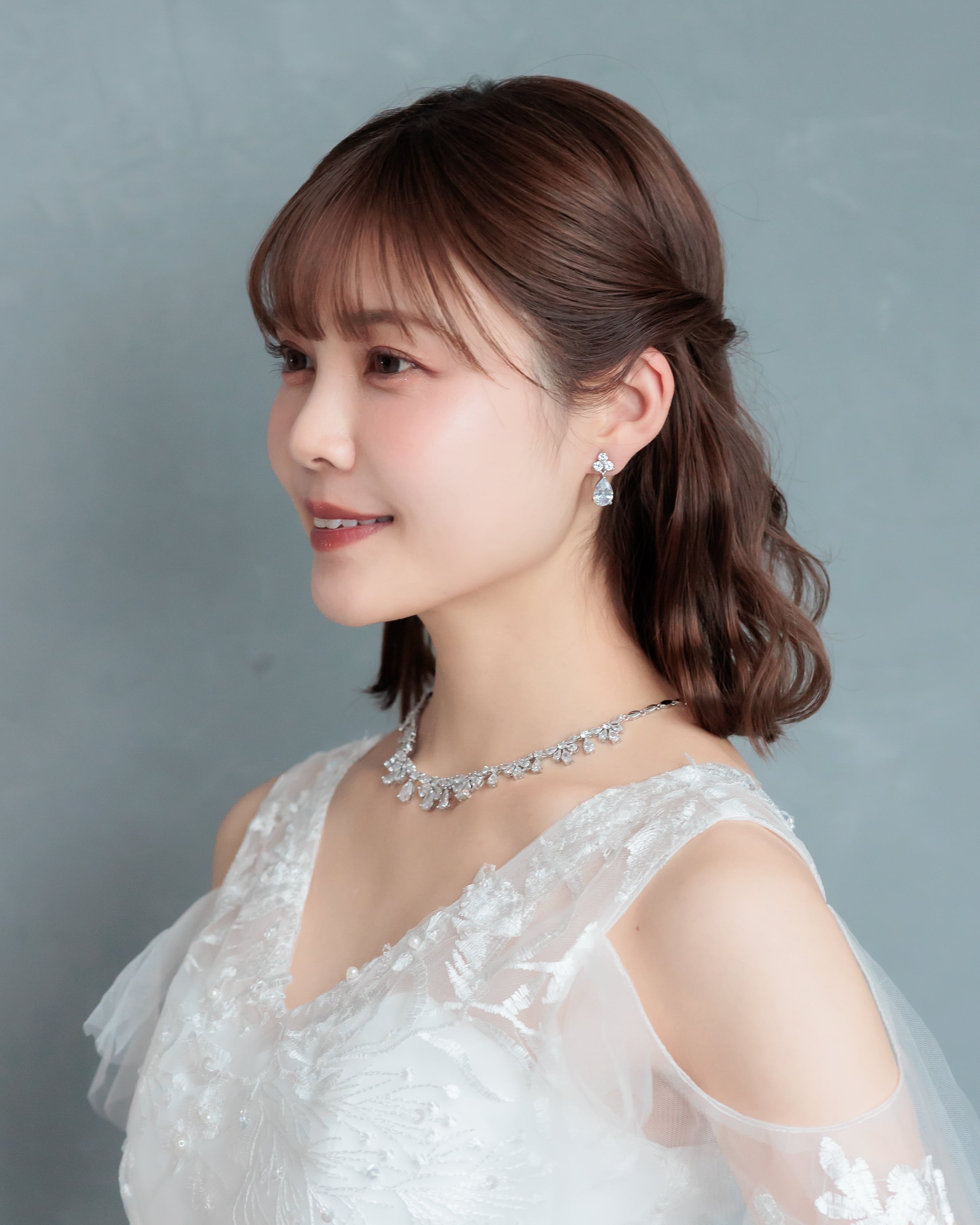 ドレスのデコルテラインを美しく引き立てる上品なウェディングアクセサリーセットです。