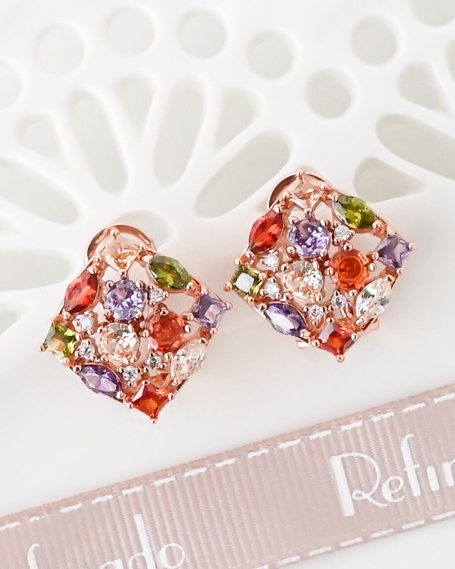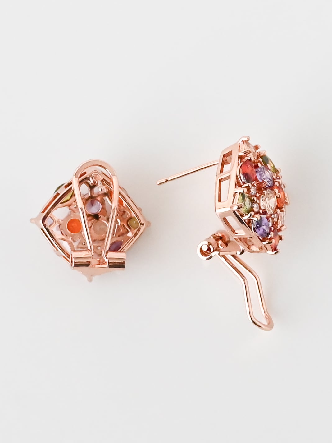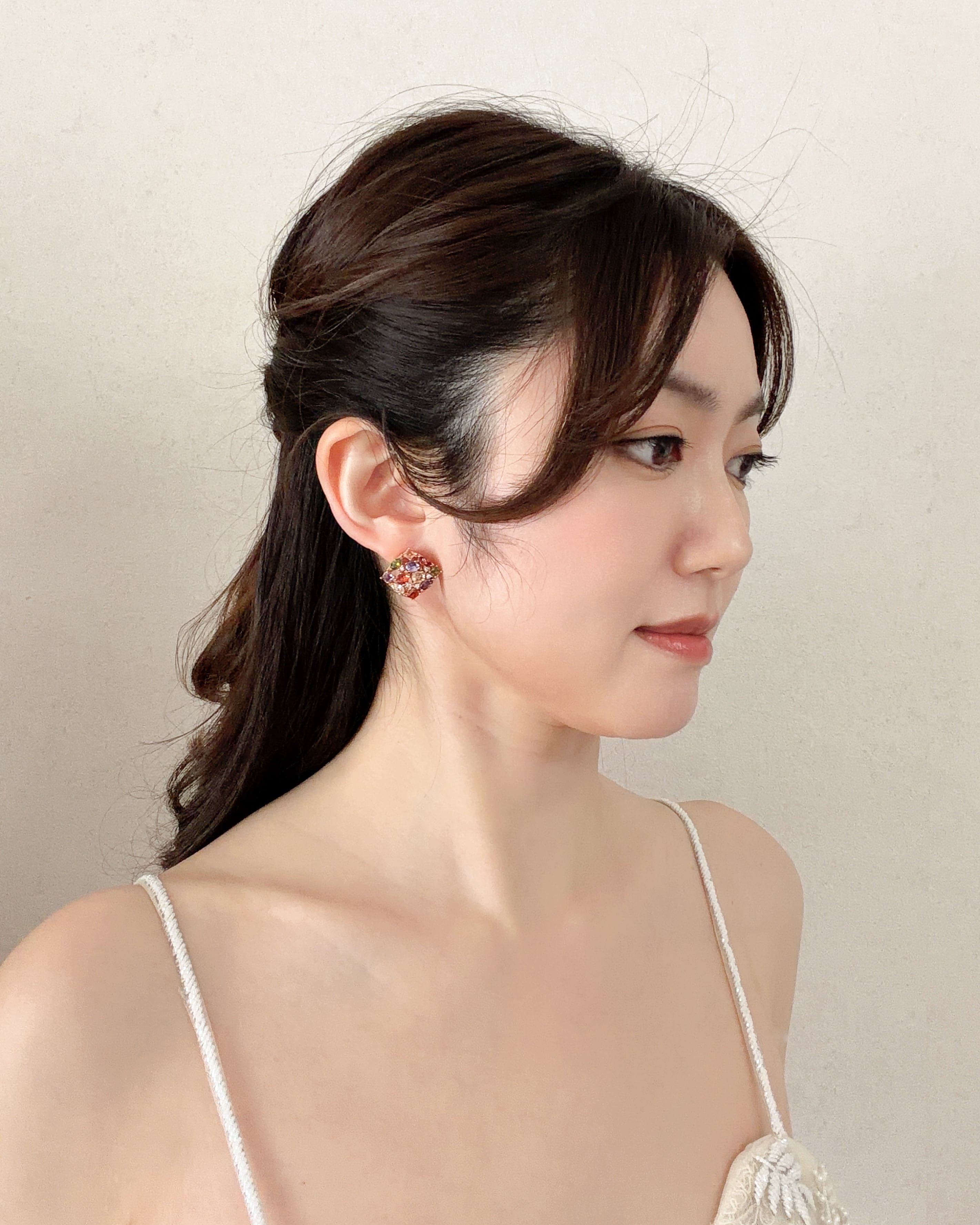 繊細に配置されたマルチカラーのストーンが、光を受けて美しく輝き、耳元に上品な彩りを添えます。