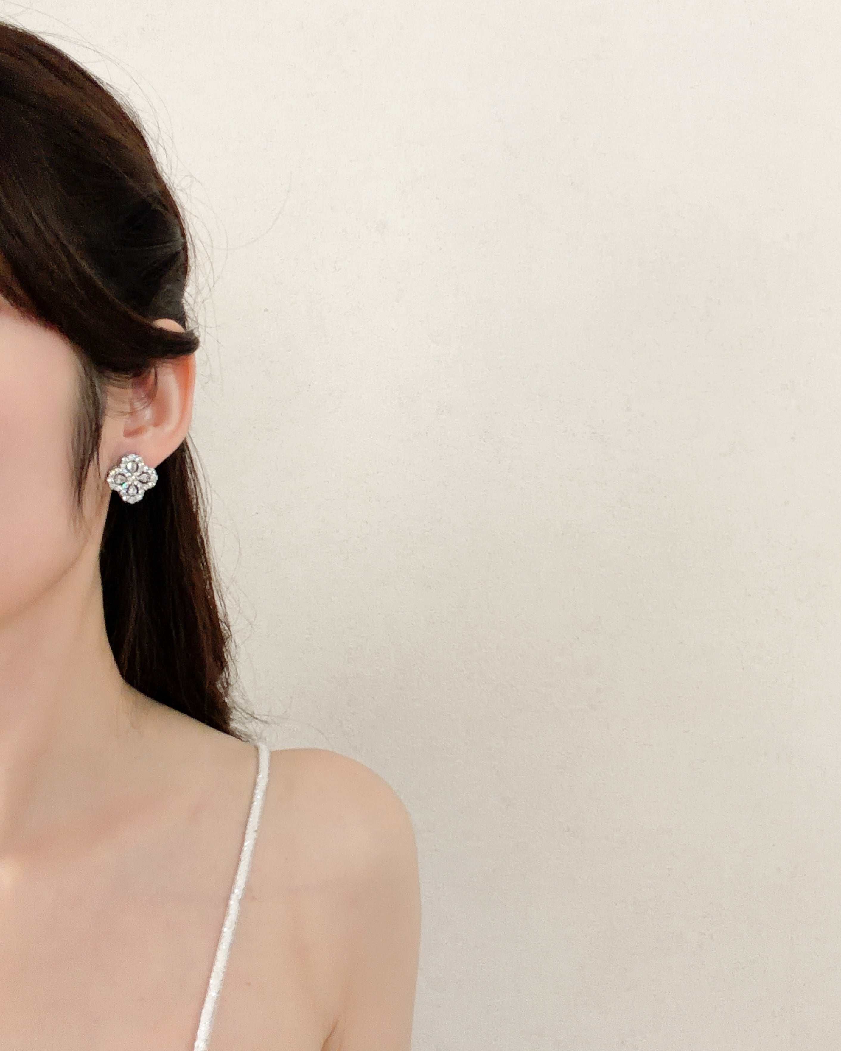 繊細な輝きをまとったフラワーモチーフのイヤーアクセサリー。